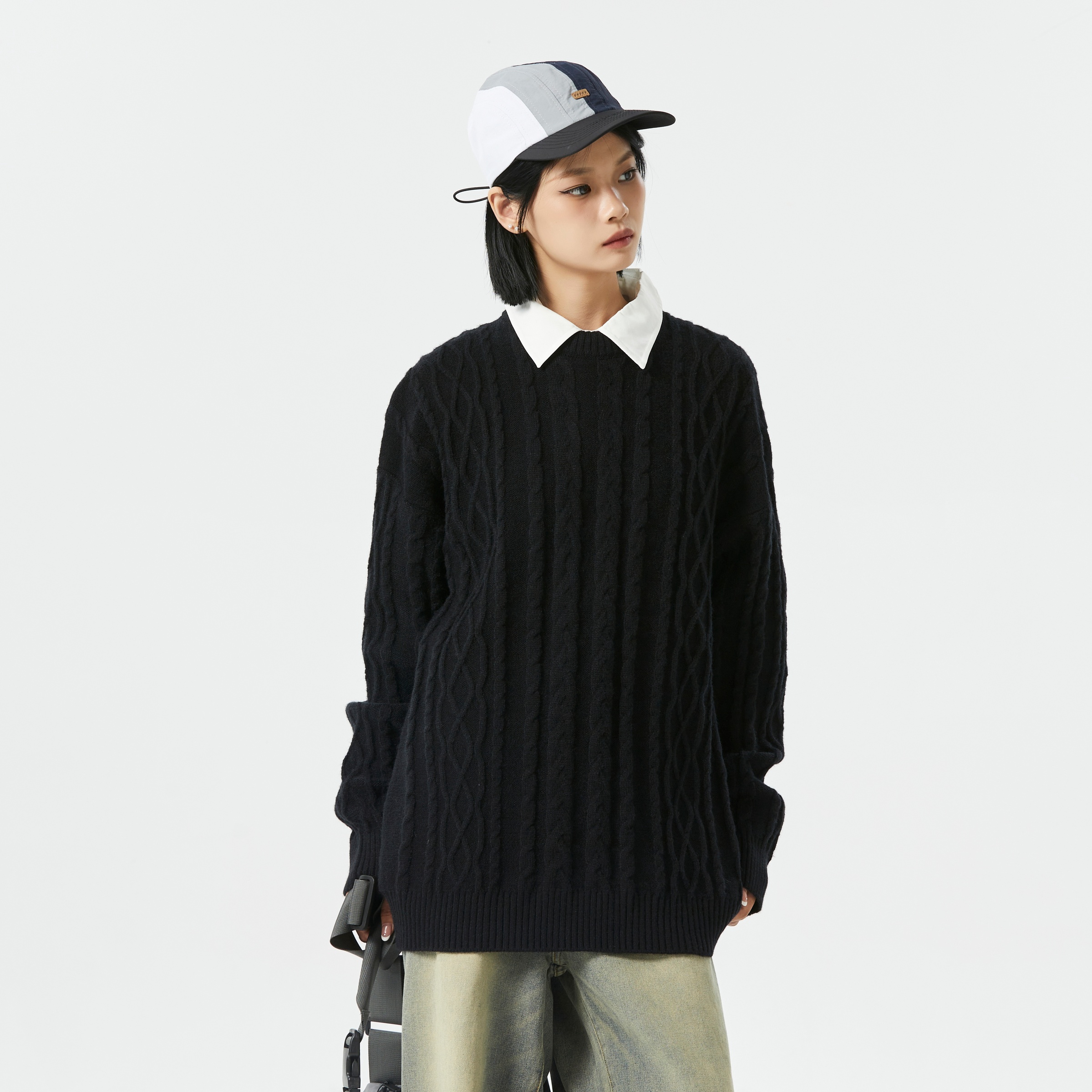 又经典又高级 黑色毛衣在秋冬更复古 关键是是真的很厚实很软呐 是不用吃土也可以拥有的复古麻花毛衣哦 最近天气太冷刚好可以穿在羽绒服里做内搭 春秋季单穿也是一样很好看的 我想都没有理由不喜欢吧