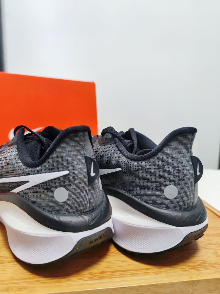 这款跑鞋采用zoomx和cushlon3.0双层材料中底,上层zoomx泡棉提供柔软脚感,下层cushlon3.0提供更高的缓震极限。 前后掌坡差很大,比较适合后掌跑法。 橡胶外底,凸起纹路可以更好的提供防滑和牵引力。 鞋面采用轻薄网眼布料,透气性很不错,整体脚感软软的很不错。