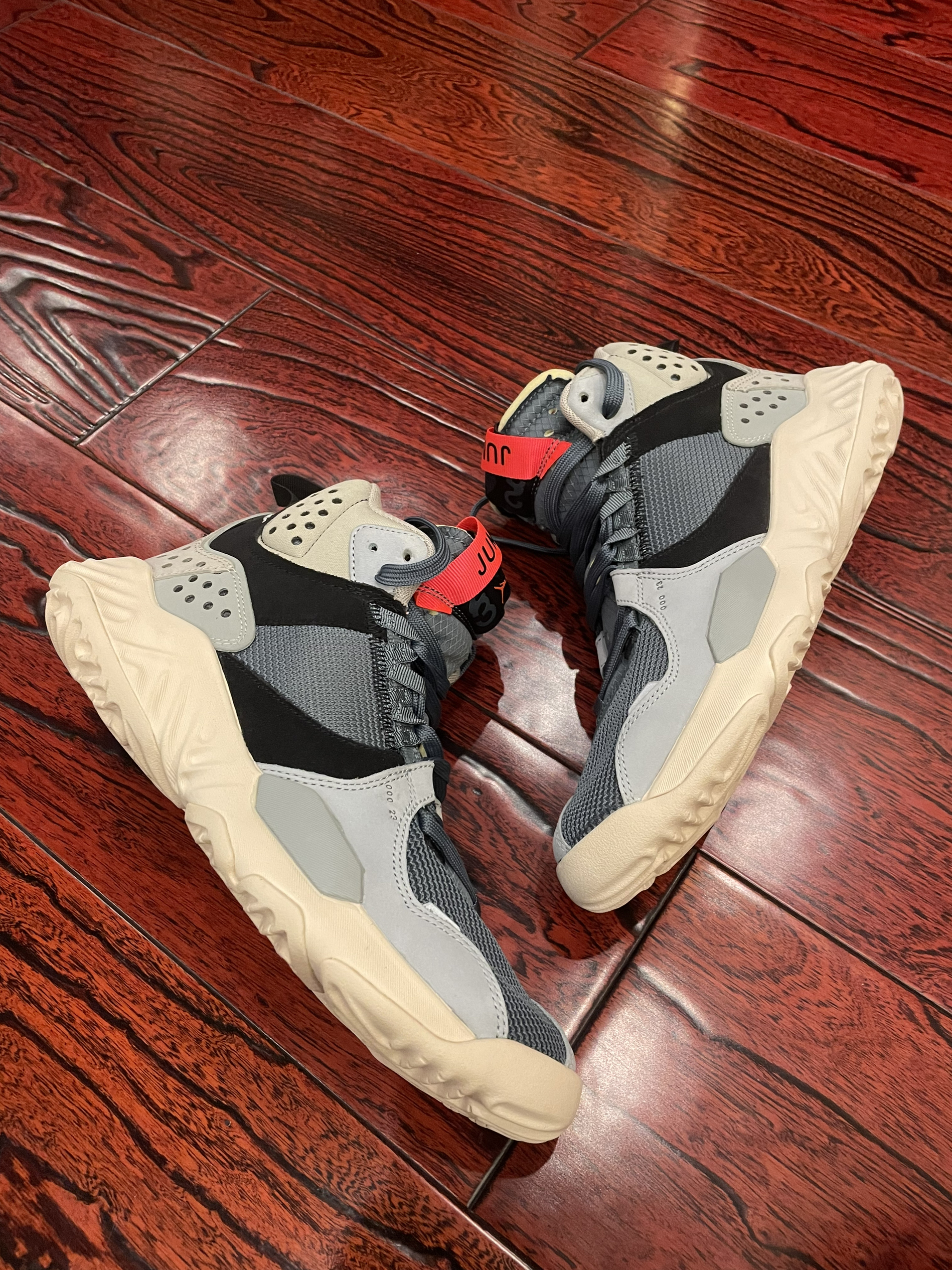 机能风格拉满的jordan jumpman 运动休闲鞋 大底很舒服,走路是非常舒服的。 只是后跟稍厚,脚有点往前倒的感觉, 多穿一穿应该会好很多。 jordan也在不断尝试运动休闲鞋, 这双我很推荐。