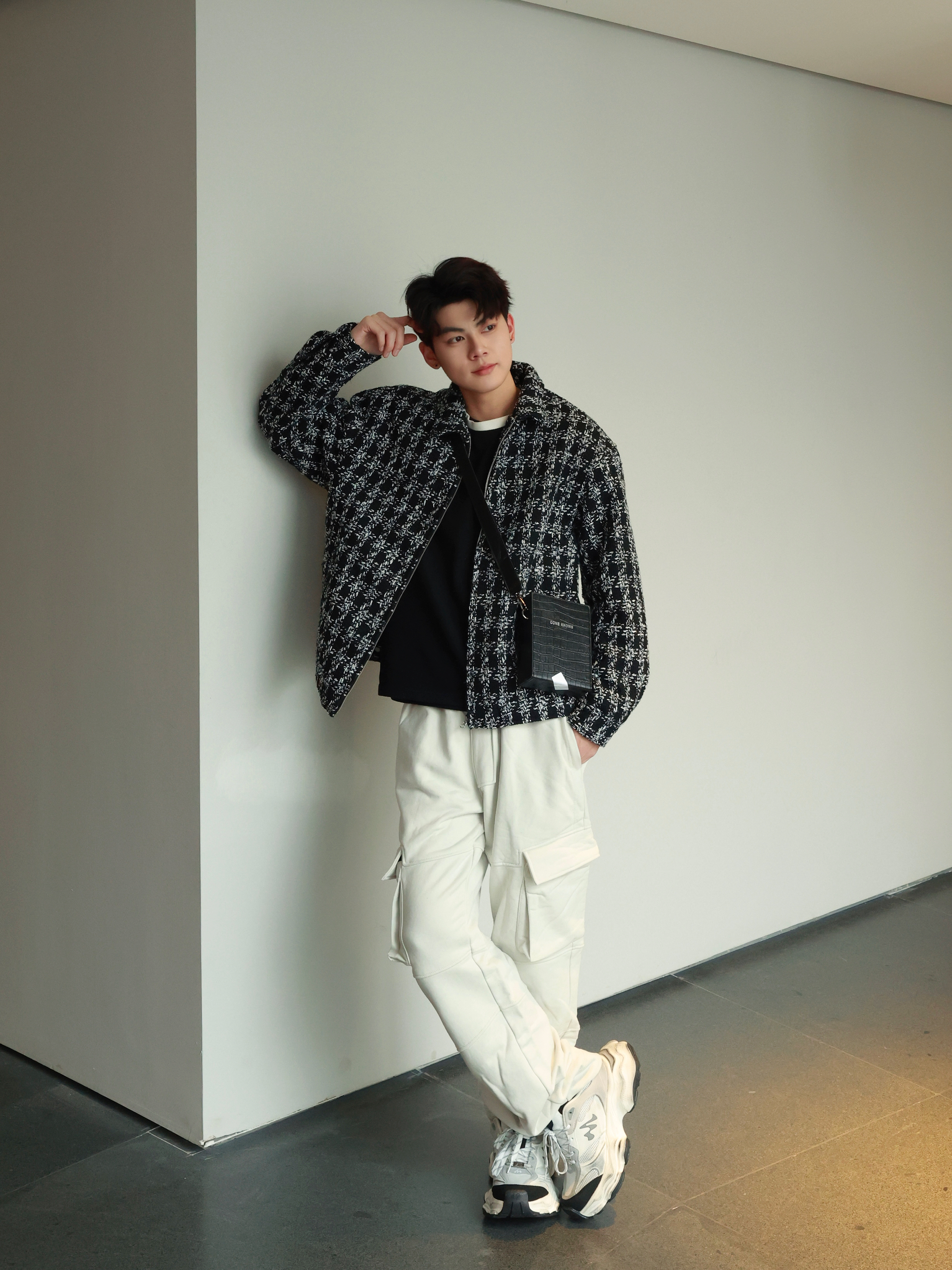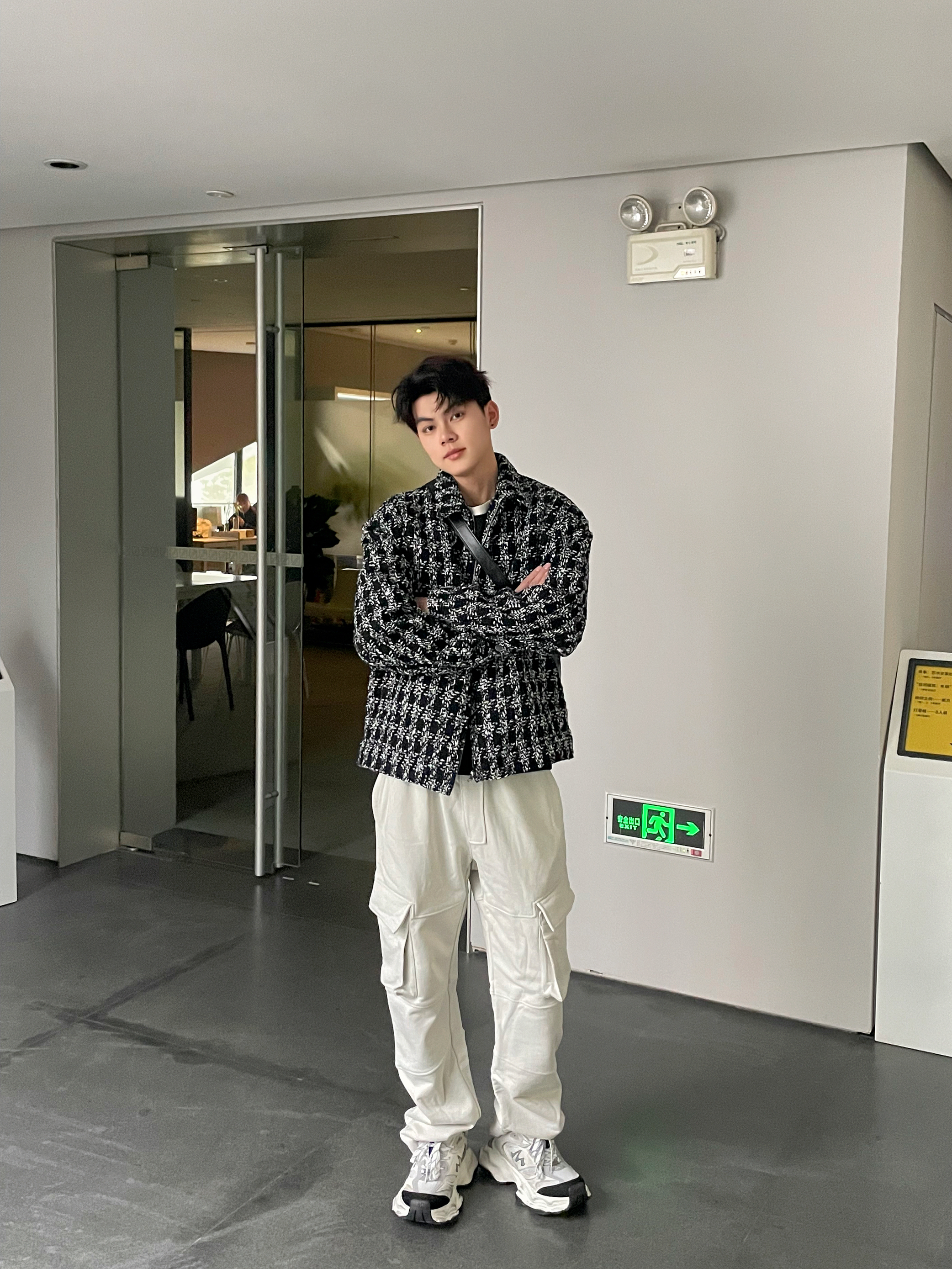 哈喽小伙伴们 这里是阿祖 - 谁懂哇! 又让阿祖挖到气质款外套了~ 今天的这套OOTD铁子们码住🐎!!! 简单的黑白色搭配起来蛮有质感的! 小香风夹克上身的效果很好看~ 粗呢子面料编制很精致 细看也耐看👀 裤子选择白色就很配~ 这么好看的穿搭必须要有一双帅鞋👟 老爹鞋搭配起来就刚刚好 同样的色系搭配! 这套搭配不仅增高显瘦 气质也是拿捏🤏🏻刚刚好! 小伙伴们学起来~~ - 👦🏻我的身...