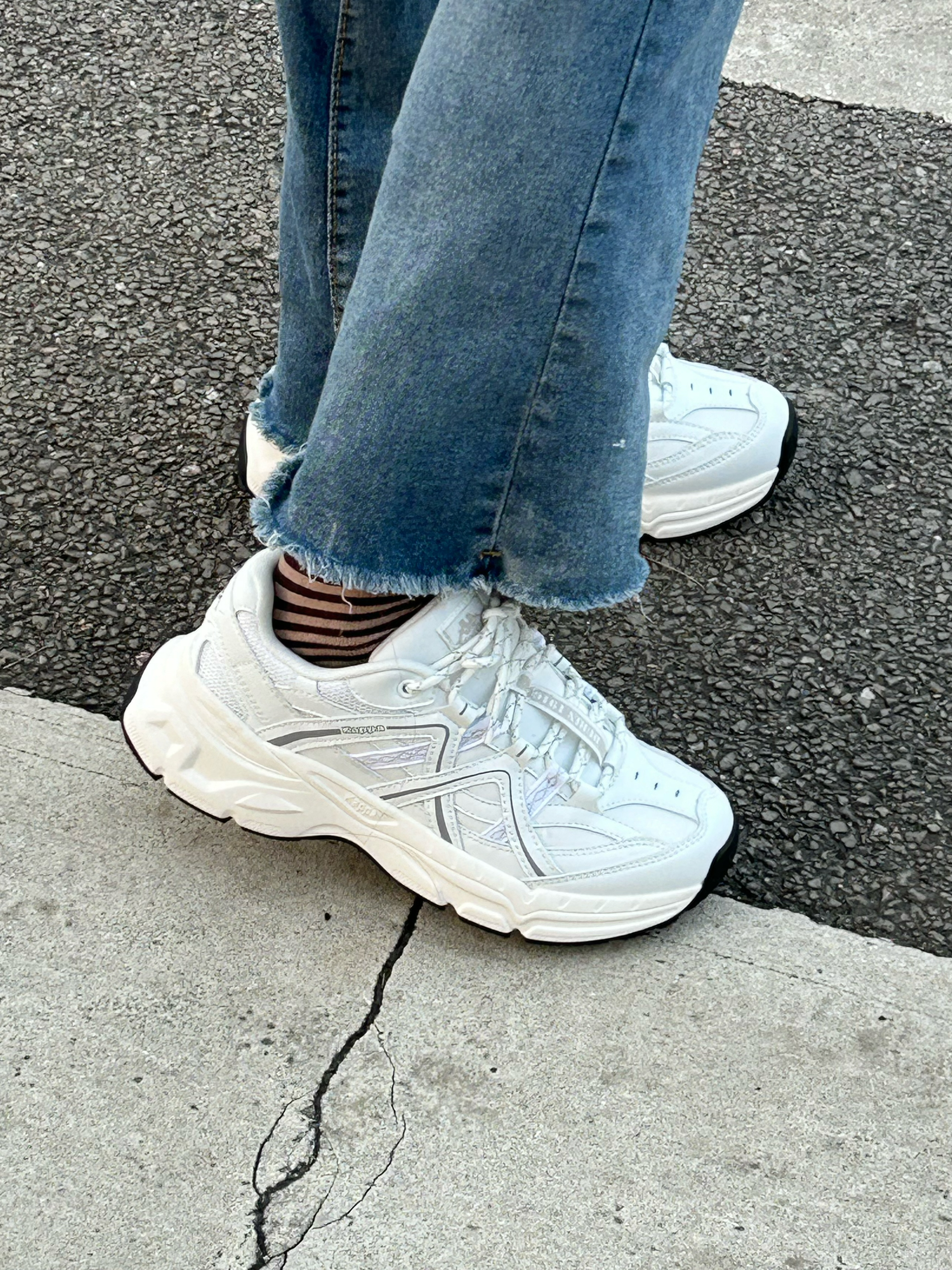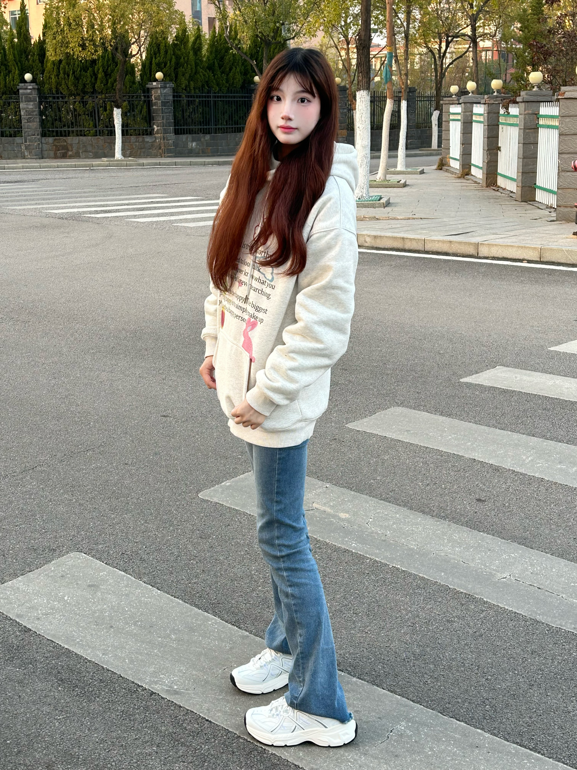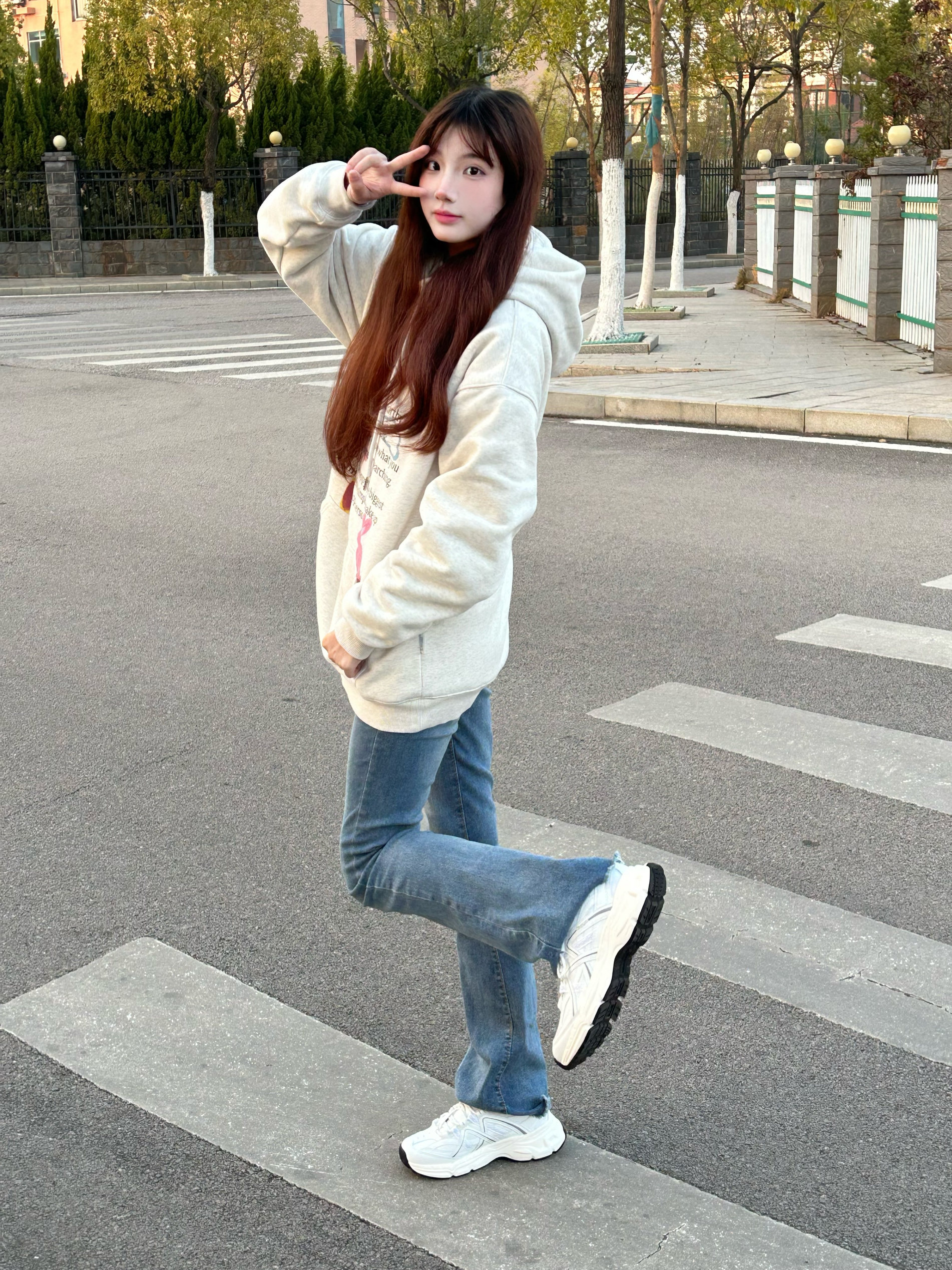 今天穿 杏色logo卫衣 ➕ 牛仔裤 ➕ Kappa 潮流老爹鞋 今天是 休闲百搭风🌬️穿搭呀 一整个潮流时尚又百搭呀 嘿嘿 而且这款鞋还🉑防滑耐磨 鞋子也很轻走路不累 老爹鞋👟真的爱爱
