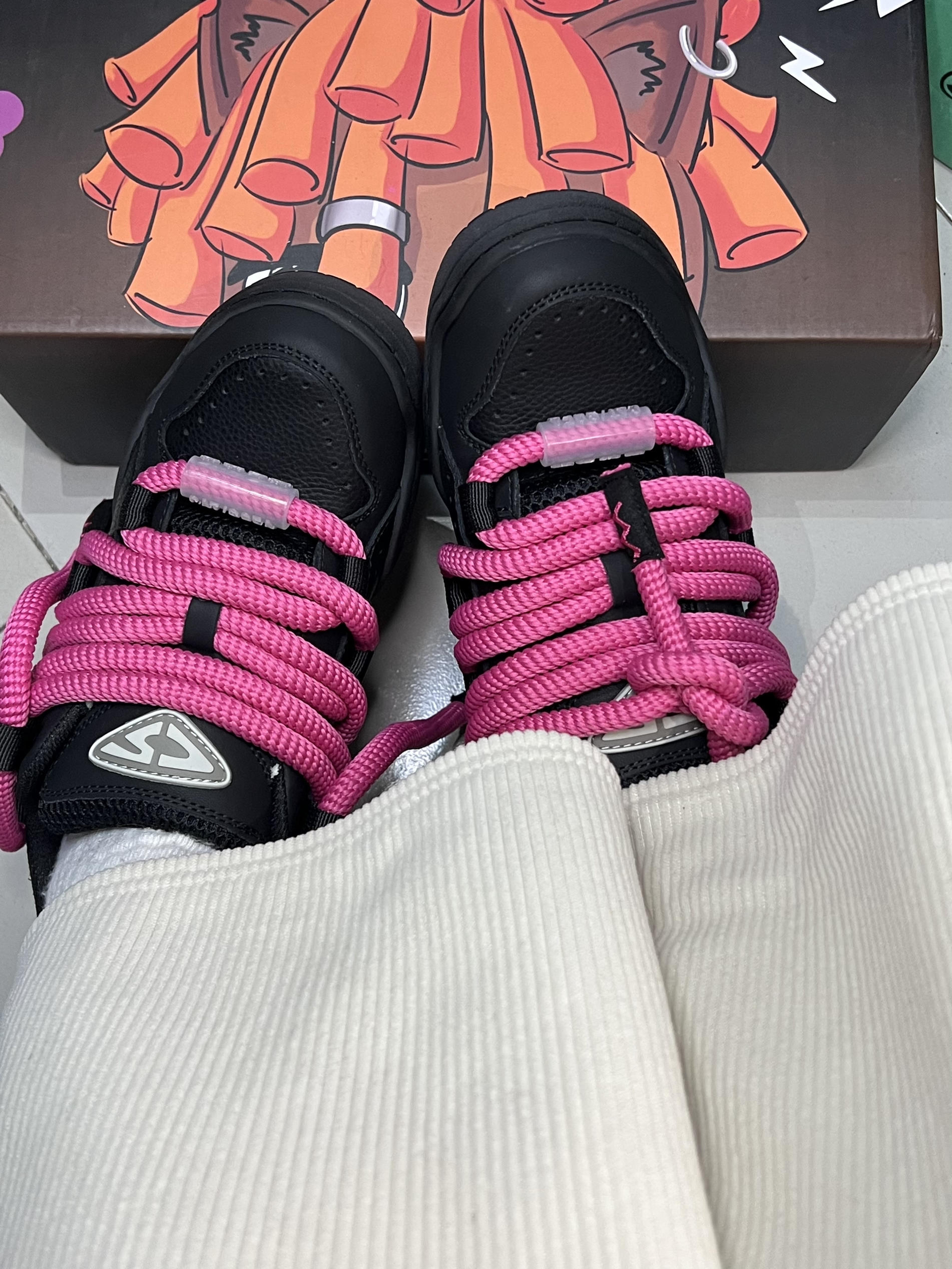 🔍分享理由:今天想给大家推荐一款平价小众的口面包 鞋,黑粉配色,十分亮眼,还是时下很火的blackpink风格,整体设计不仅巨显腿细,还很显高,成功拉长了我们的身材比例✅ 鞋面采用的皮革材质,加上橡胶鞋底,不仅耐脏,也十分好打理,我最喜欢的是它的鞋带,鞋带超大一条,在现实很少见的造型,和鞋身撞色十分亮眼,也很百搭,生活中不论是短裙还是阔腿裤,都能hold的住喔✅ 🤔整体感受:这双鞋真的是平价潮牌里...