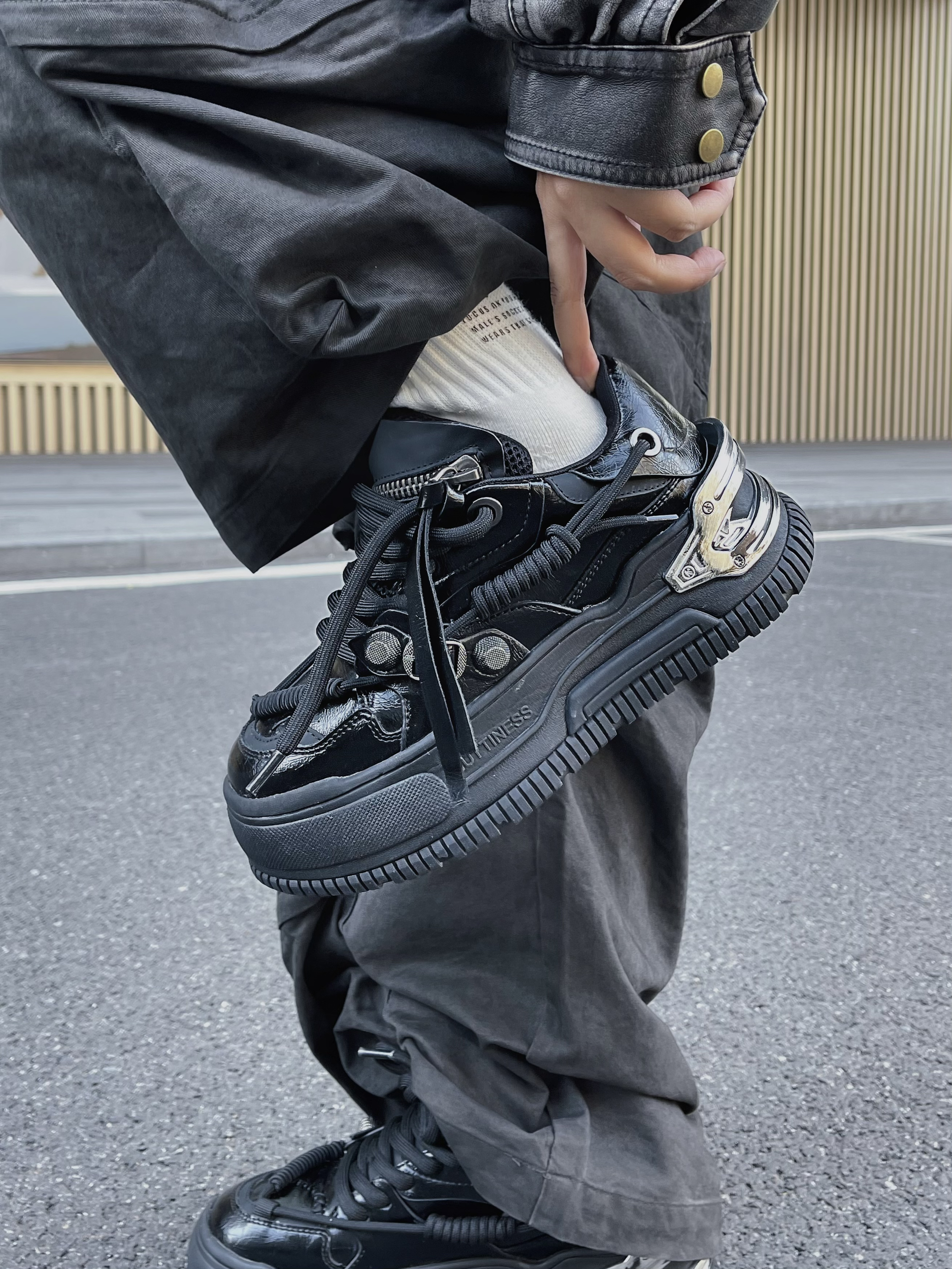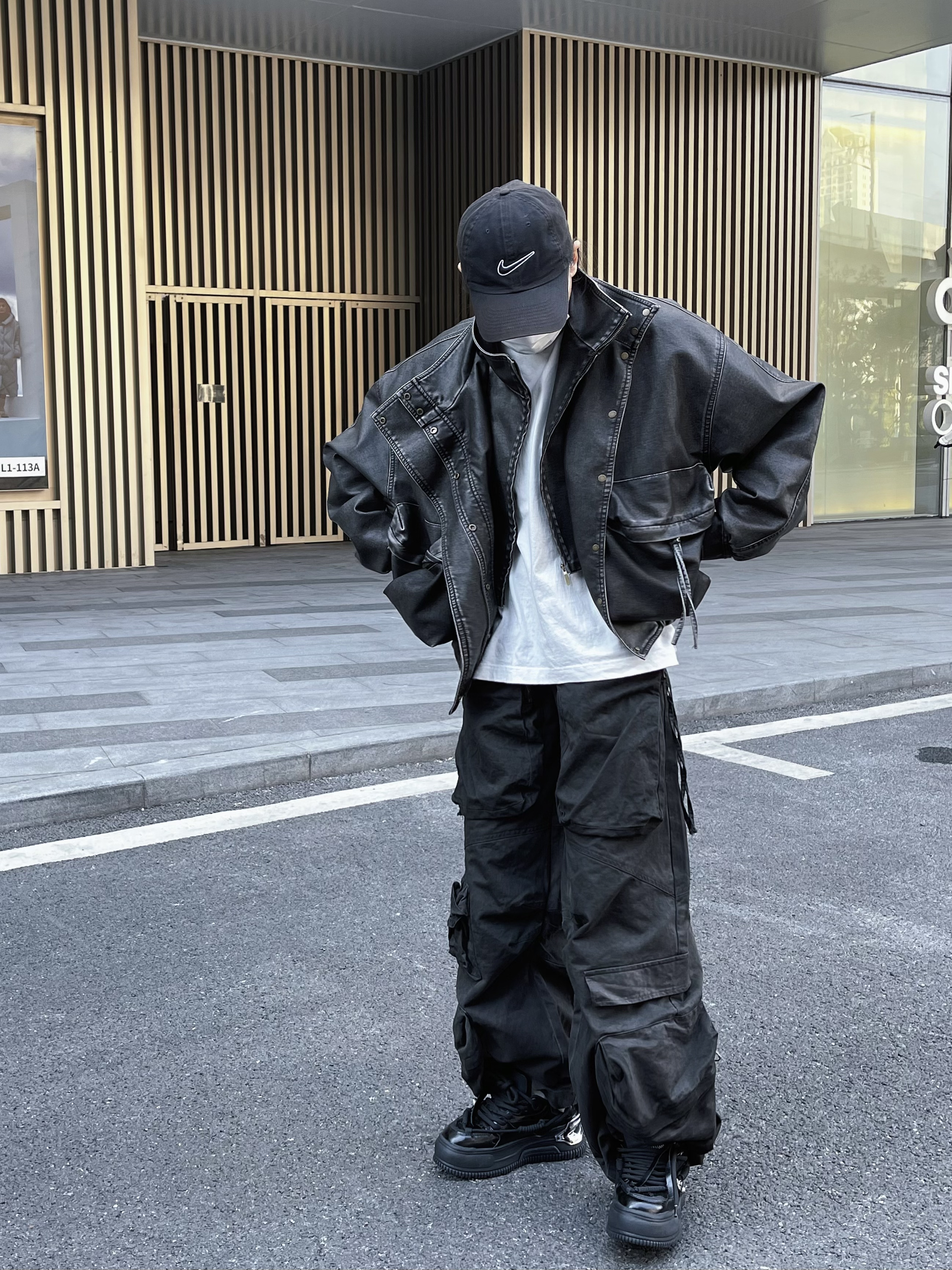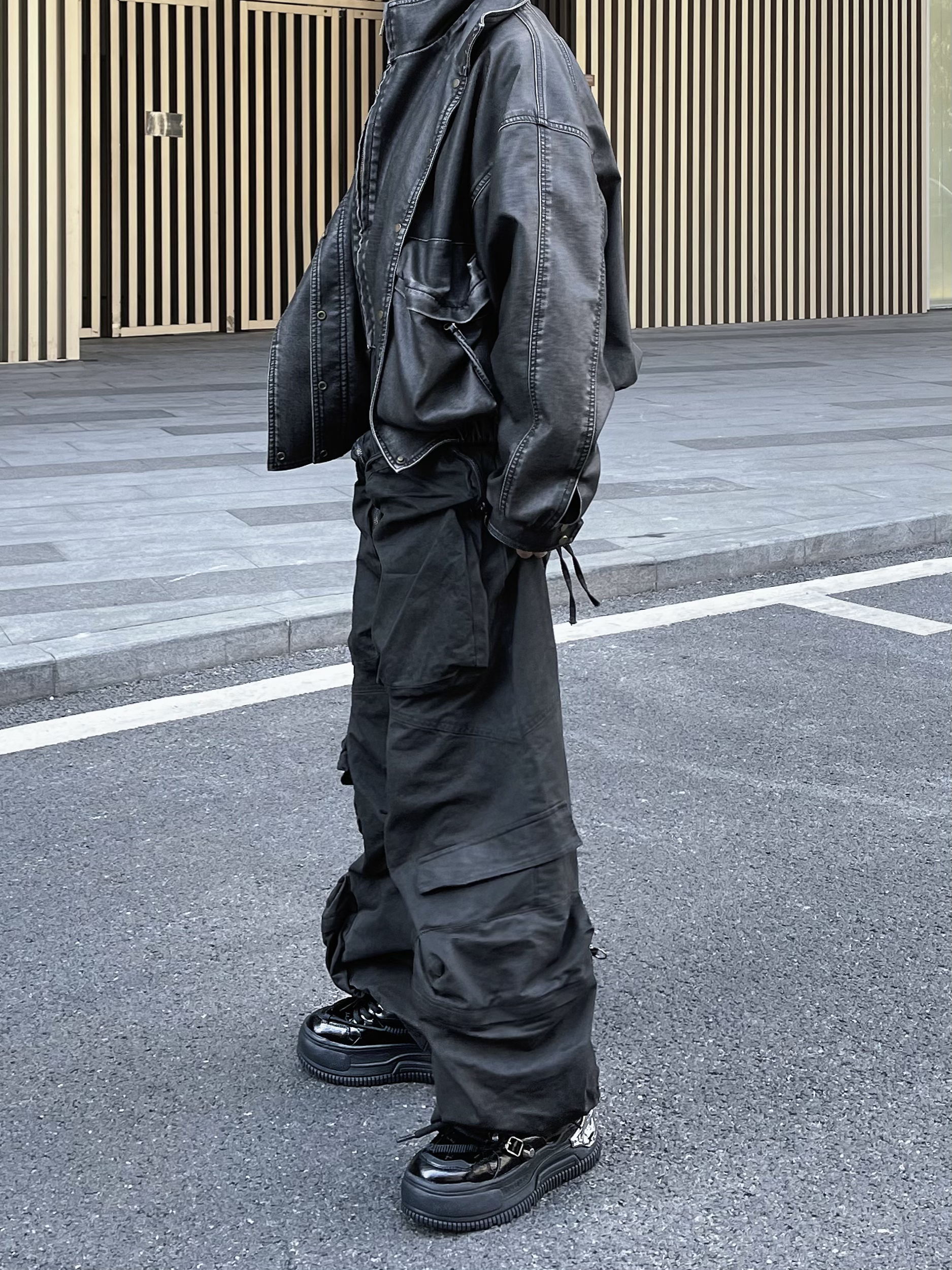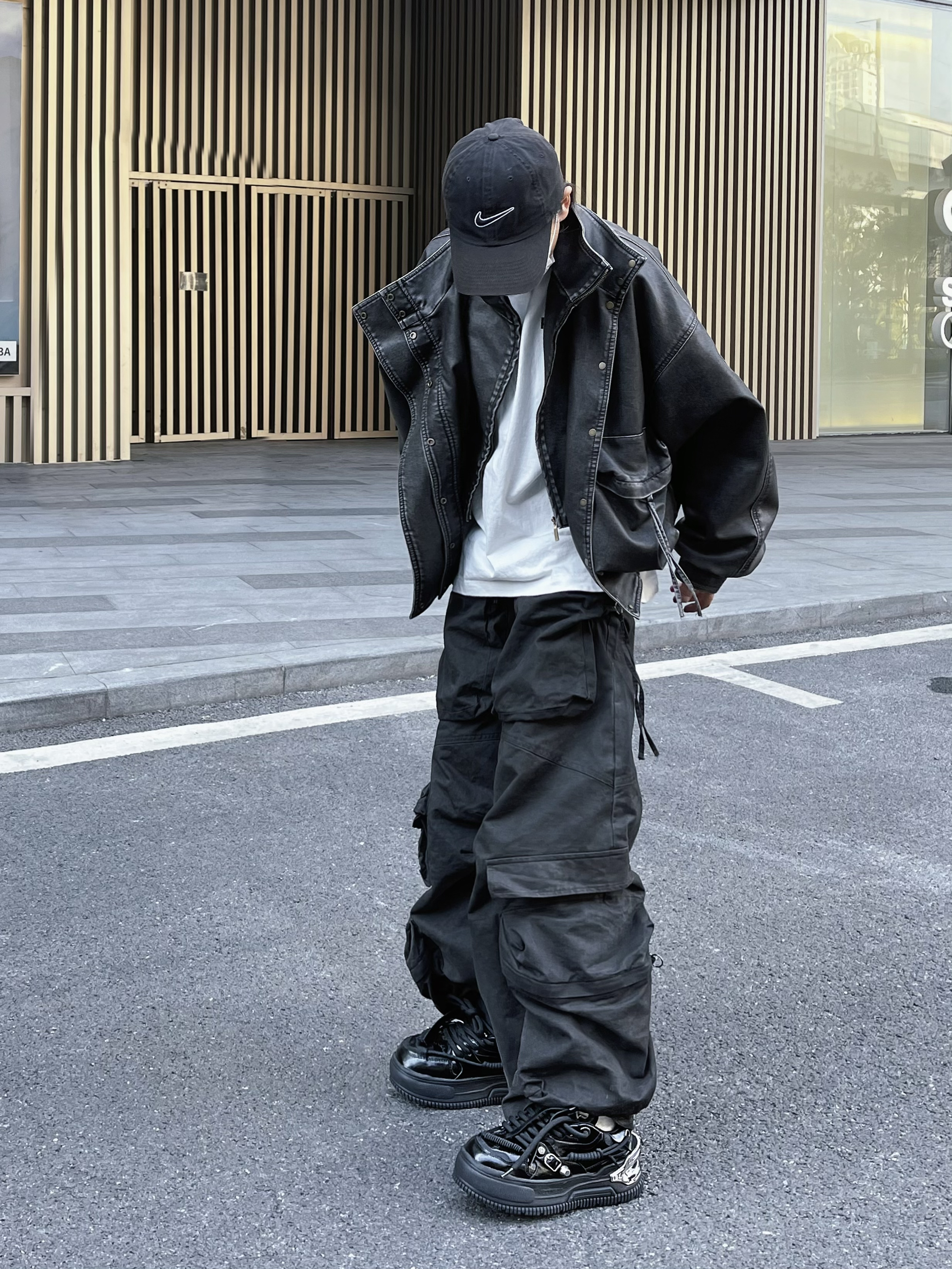 分享今天的ootd,上半身短款复古感皮衣 内搭件白T恤增加层次感 下半身来条不规则多口袋阔腿裤太酷咯~ 这种大裤脚工装裤一定要配厚底鞋 我选择这双国潮小众品牌NUTTINESS复古面包鞋 平时穿习惯了增高真不习惯穿平底了 这双厚底增高 虽然外观看似很厚重 但是实际真的很轻盈脚感软乎乎的~ 整一套look复古高级感帅气满满👌🏻