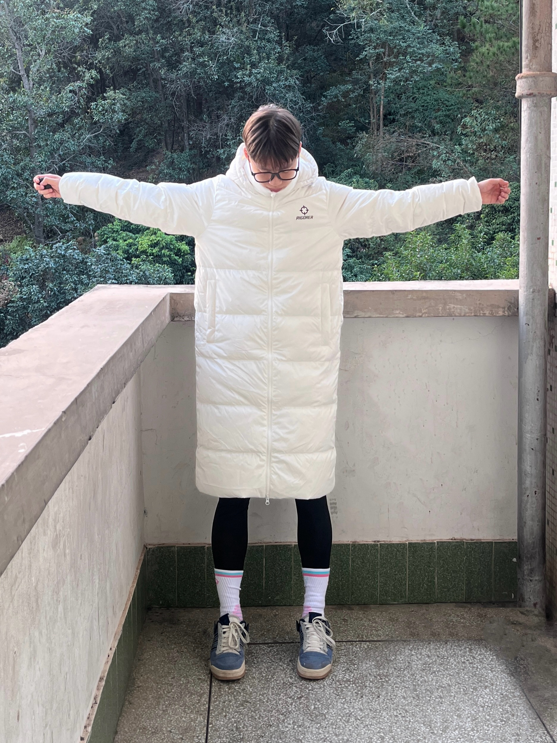 今日份穿搭分享👀 衣服是 准者 RIGORER 家的长款羽绒服 米白配色和秋冬季节相呼应 颜值简约时尚🔥 内置鸭绒填充很足 保暖效果很棒 版型设计也非常正 穿上后很显瘦 无论是户外运动还是日常出街都很合适🚶 里面可以内搭一件长袖以及一条紧身高弹 再搭配上 准者 RIGORER 家的篮球袜和百搭板鞋 一套下来 轻松拿捏秋冬🫴