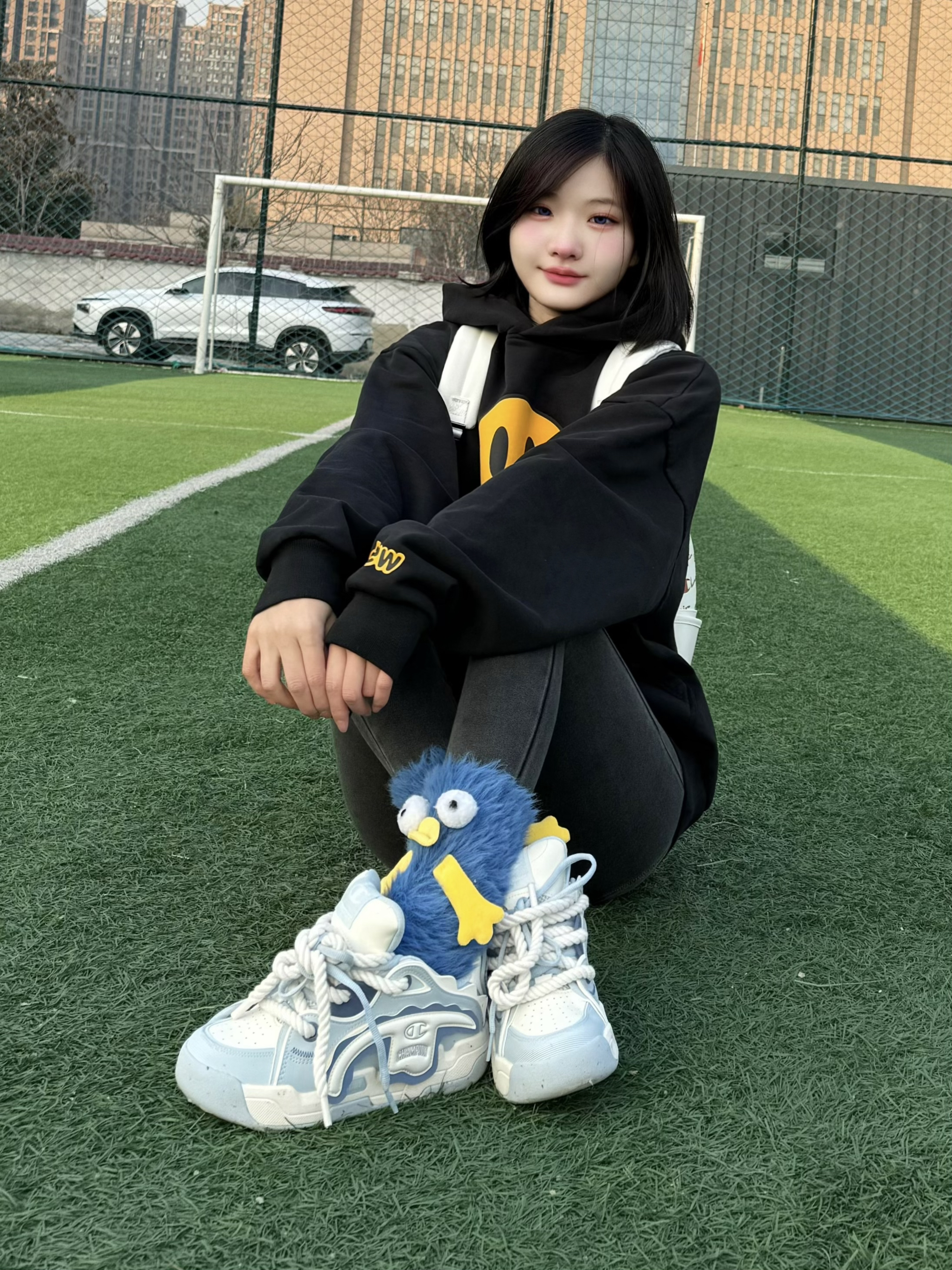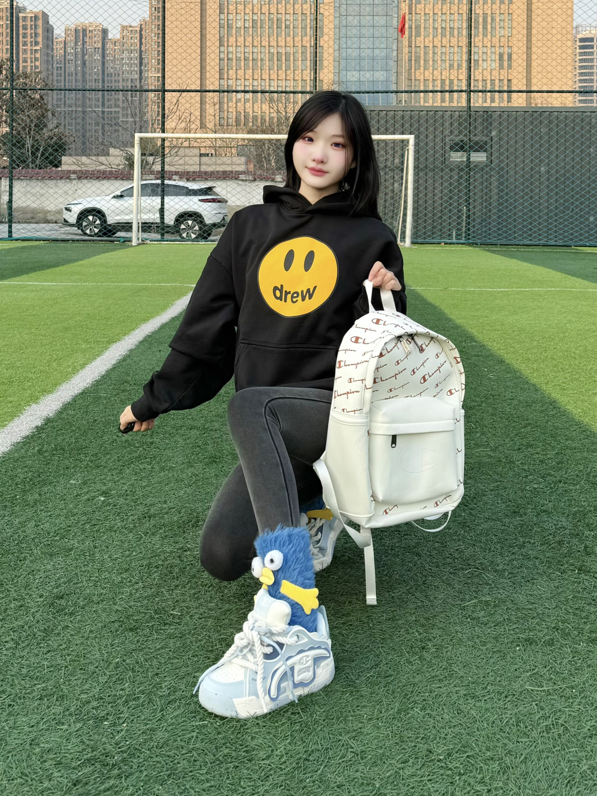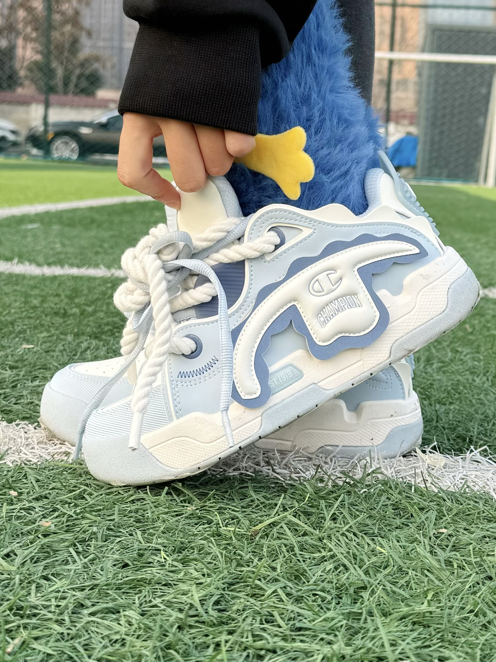 今日份简约耐看的卫衣穿搭 搭配champion蓝白撕撕乐面包鞋 胖嘟嘟的鞋型超可爱~ 上脚还很显脚小,舒适感也很好。 背的双肩包也是来自champion,浅色防水材质,脏了一擦就干净,很好打理!🎒