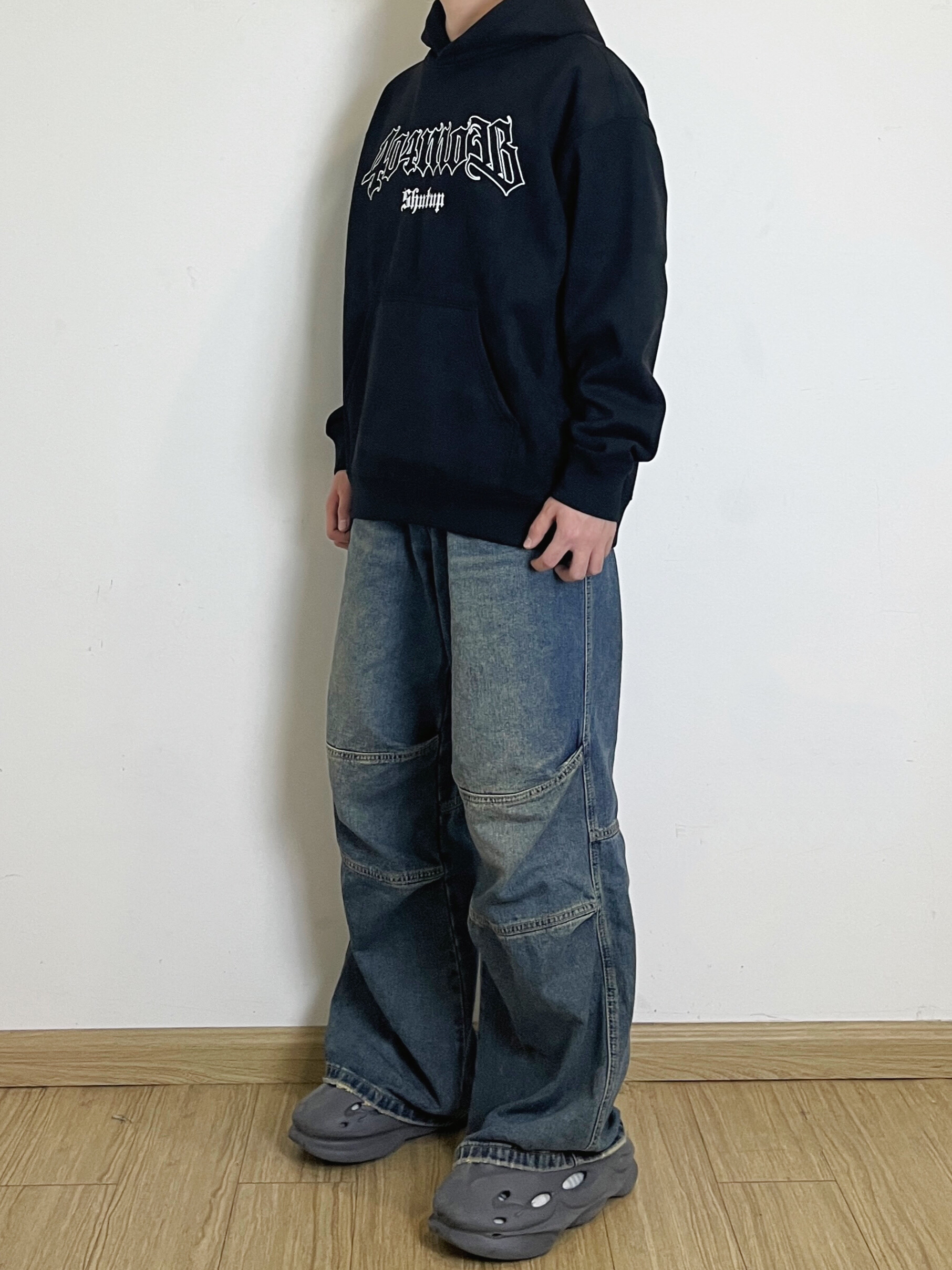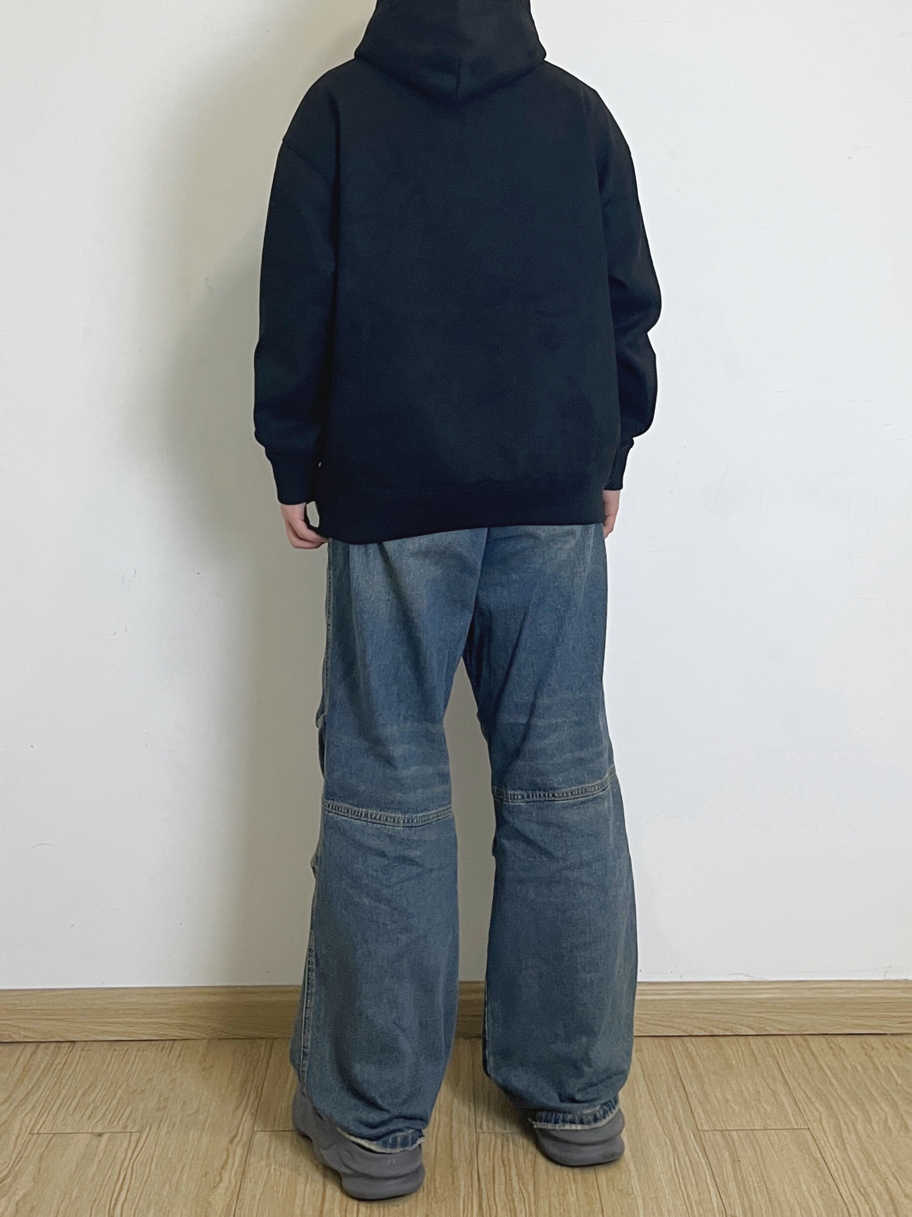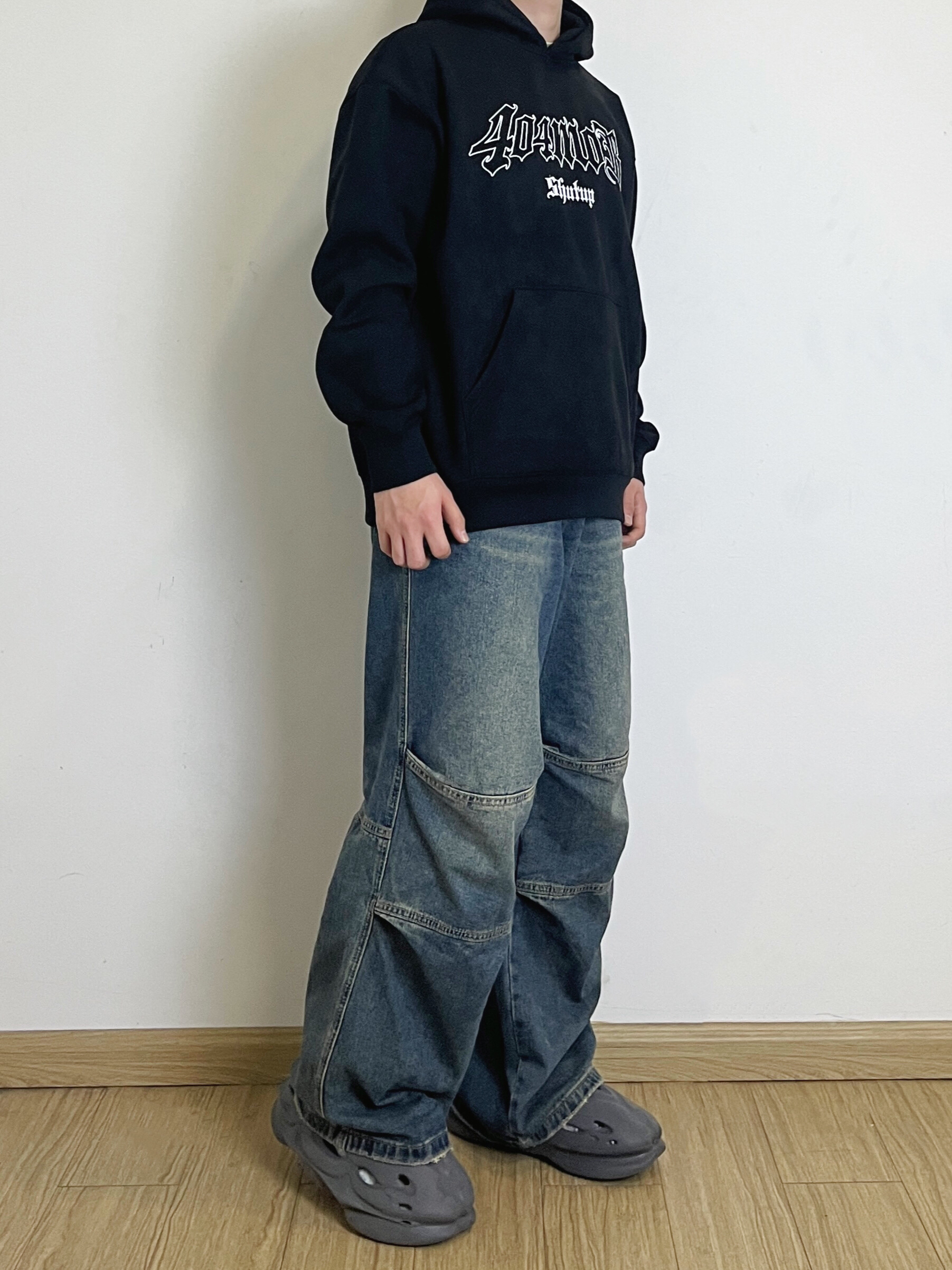 😼身高178体重68 兄弟们冬日酷帅的街头美式复古穿搭你还不会穿吗 今日美式复古街头风穿搭分享📼 黑色美式刺绣字母印花卫衣 搭配上复古蓝褶皱设计拖地牛仔🆒 黑色跟蓝色的简单搭配复古又随性📼 卫衣纯色的设计加入了刺绣🪡字母印花的点缀 上身简约的同时也不失设计感 搭配上拖地牛仔这一套就是满满的美式复古街头风 兄弟们入冬复古随性的美式穿搭还不赶快抄作业📝