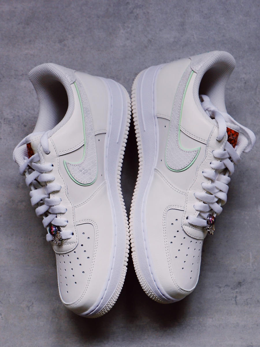 今年Nike真是绝了!!龙年限定的Air Force 1真是让人眼前一亮✨ 到手我就知道它一定会成为我穿搭常用鞋!😍 这双是白绿的配色,很清新适合春天🍃的搭配,柔软皮革质感舒适度满分!浅色系的球鞋加上绿框logo的点缀,简约又独特,小logo是偏镭射光的绿色刺绣,特别显贵气,而且鞋头还有两个龙珠,满满的精致感!🐲龙年限定的细节还是做的很好的 鞋底也是做了很耐磨的防滑底纹设计,✅可以平稳抓地,上...