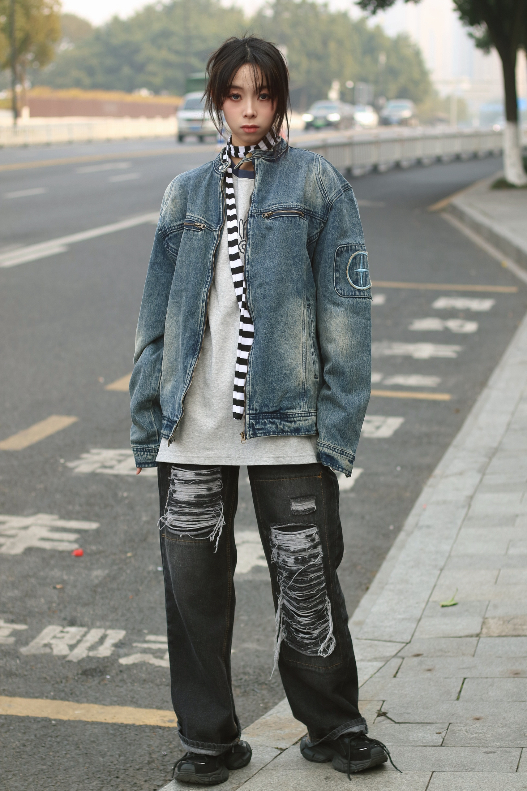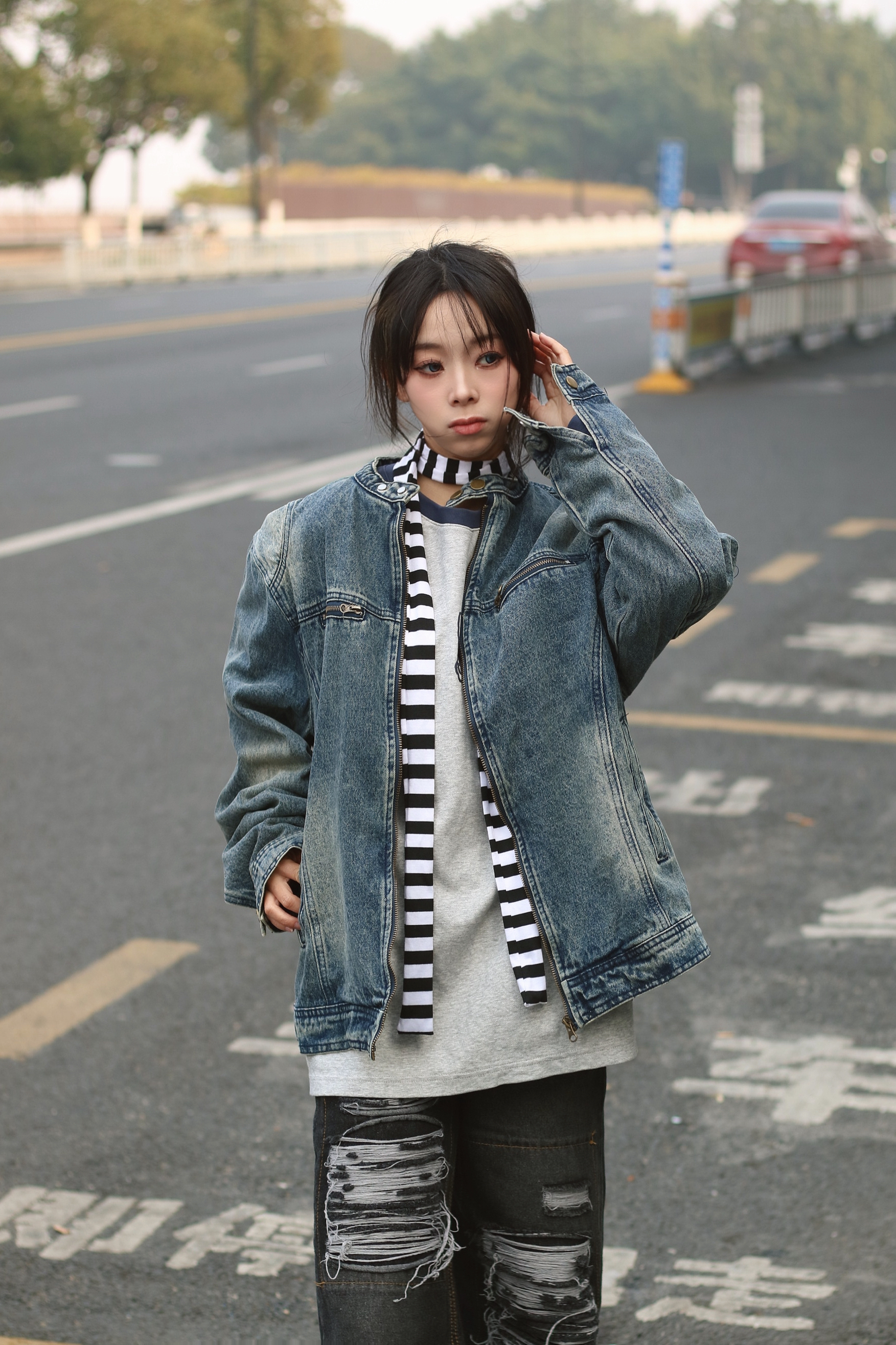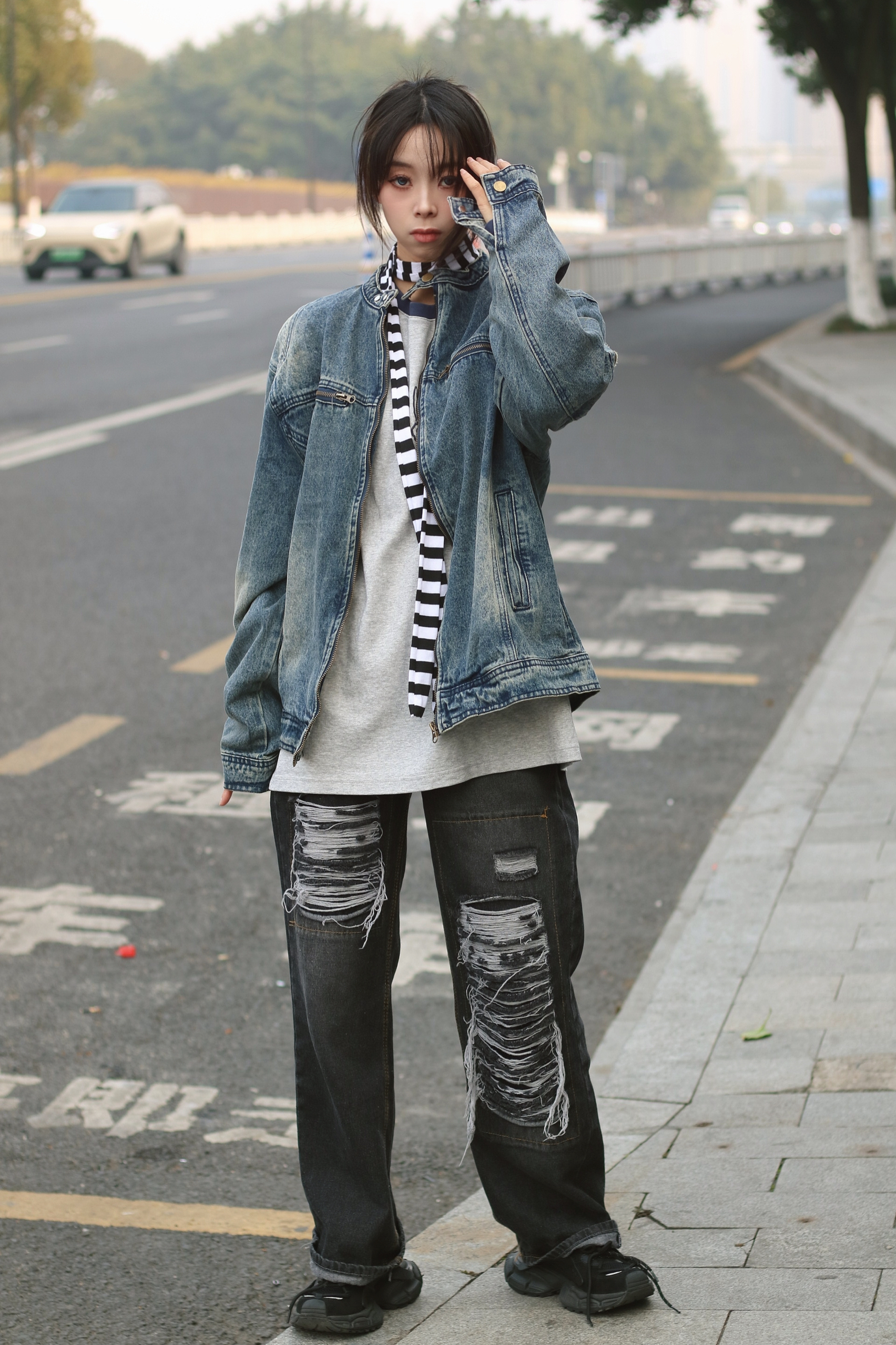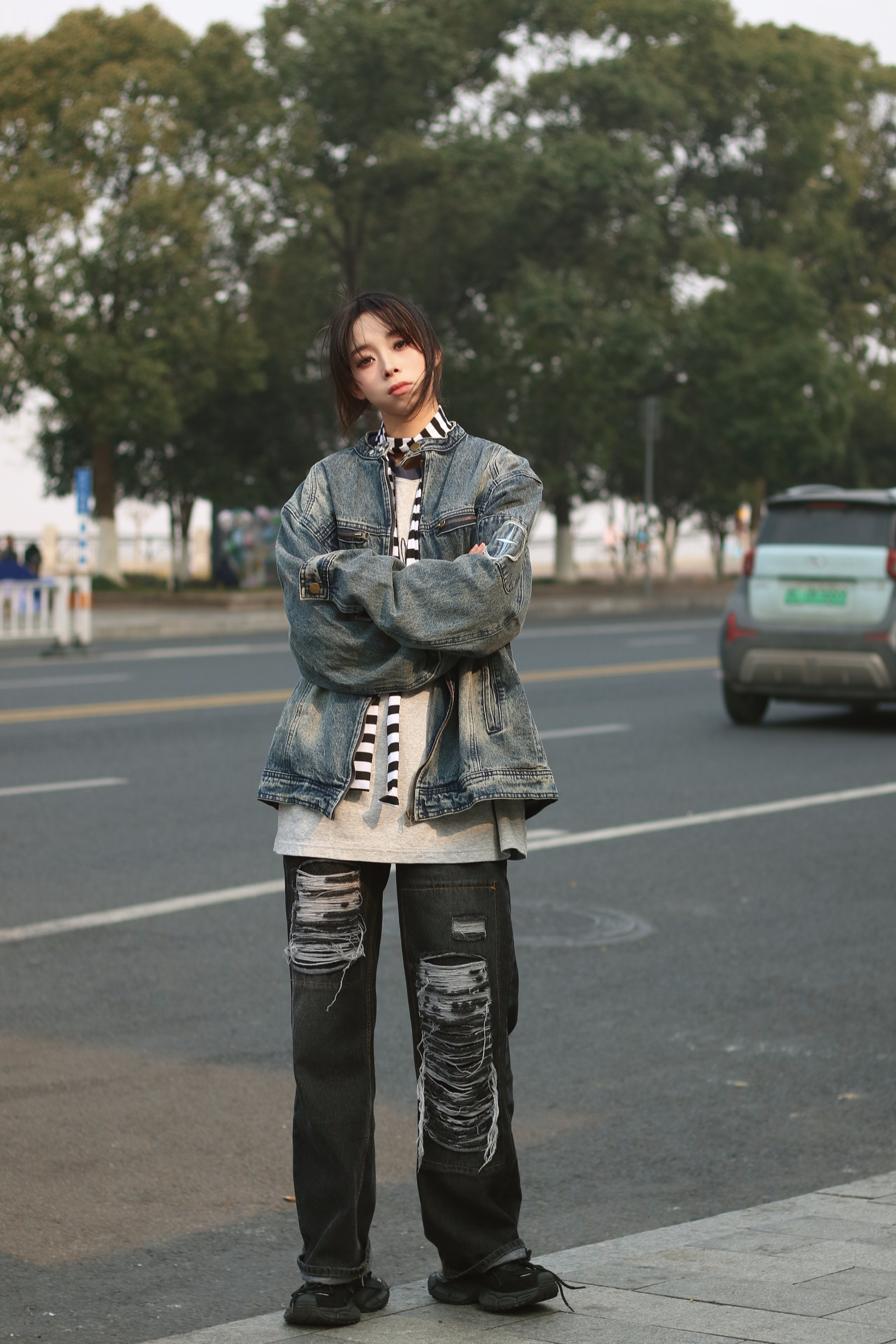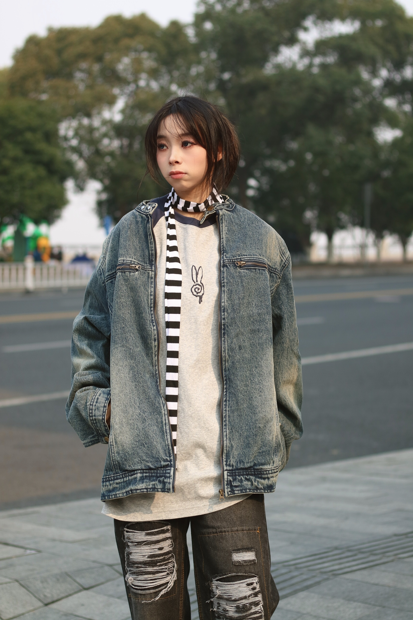 试问谁能拒绝单穿叠穿都好看的牛仔外套啊,一件好穿好搭的牛仔外套真的可以过四季!硬挺的面料真的上身超有质感!版型也不易变形,宽松很显瘦,十几度的天气很适合日常出街,满满的街头氛围感,内搭同色系T恤就很不错~