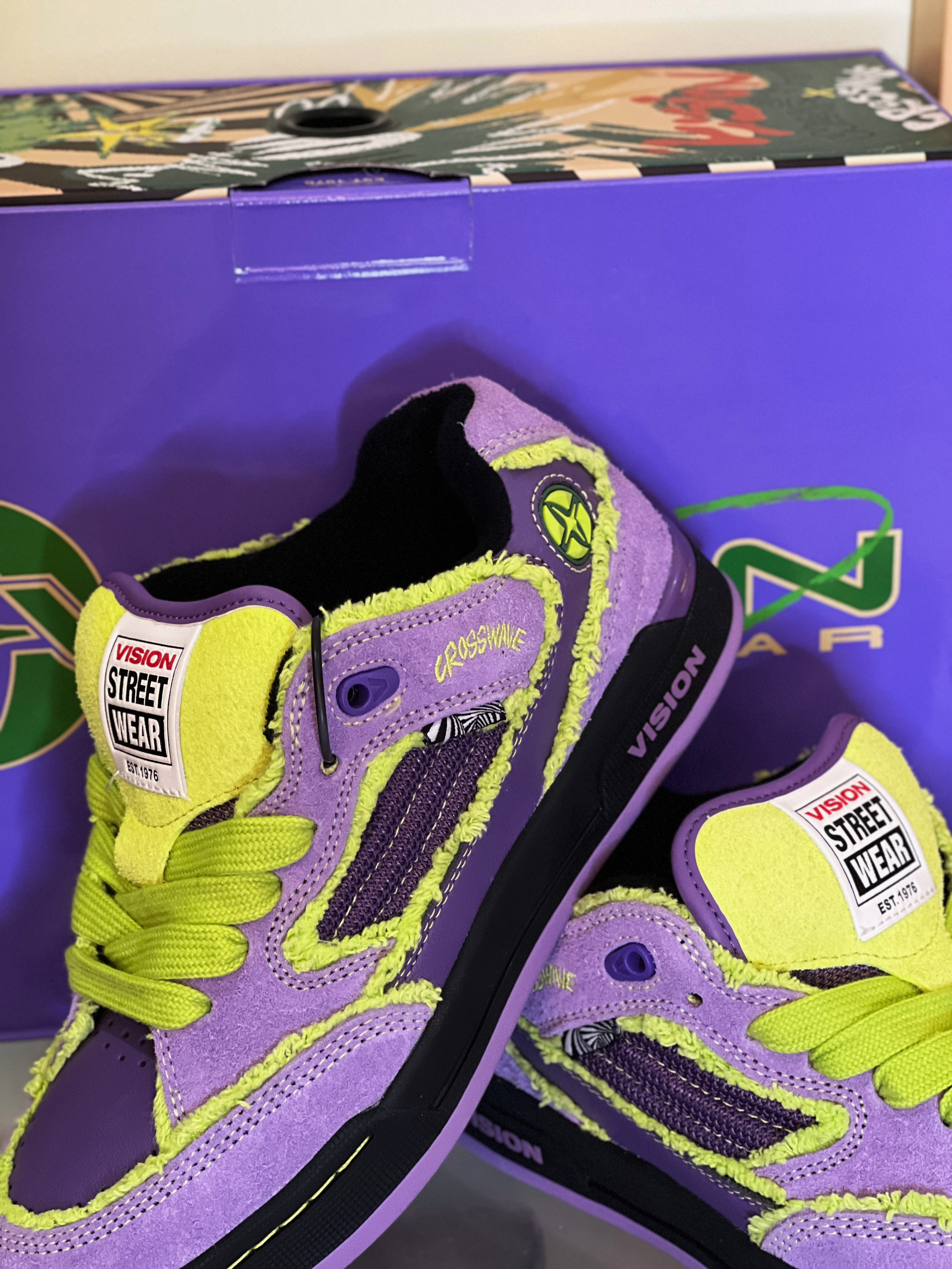 Vision龙年限定🐲|这么炸裂的滑板鞋嘛? 嗨 bb们~ 新鞋开箱 必须给你们安排上 龙年让你红到发紫💜 好好看的配色 炸裂就是要从头到脚👟 承包了一整年的好运和快乐 新春系列 全新的面包鞋型SAVVY VISION STREET WEAR x CROSSWAVE新春胶囊系列!融合了街头潮流和专业滑板元素🛹 CROSSWAVE经典IP形象炸毛LIONBIT和VISION的滑板元素完美结合,在龙...