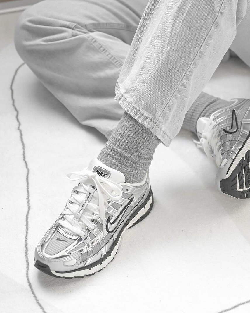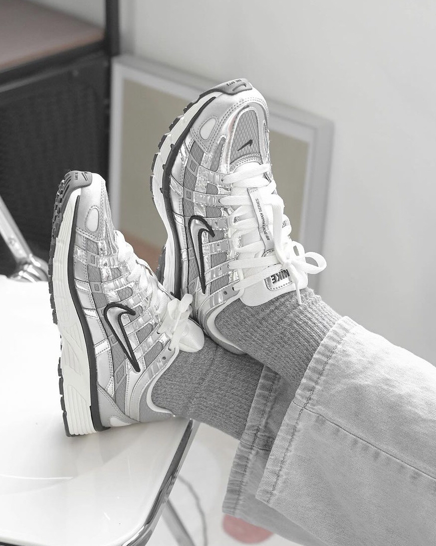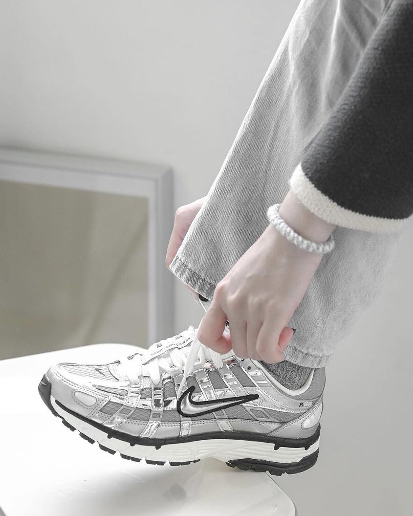 这双P-6000复古跑鞋,你还别说,上脚厚的那小感觉是真不错,银色漆皮和网布的鞋面不仅亮眼,还蛮透气的,米色的鞋舌和米色中底又为鞋子增色不少,穿搭起来也容易,日常和牛仔裤或者休闲裤搭配都不错。
