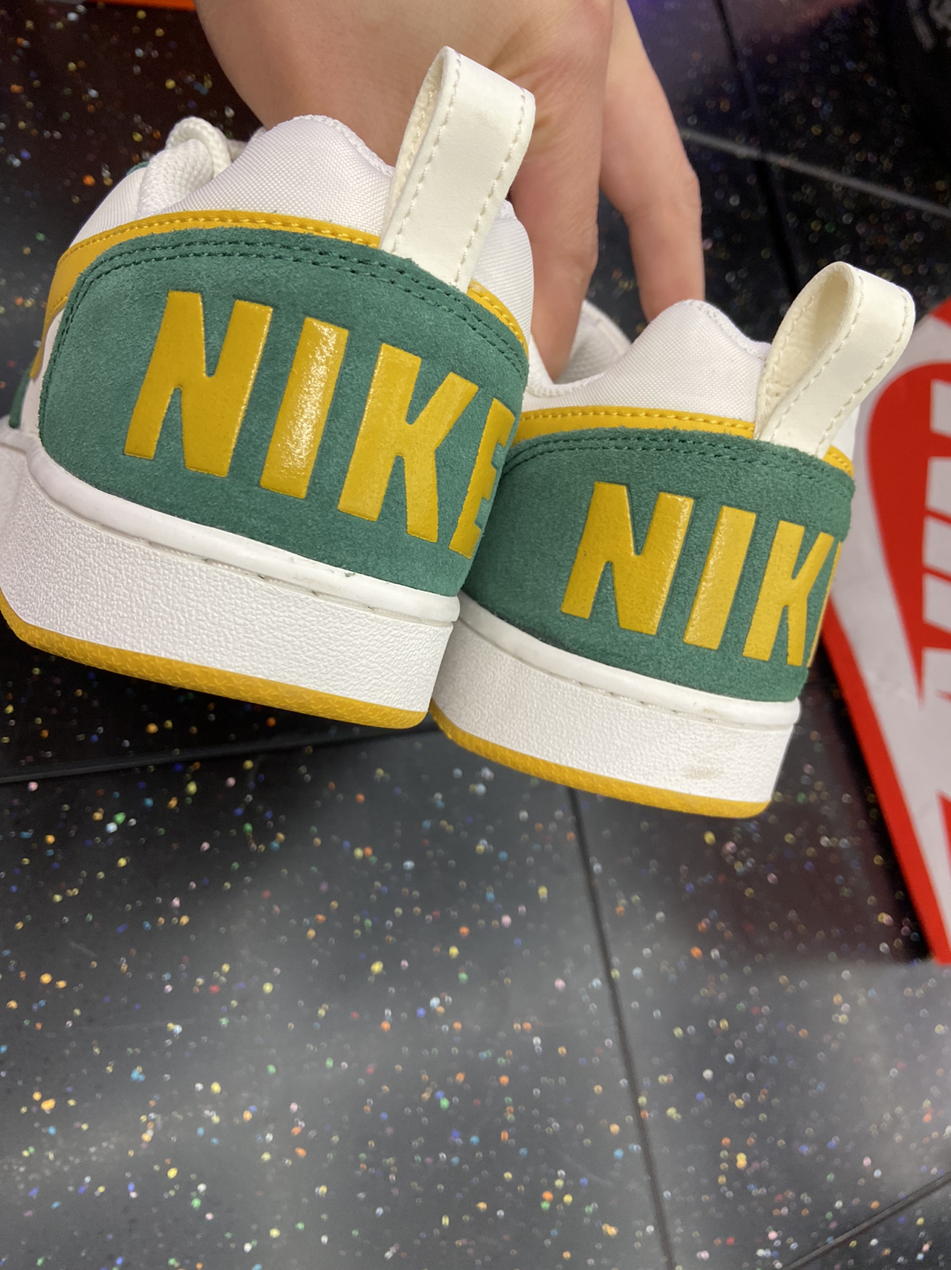 今天给大家分享一款高颜值的court板鞋,这双黄绿白的板鞋,真的把配色玩明白了,非常非常的好看,让人挪不开眼,而且最近价格3开,真的绝了!尺码标准,稍微有点偏大! 鞋子缺点就是远看好看。近看细节处理的一般,帆布的,鞋面折痕明显,不容易消失!