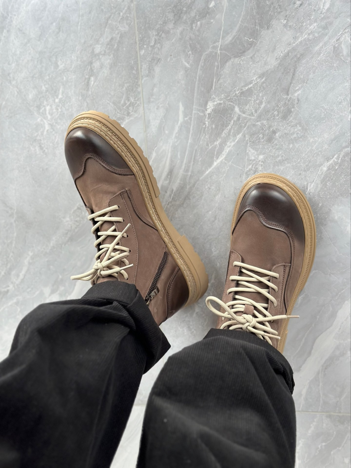 要说冬天穿什么鞋子最酷 那肯定有马丁靴的一席之地 ✔️ 全皮的材质高级感十足 更加经久耐穿 这不就是今年大火的美拉德色系吗❓ 特别适合秋冬的颜色 怎么搭配都很酷 内侧的拉链设计更加方便穿脱 鞋带都不用解开 主打一个简简单单 ✔️ 脚感舒适 还稍微有点增高的效果 冬天离不开的马丁靴 穿就完了