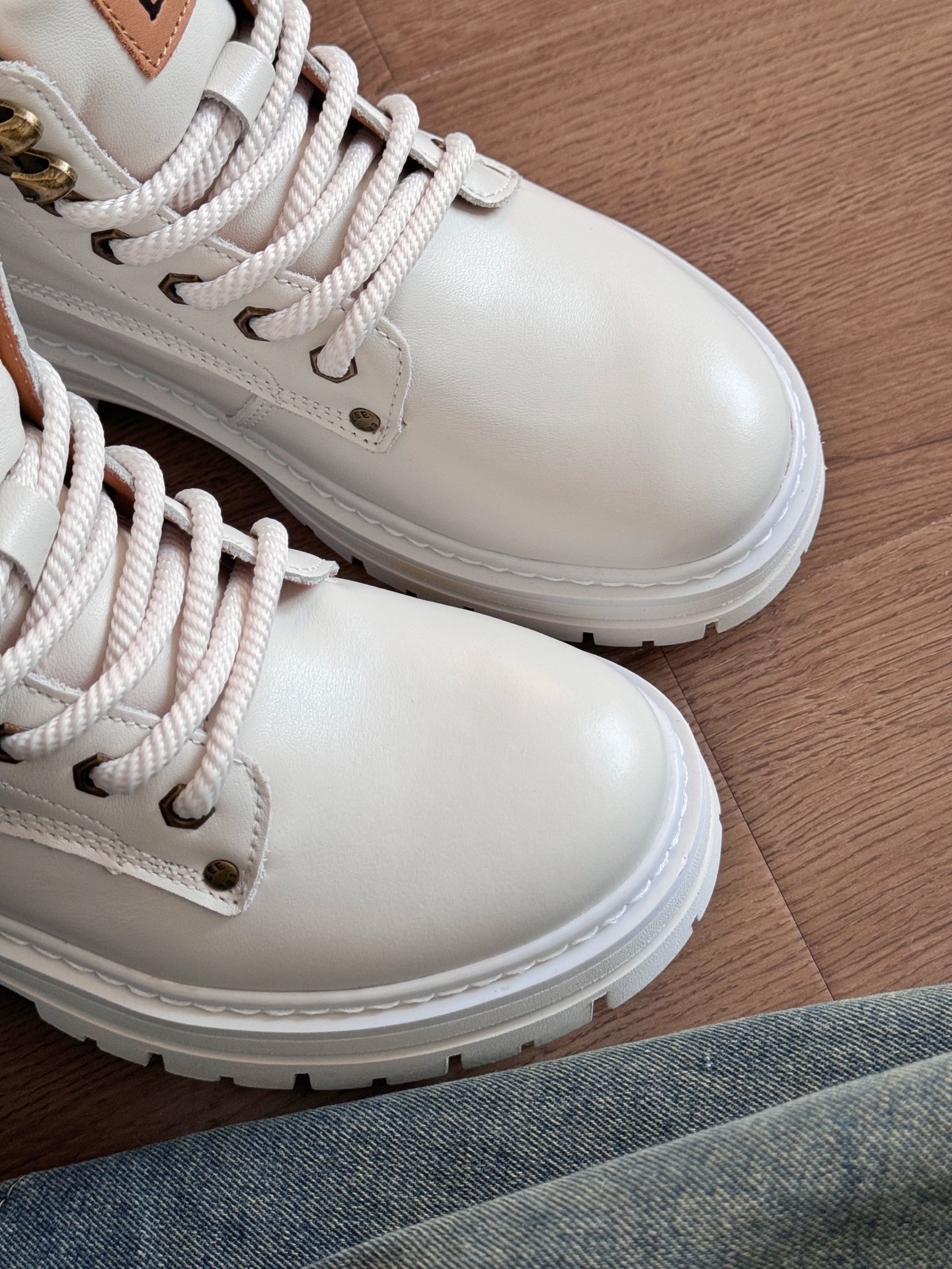 之前穿的最多的色系就是棕色马丁靴 没想到这双白色的也这么好看 很惊喜,上脚也好看 搭配牛仔裤有点小复古的感觉 尊滴好看呢,码数也是正常喔 #新年买新鞋 #2024的第一双鞋 #2024第一件潮物 #新年有新选 #秋冬宝藏休闲鞋