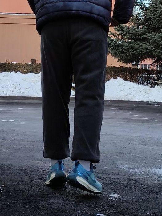 这双鞋子针对前两代设计语言进行升级,变成了一双既适合慢跑又适合通勤鞋型,颜值方面就仁者见仁智者见智了,我是比较喜欢这种造型的,而且这个纯蓝配色很高级,相对来说也比较好搭配百搭,整体鞋身流线型设计也很帅。上脚效果很棒,我在日常出街时喜欢搭配束腿裤,直筒裤等,总体来说还是挺帅的。上脚不像老头鞋hhh。