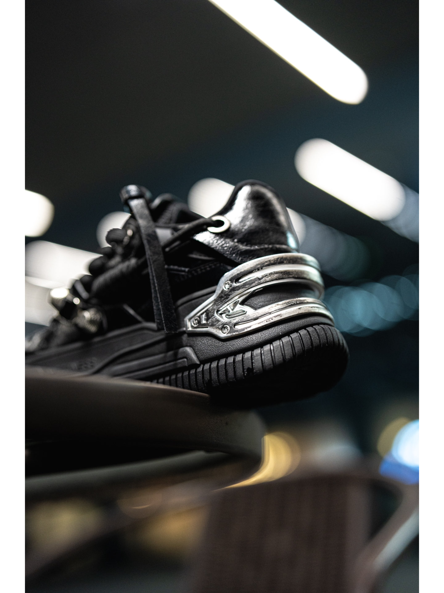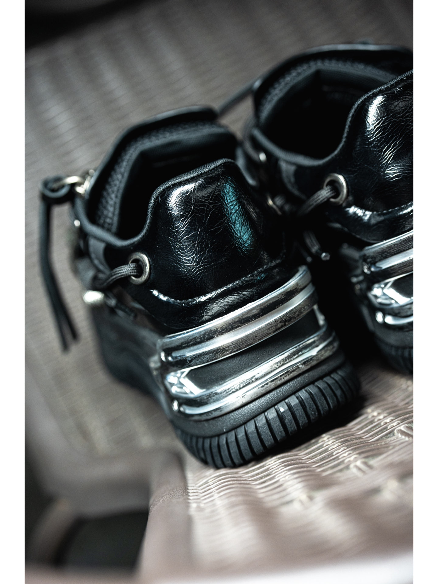 这双狂野分子家的深空黑鞋面采用黑色皮革打造,鞋面手工编制的鞋带和金属铆钉装饰很有视觉效果。 厚实的鞋底耐磨防滑的同时还有6cm增高效果,尺码方面不偏码按照平时的尺码选择就ok啦。#增高休闲鞋 !#新年买新鞋 #双旦出街穿这双 #增高厚底休闲老爹鞋 #推荐你的增高鞋