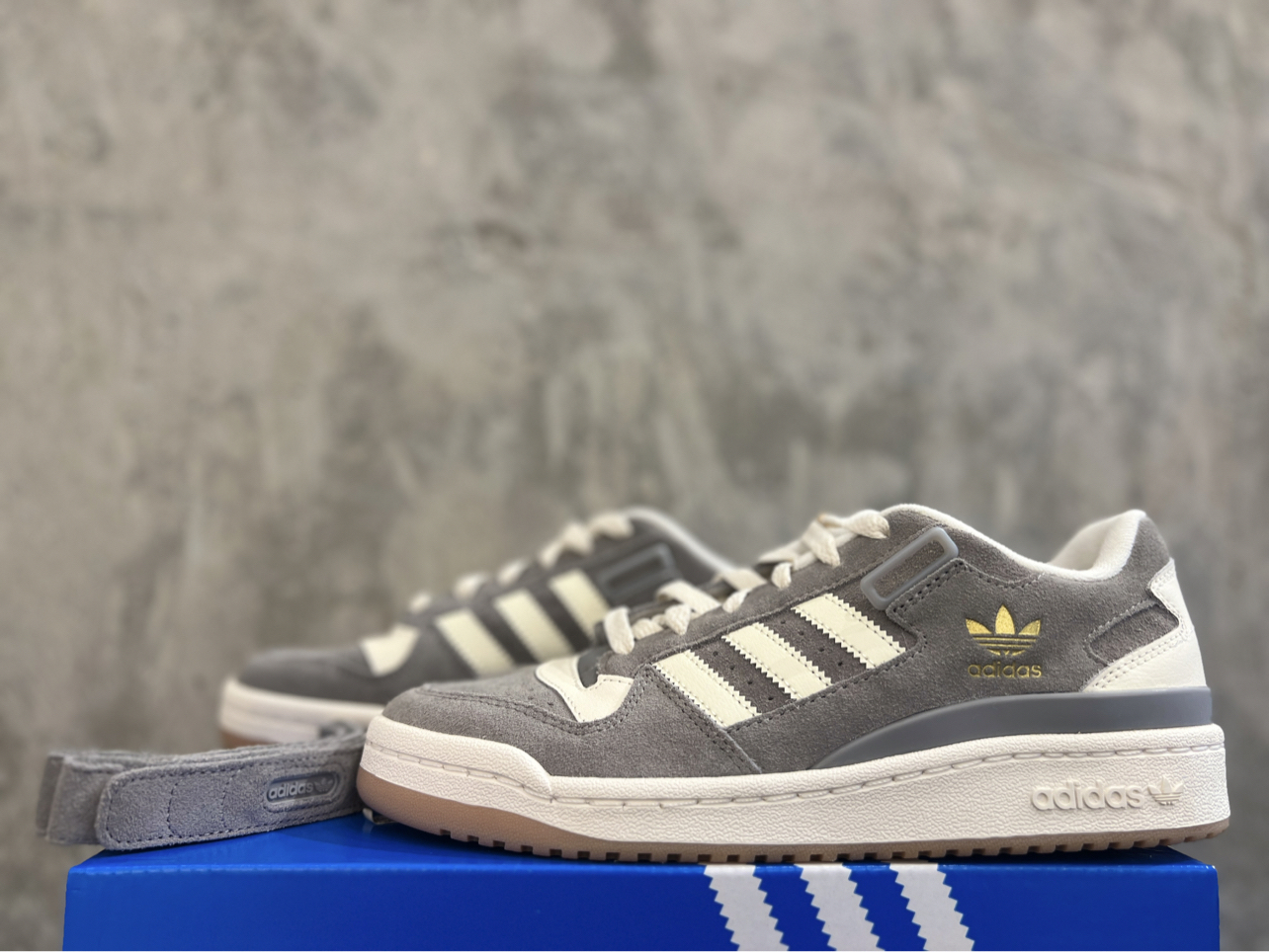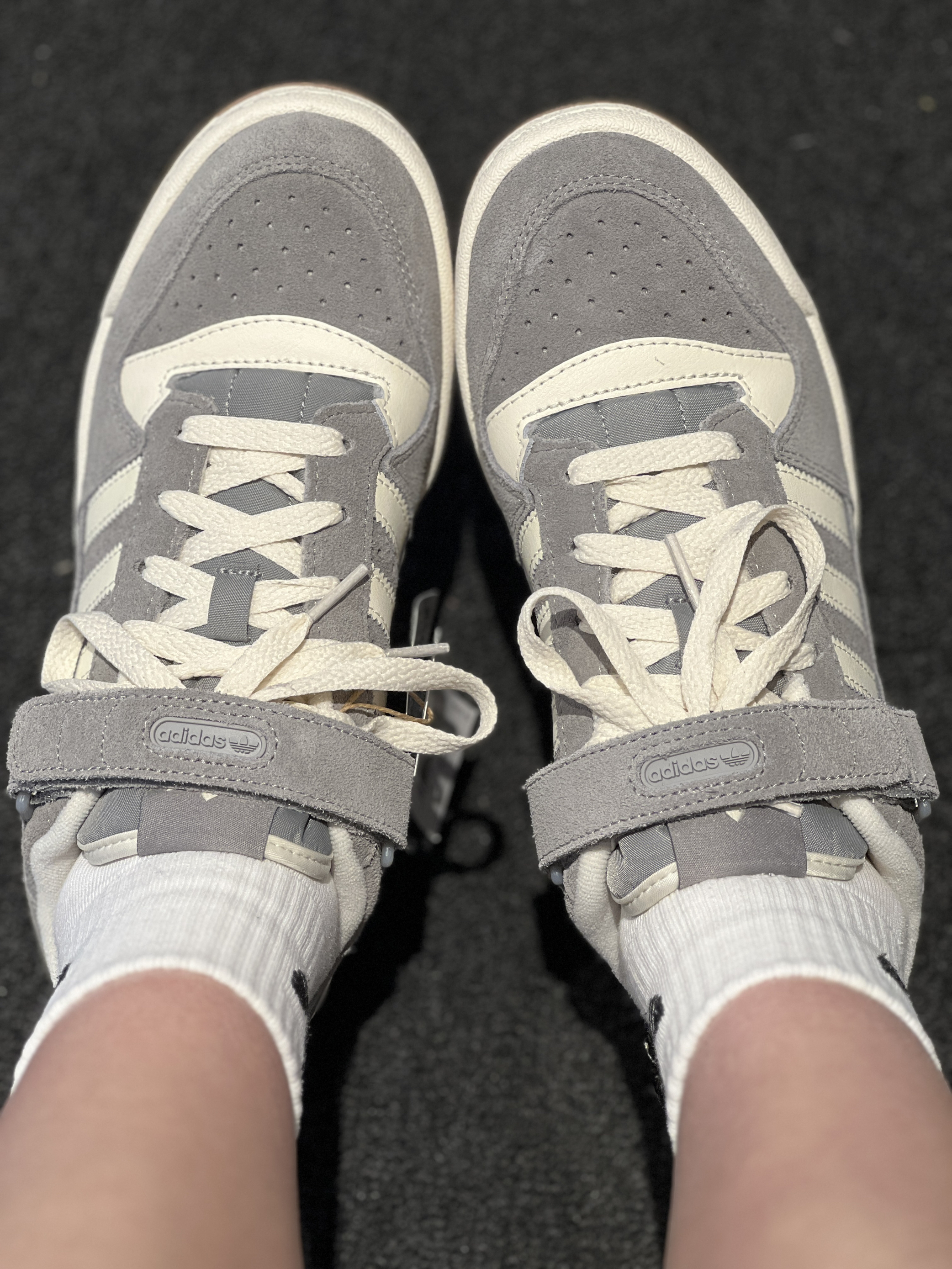 adidas originals Forum Low 👟:鞋面采用绒面革和涂层皮革,增加舒适感,灰白配色,简约大气有质感,鞋子侧面还加了金色三叶草Logo,增加复古时尚感这款经典鞋系带设计,同时还保留了Forum标志性踝部束带,不喜欢魔术贴的话,这款也是可以随时摘掉,没有魔术贴上脚也很好看哦😝
