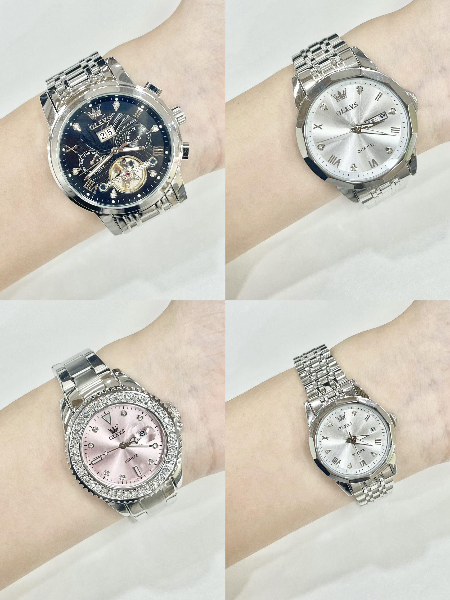 新年新气象 精心挑选了4款欧利时家的手表 当作新年礼物送给家人 每一款都是经典的款式 黑色机械表盘搭配着精钢材质的表带 敲有质感 粉色表盘带着银色钢带 尊嘟少女心满满 简约大气 还有防水功能 日常通勤上班外出都适合带~