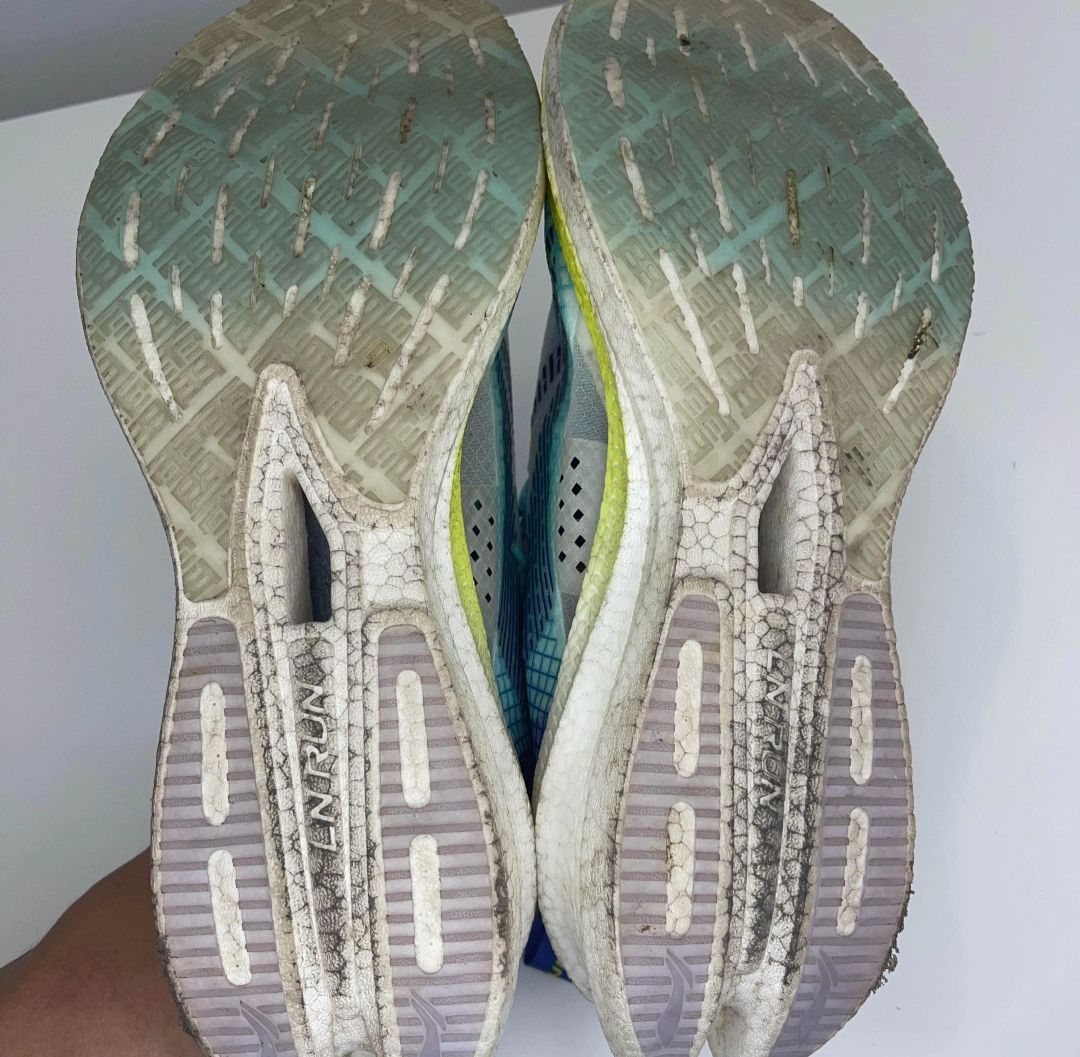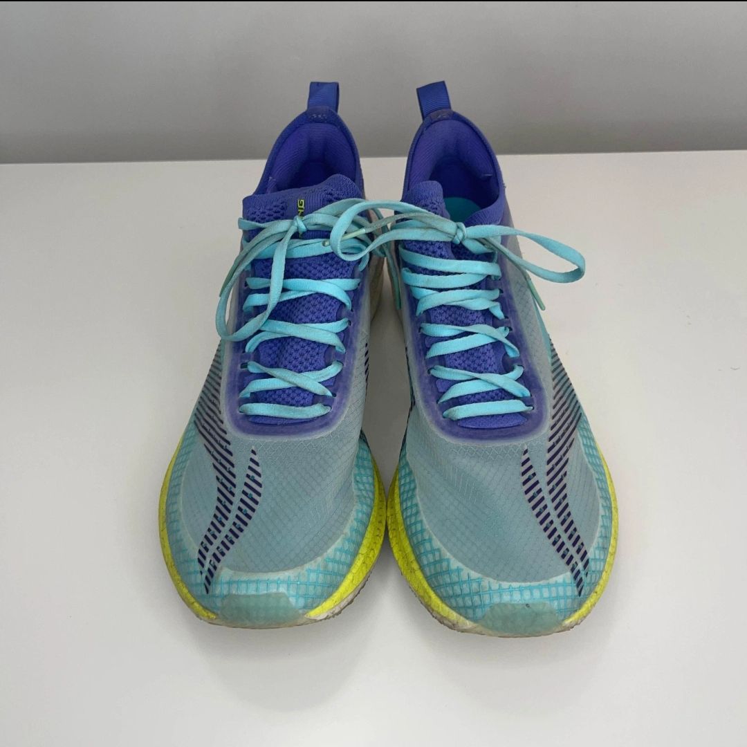 这双李宁的飞电2性能很强,较为激进,蓝色绿色的组合也很帅气,搭配3cm左右的䨻科技中底,脚感轻弹,趾枕科技很有亮点,断断续续穿了4个月左右,给大家分享一下穿着体验: 1️⃣优点 1,鞋面包裹感 鞋面mono纱材质很轻薄,贴合感很好且一体式鞋型,穿着舒适性很高,后跟填充相对比较饱满,脚踝处开口大小正好,拉紧鞋带后整体的包裹感和鞋脚一体性很棒,有氧跑、竞速跑都没有掉跟现象。 2,透气性体验 ...