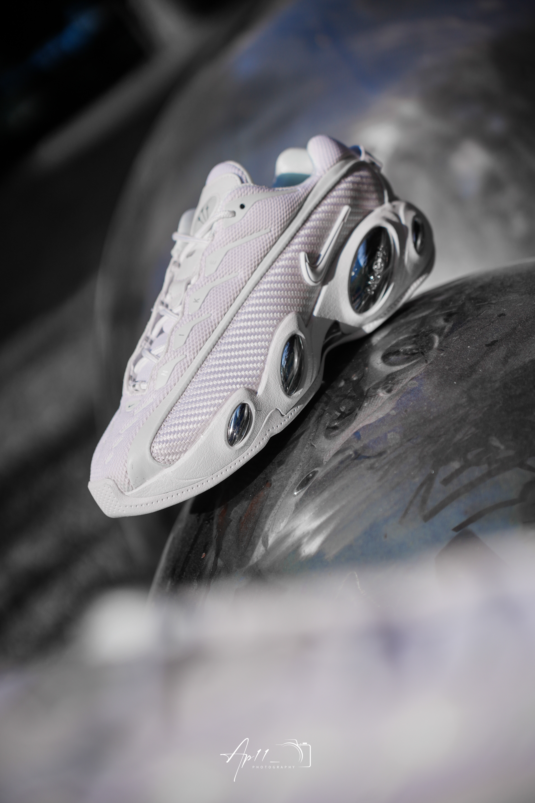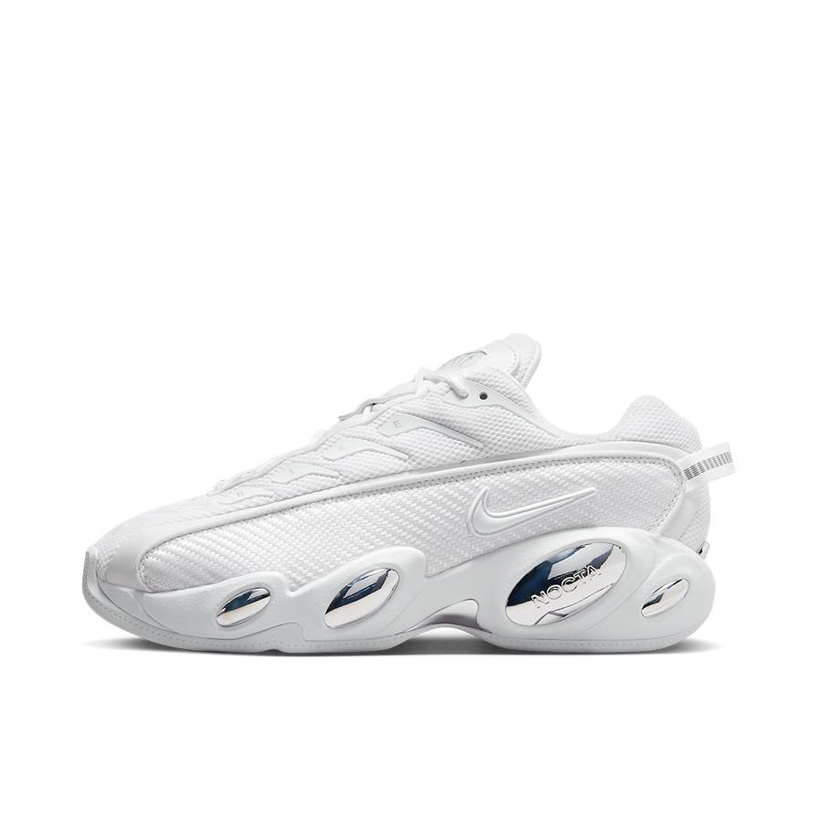 该款Drake x Nike NOCTA Glide整体鞋身以Nike经典的Air Zoom Flight '95为灵感,整体采用了织物与网眼材质拼接设计,整体极具流线型的设计十分超前。 配色方面也选用了纯白色打造,整体颜值十分清爽。上脚效果不用多说。鞋身轮廓部分还带有3M反光饰条,夜晚上脚也十分亮眼。鞋身最大的亮点是中底部分的椭圆形的「大眼睛」设计,并且采用了独特的电镀效果呈现,辨识度很高!