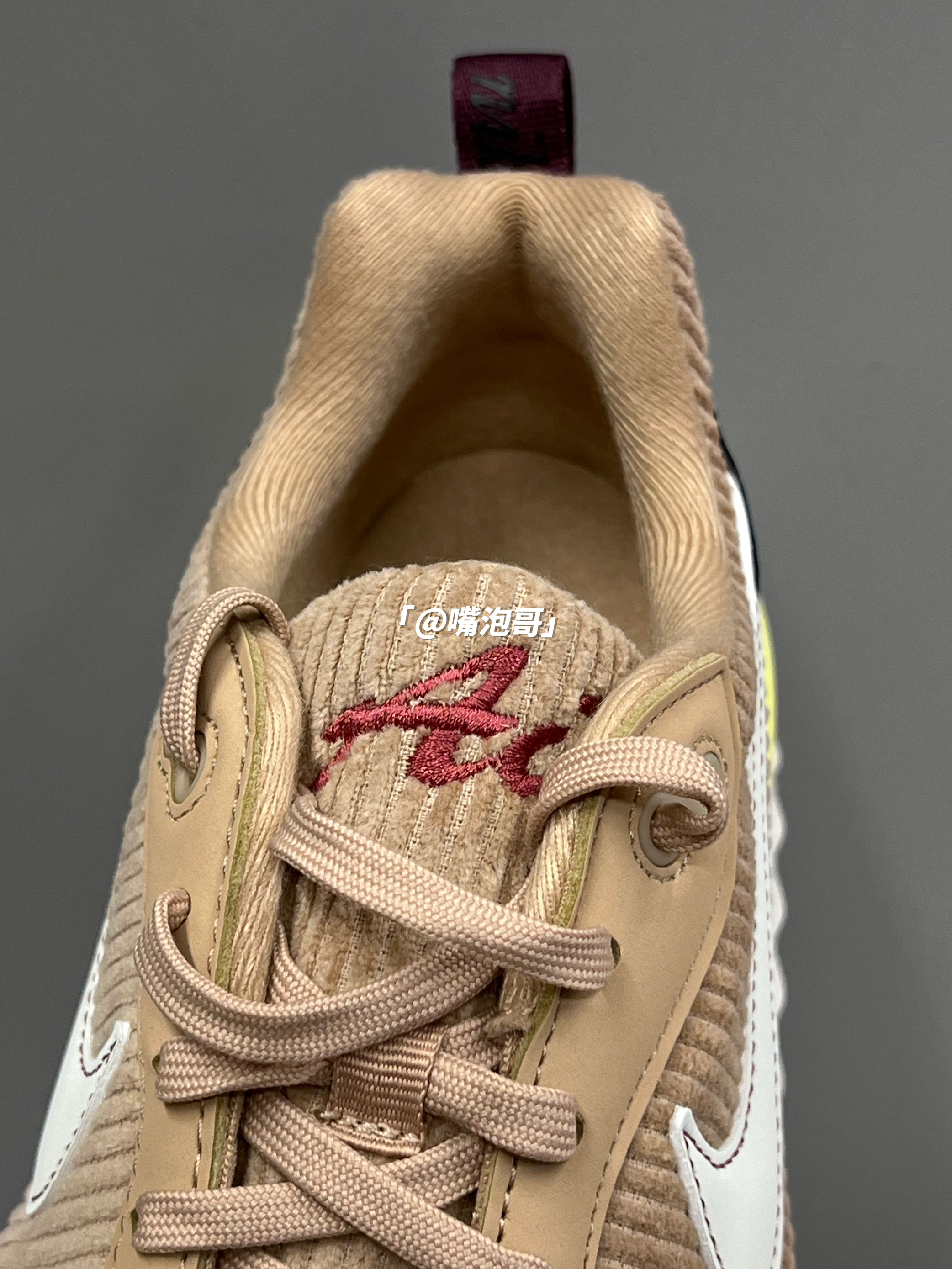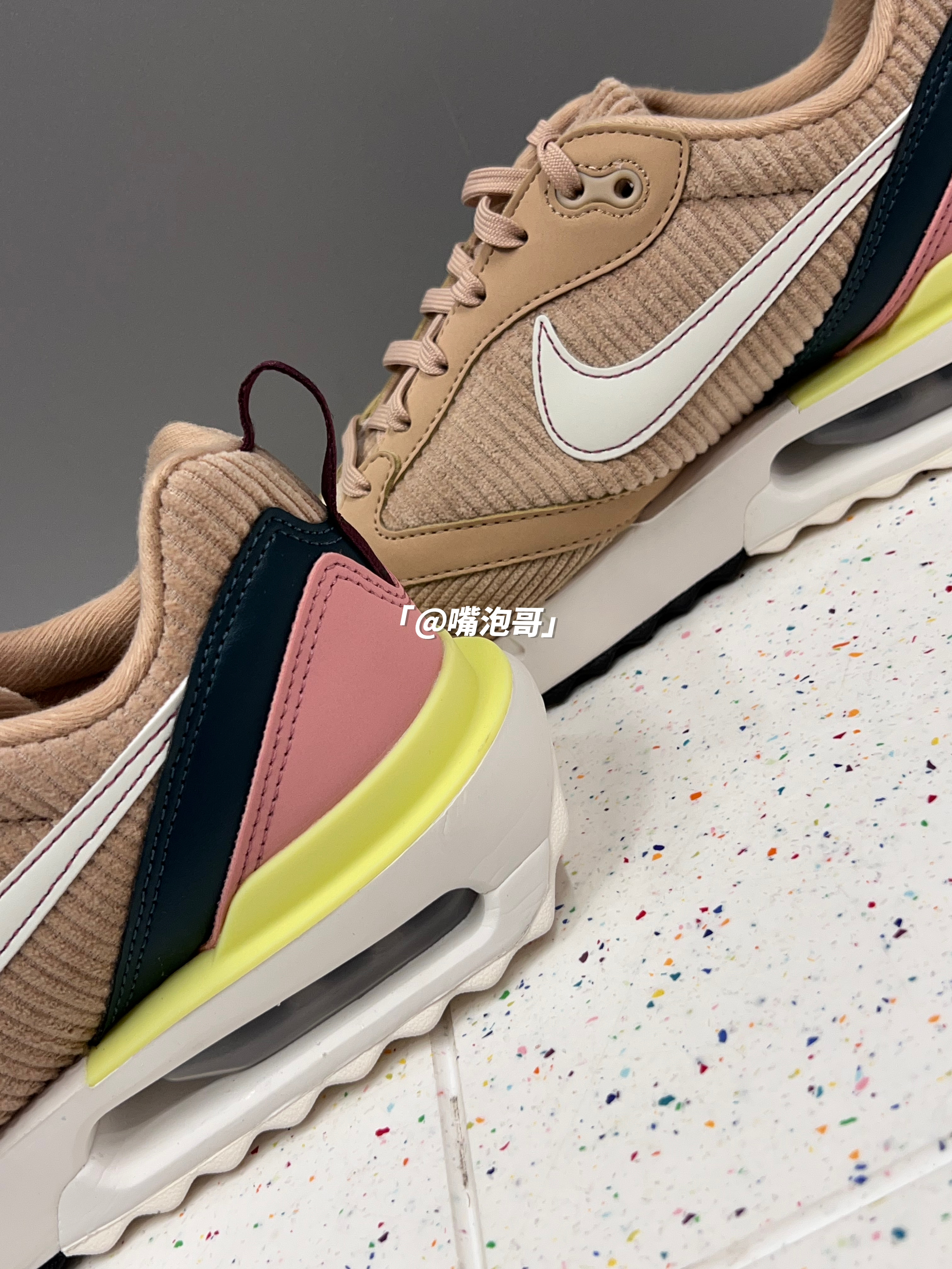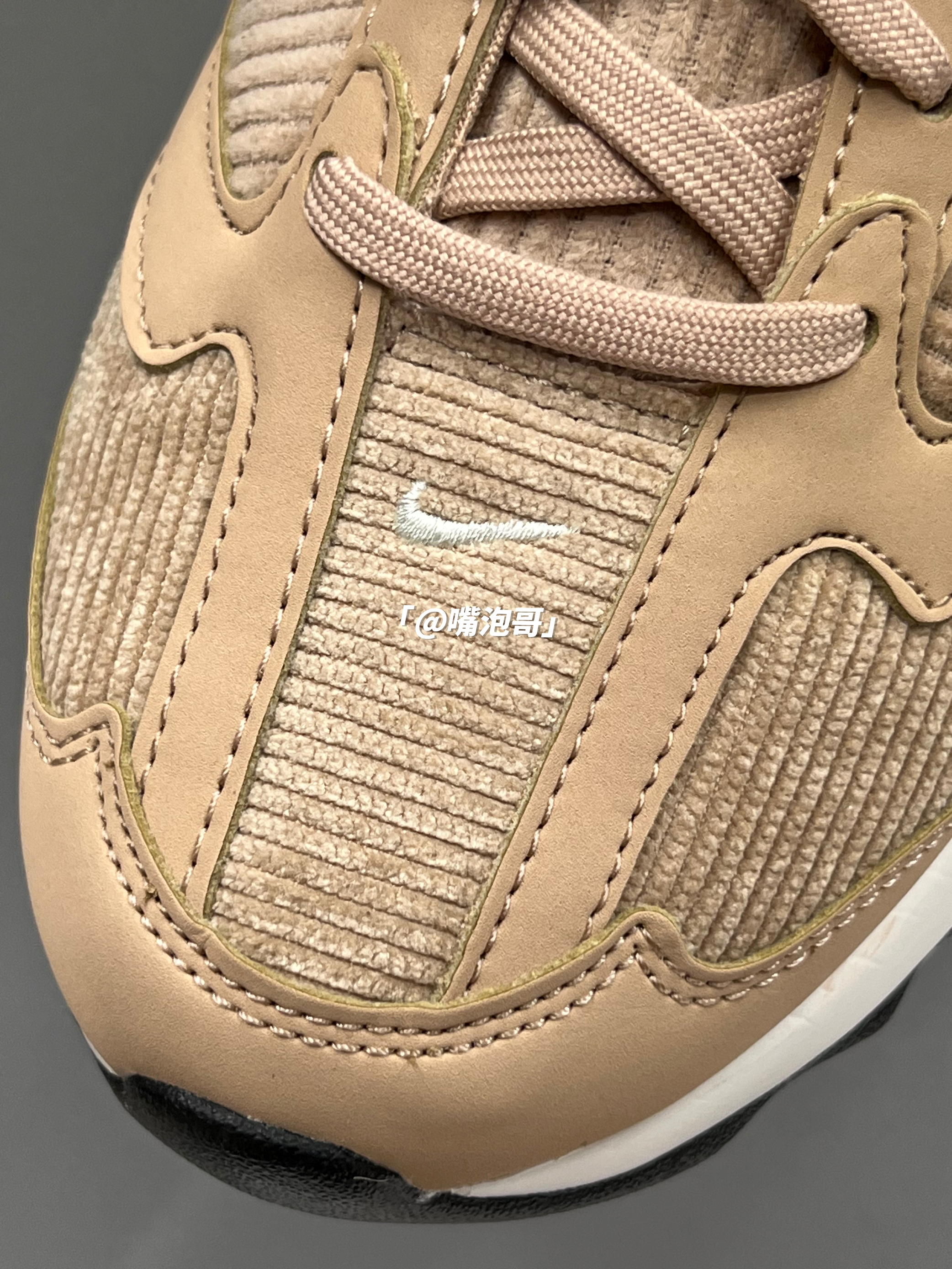 👟:Air Max Dawn 古铜色 简介: 鞋子是Air Max Dawn 系列的休闲鞋,整双鞋子选用了浅棕色作为主色调,还蛮适合冬季的美拉德穿搭,同时又加入了浅粉色与黑色装饰,增加了色彩层次,灯芯绒材料制作的鞋面很具有质感,搭配上中底双缓震中底,整体上脚有着良好的脚感。 细节: 鞋面、鞋舌都采用了具有质感的灯芯绒布打造而成,冬季穿有一定的保暖效果,鞋身两侧的swoosh选用了白色制...