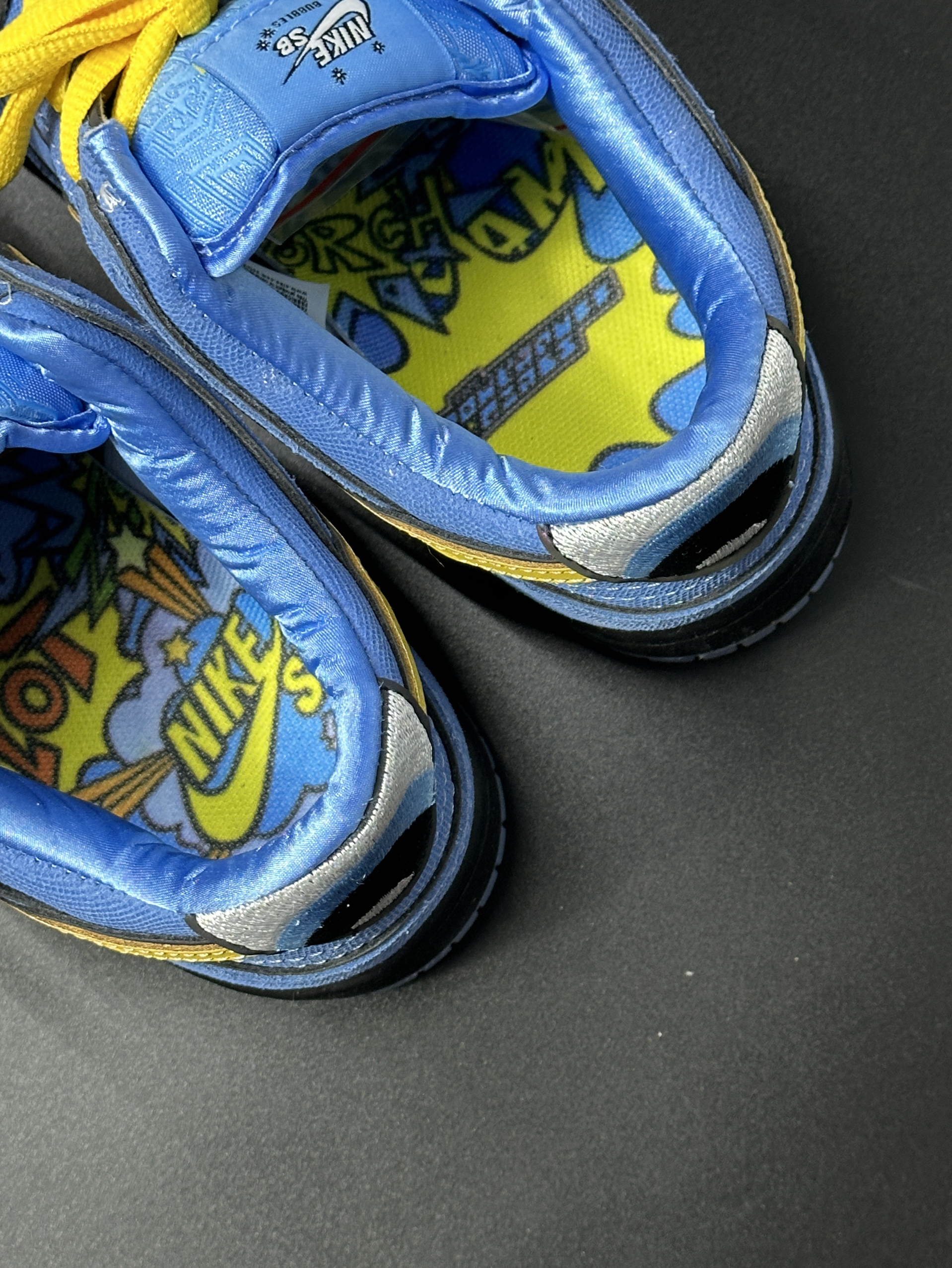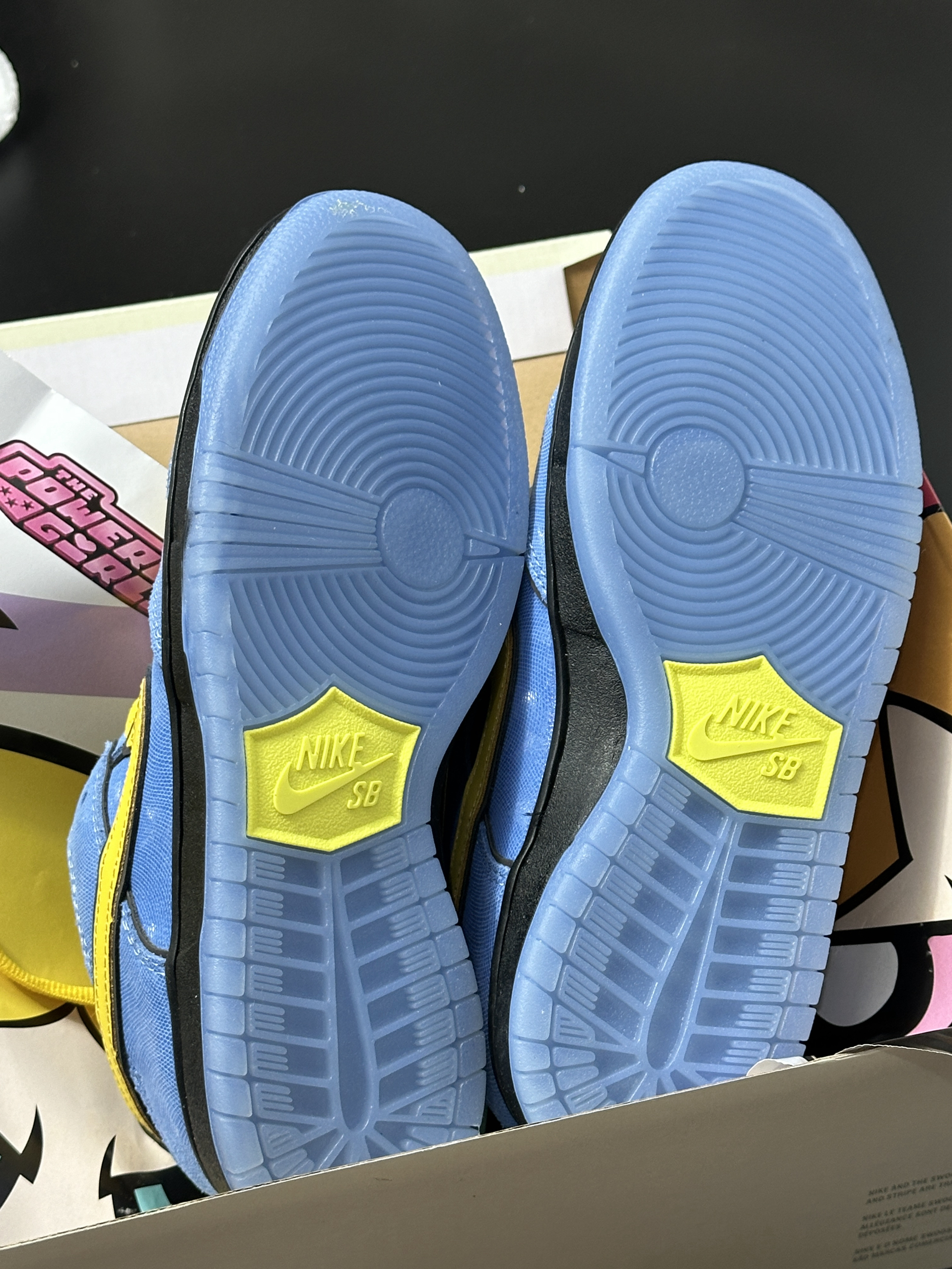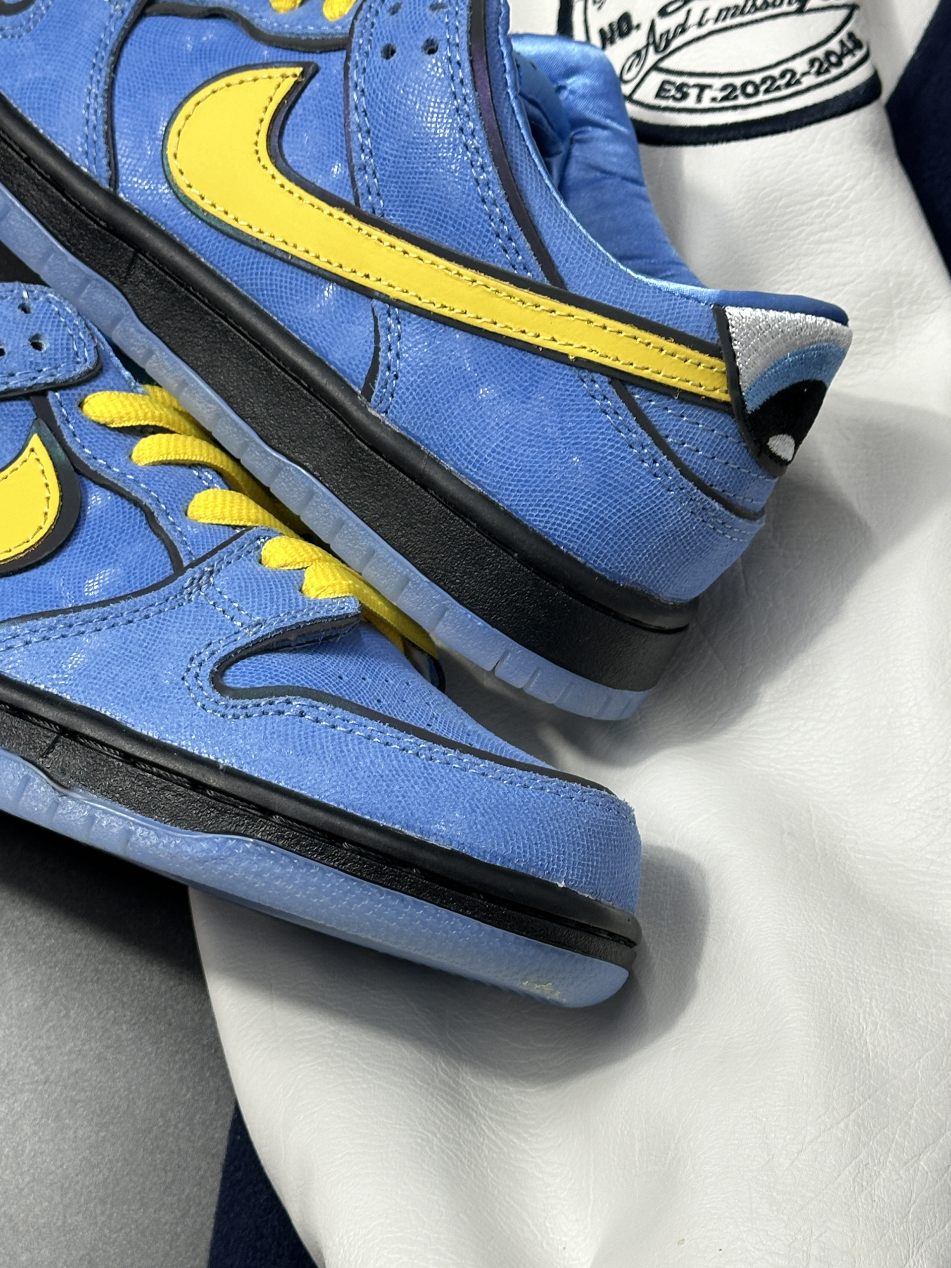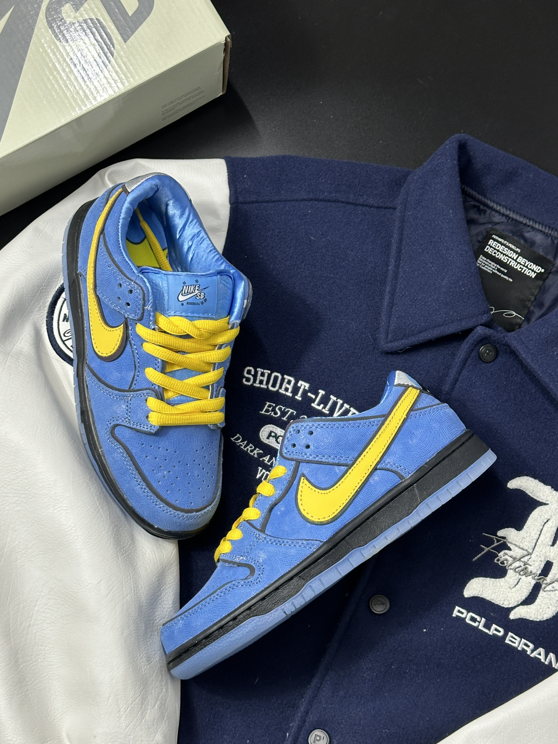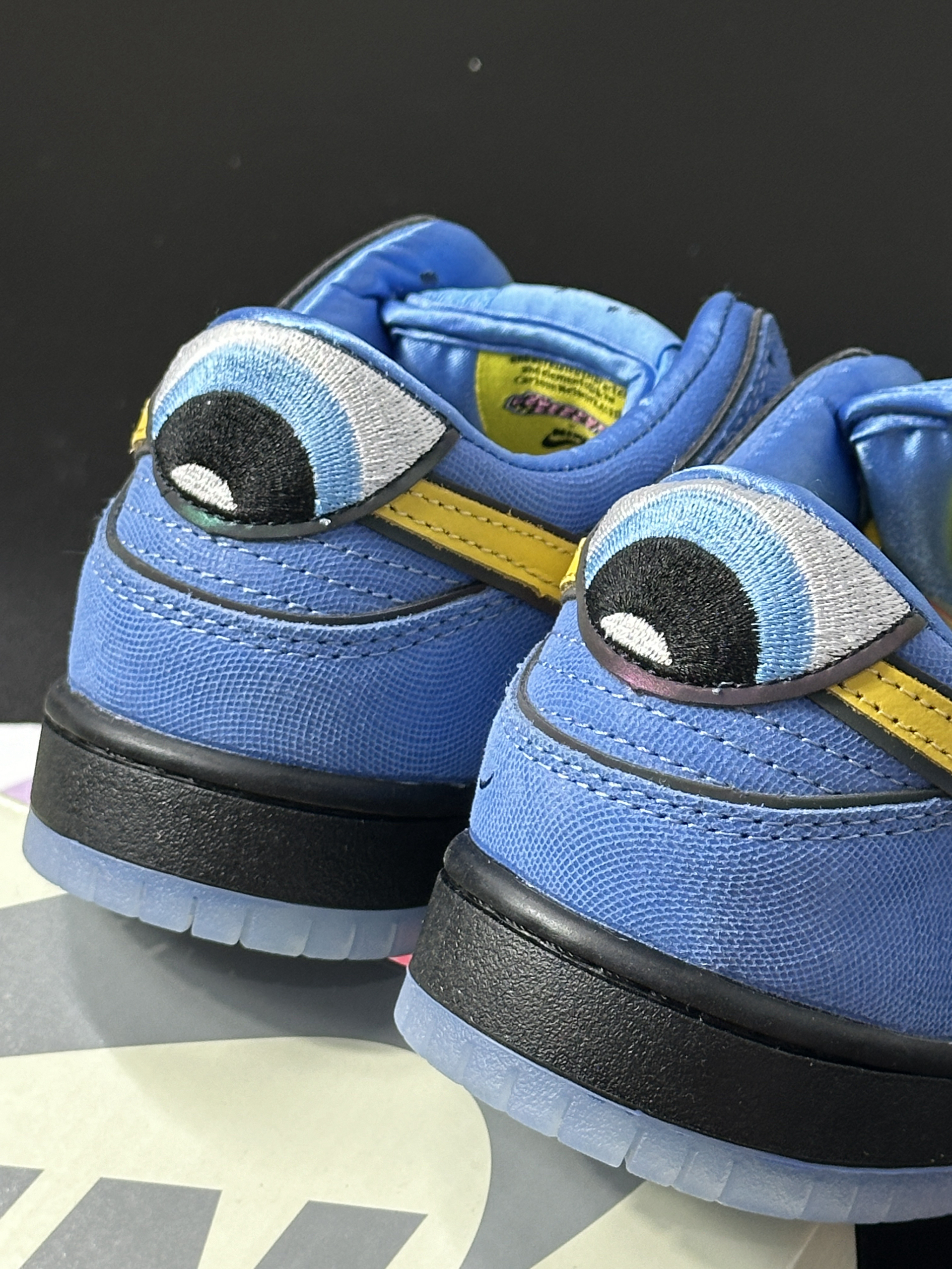 👟: dunk sb x 飞天小女警联名 没想到童年看到动画片竟然和nike联动了😳 这双鞋以动画片中的泡泡为灵感 鞋身采用亮眼的蓝色 搭配黄色swoosh和鞋带 整体颜色都非常充满活力💖 对于原动画中的很多细节都做了恰到好处的还原↪️ 先是鸳鸯鞋垫🫥 深度还原了动画中魔人啾啾 最具辨识度的后跟大眼 👀 此外还有鞋舌的“bubbles”英文 个人认为这次联名还是相当用心的 细节非常到位 其...