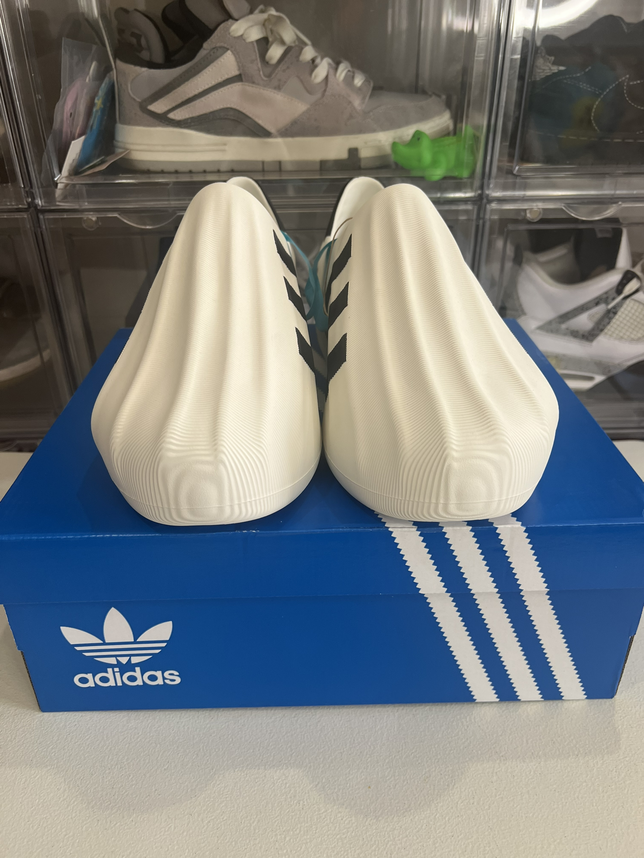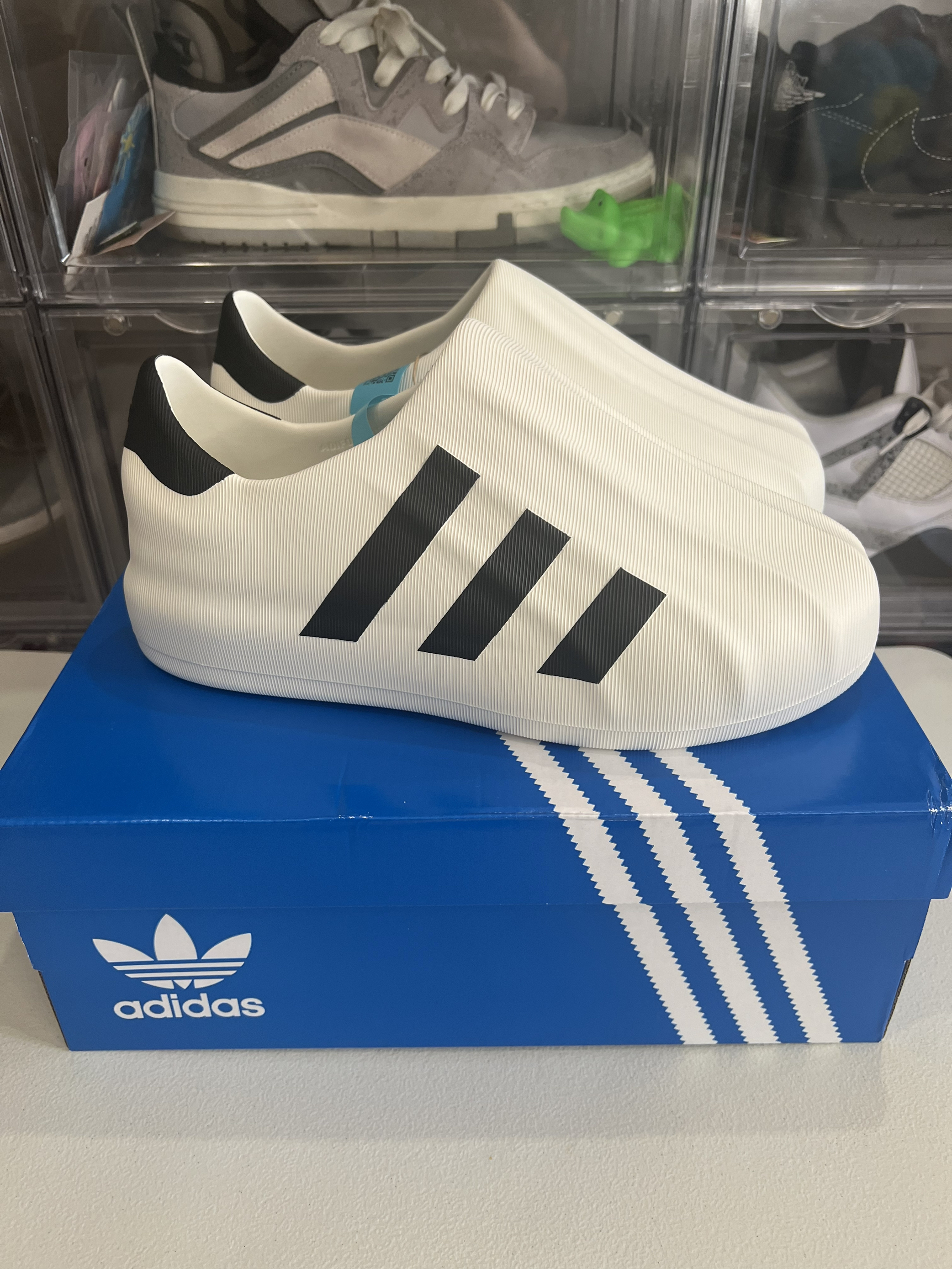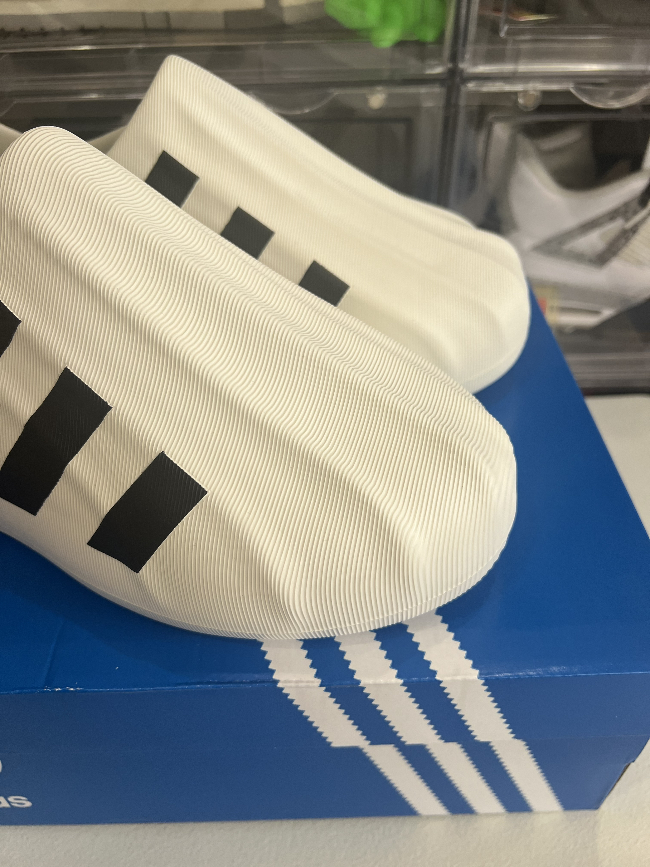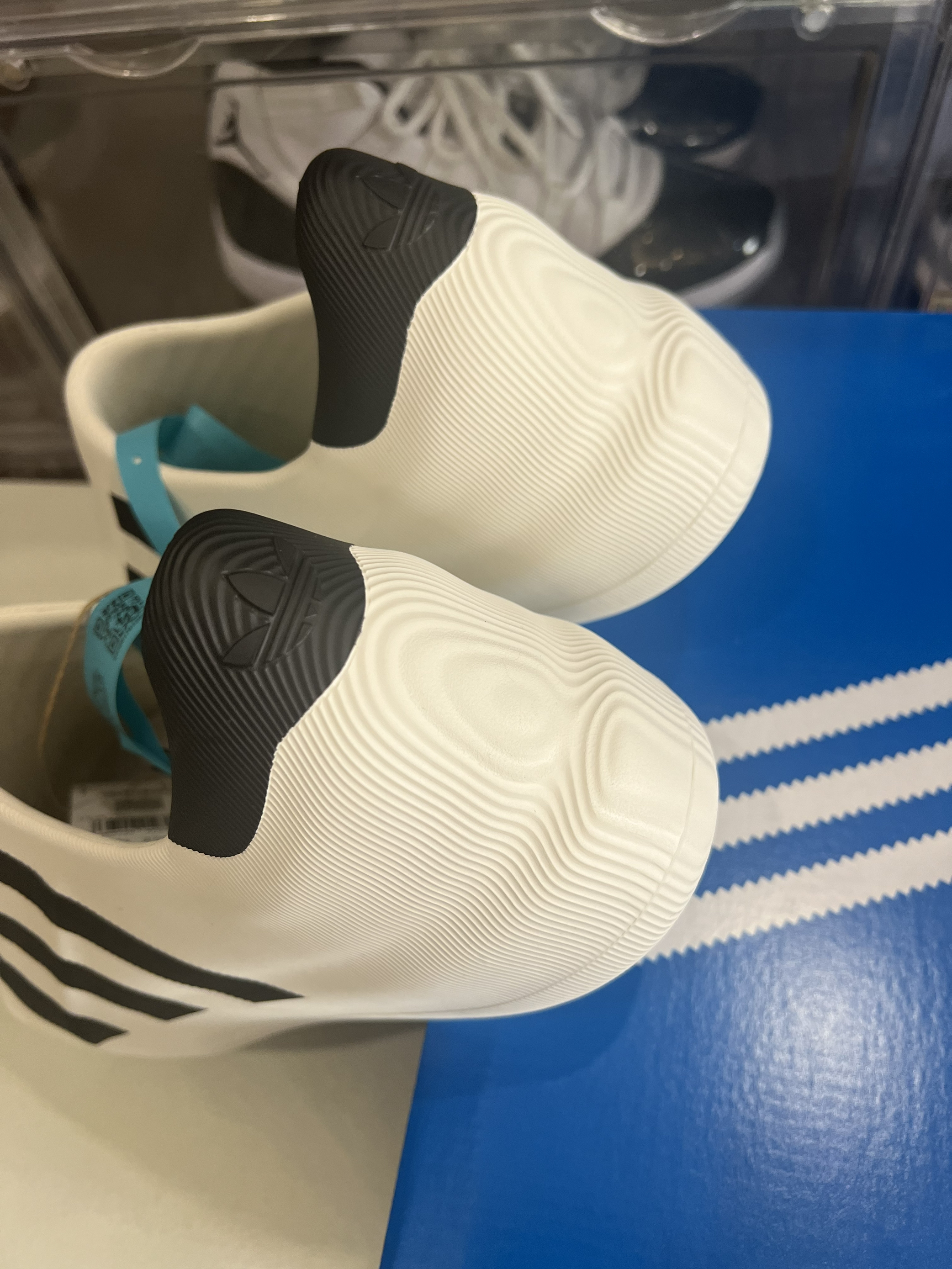 👟采用一体成型发泡材质 整体鞋子很轻 Superstar 经典的贝壳头设计 立体感十足 😇😇😇还搭配线条纹路 质感非常强 鞋头及后跟波纹散开纹路非常梦幻 鞋侧经典的三道杠元素 🥳🥳品牌辨识度很高 三厘米的增高还配了一个鞋垫 保证了舒适性 是一个偏韧的脚感 当然我们也可以取出鞋垫 这样我们就得到了一双雨鞋 因为一体成型的设计 透气方面只在鞋侧留了两个透气孔 日常长时间走路有点闷脚 😆😆😆鞋底纹路偏...