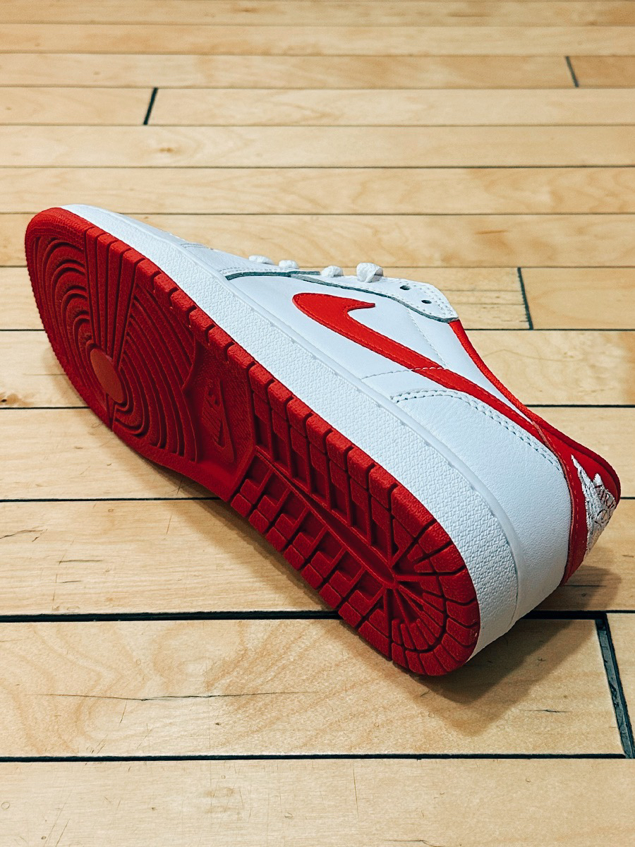 到手我就感觉到,这一定会成为我的搭配常用鞋🥹 👉🏻这款AJ1 low OG 白红版的低帮板鞋真的是完全不会看腻的款!整体是白色为主加上红色点缀,简约又不失独特感,OG的鞋型贼经典🥰 后跟的刺绣小飞翼也增加了很多精致感,穿上就是帅气又时尚,一双就能搞定所有的搭配需求,绝绝子💕 ✨鞋面采用了软皮+荔枝皮组合制成,摸起来柔软细腻,高级感满满,相比高帮鞋,低帮更加修饰腿型显身高,白色中底和红色橡胶大底...