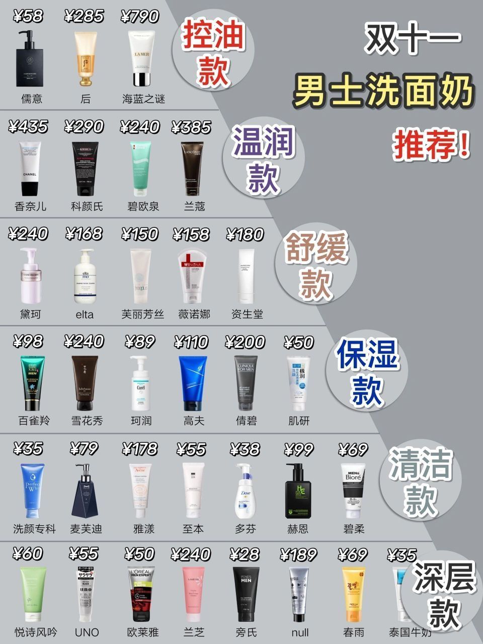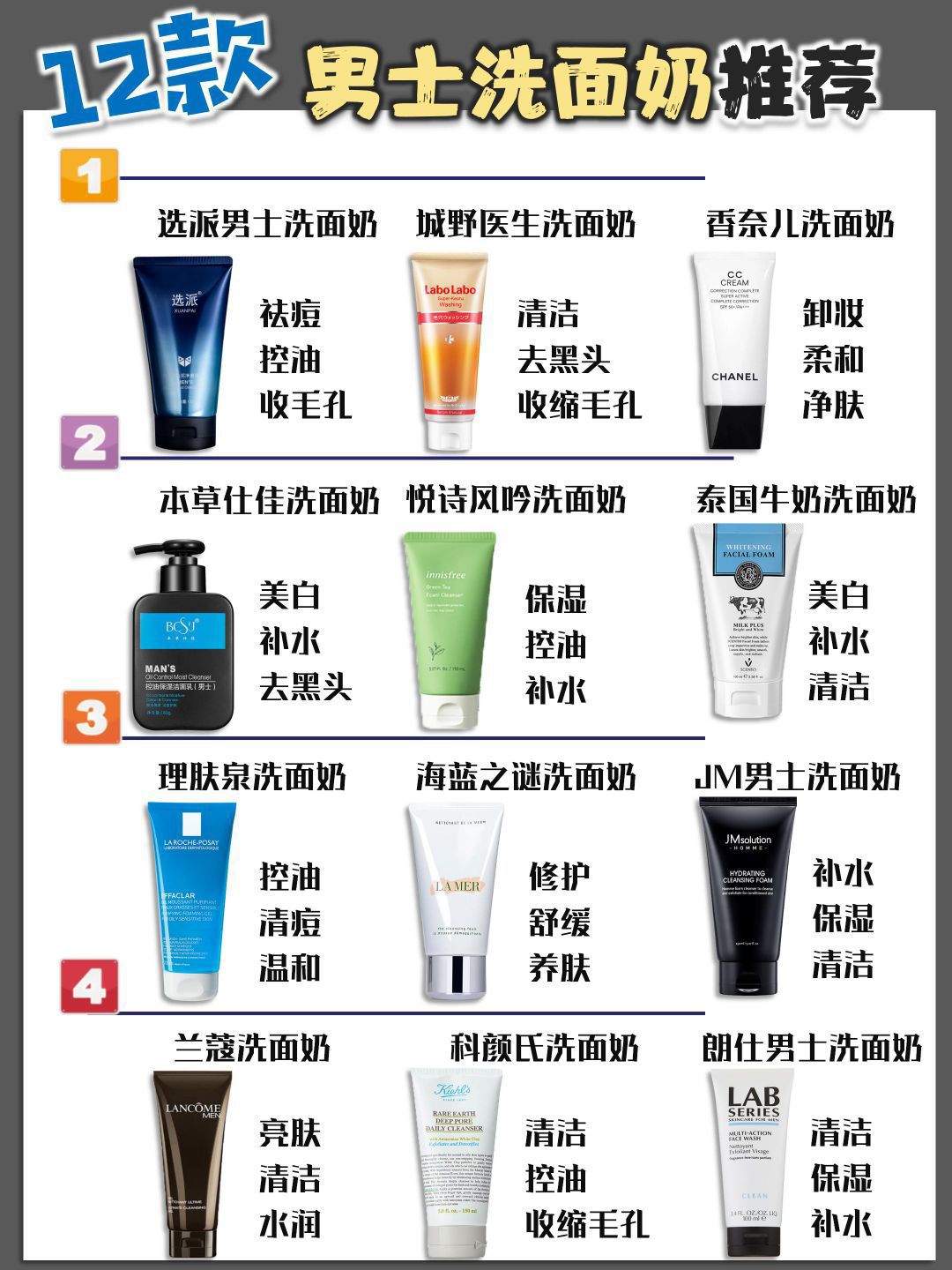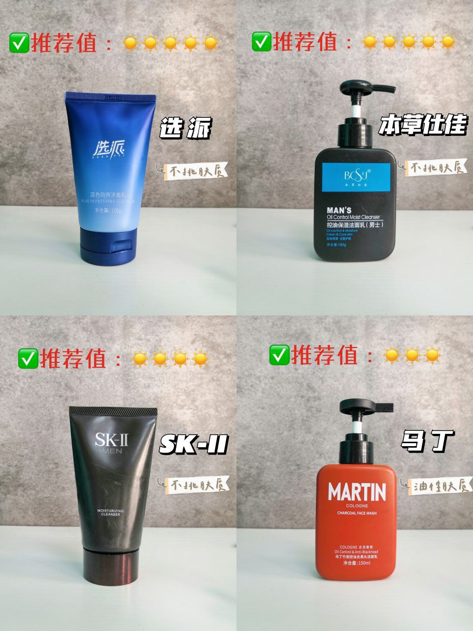 选对不做冤大头!男士洗面奶怎么选真的悟了!|||现在夏天到了!脸上出油很多! 所以啊,选对适合的男士洗面奶很重要 所以整理了一下之前的热门洗面奶 简单的分享推荐一下,不知道怎么选的来抄作业! - 他秘洗面奶 油痘肌的别犹豫!坚持洗洗还可以去痘,有段时间天天洗,出门一点油腻都没有 - snns男士洗面奶 混油脸上T区很油的,膏体很容易起泡,洗完脸上清清爽爽的也不紧绷拔干 - 芙丽芳丝洗面奶 不得不说...