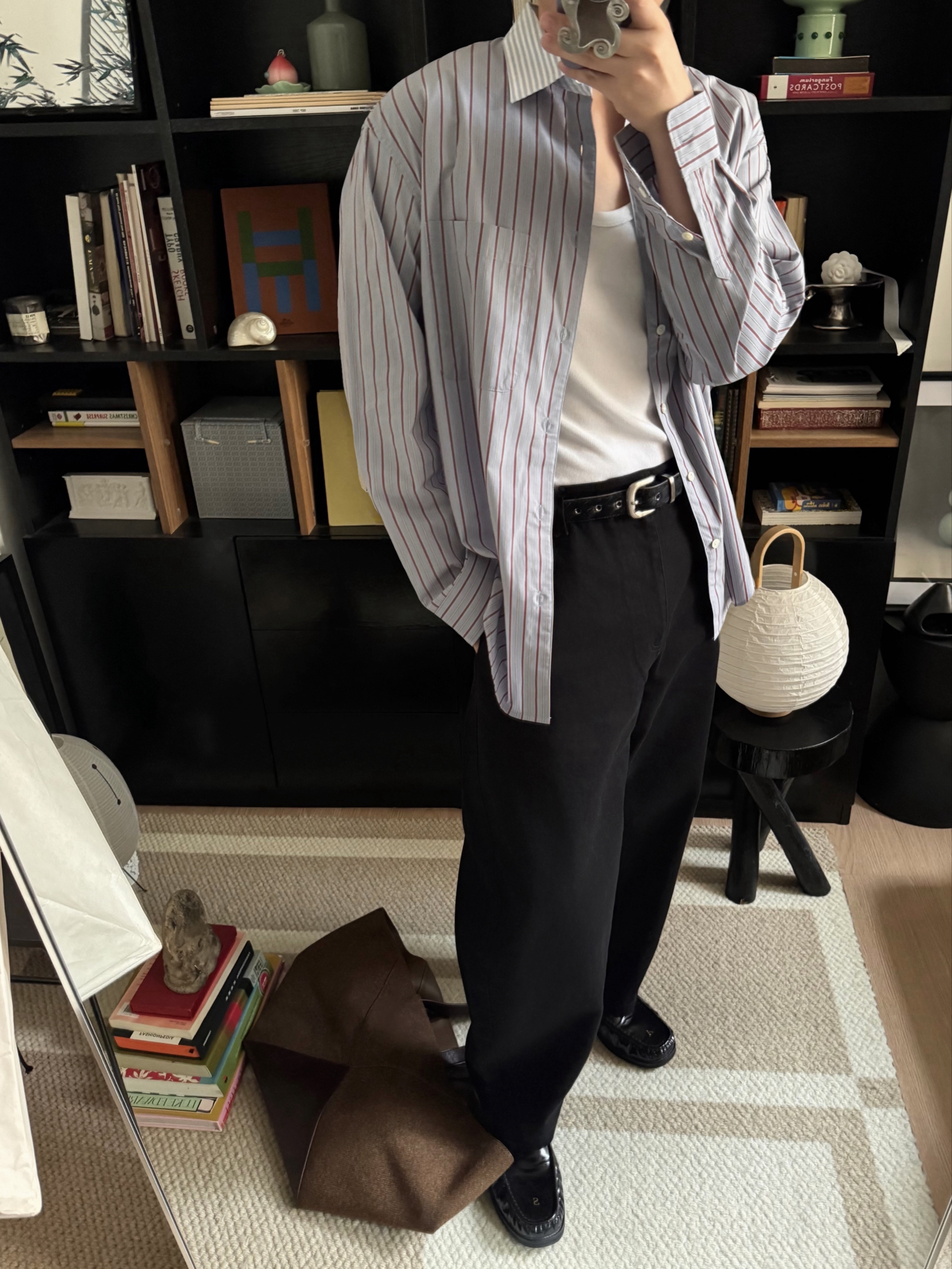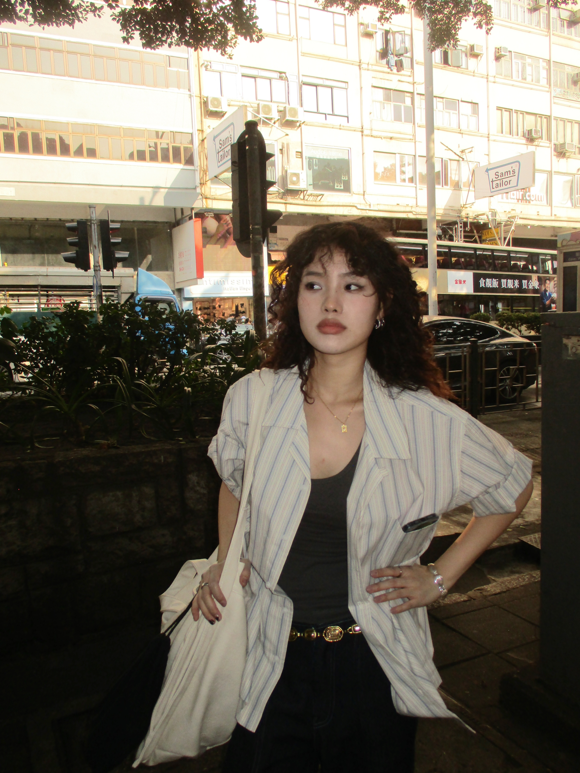 衣服:Liberty Kostume 神仙配色长袖尖领条纹衬衫