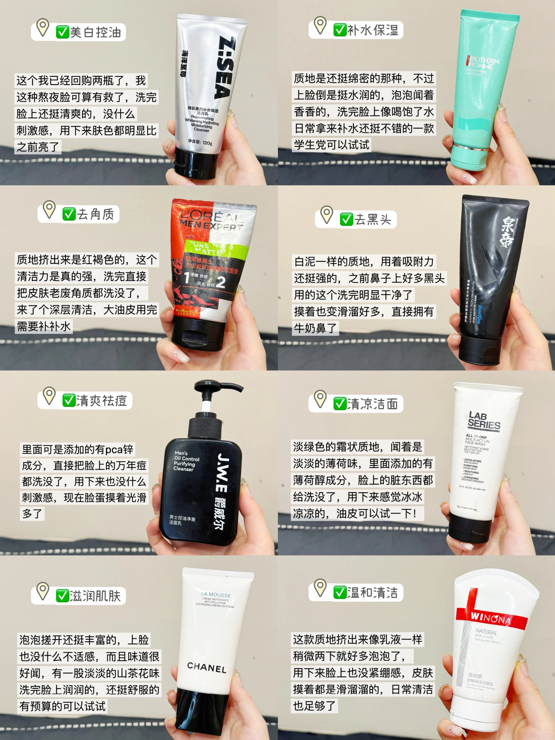 不得不说不管是干皮还是油皮肤质,夏天用对洗面奶太重要了! 这几个主打的就是一个好用!性价比学生党毫无负担 还不会选洗面奶的兄弟杯可以直接抄作业哇 他秘无患子洗面奶 油痘肌可以放心入的一款,白色膏体很好起泡,控油的同时还能减少痘痘和黑头,洗完也不拔干! snns男士洗面奶 对暗沉、混油皮很友好,可以用它平衡水油很可以,肤感也很舒服!洗完不紧绷,还有提亮的效果 碧欧泉洗面奶 闻起来有淡淡的香味,戳出来...