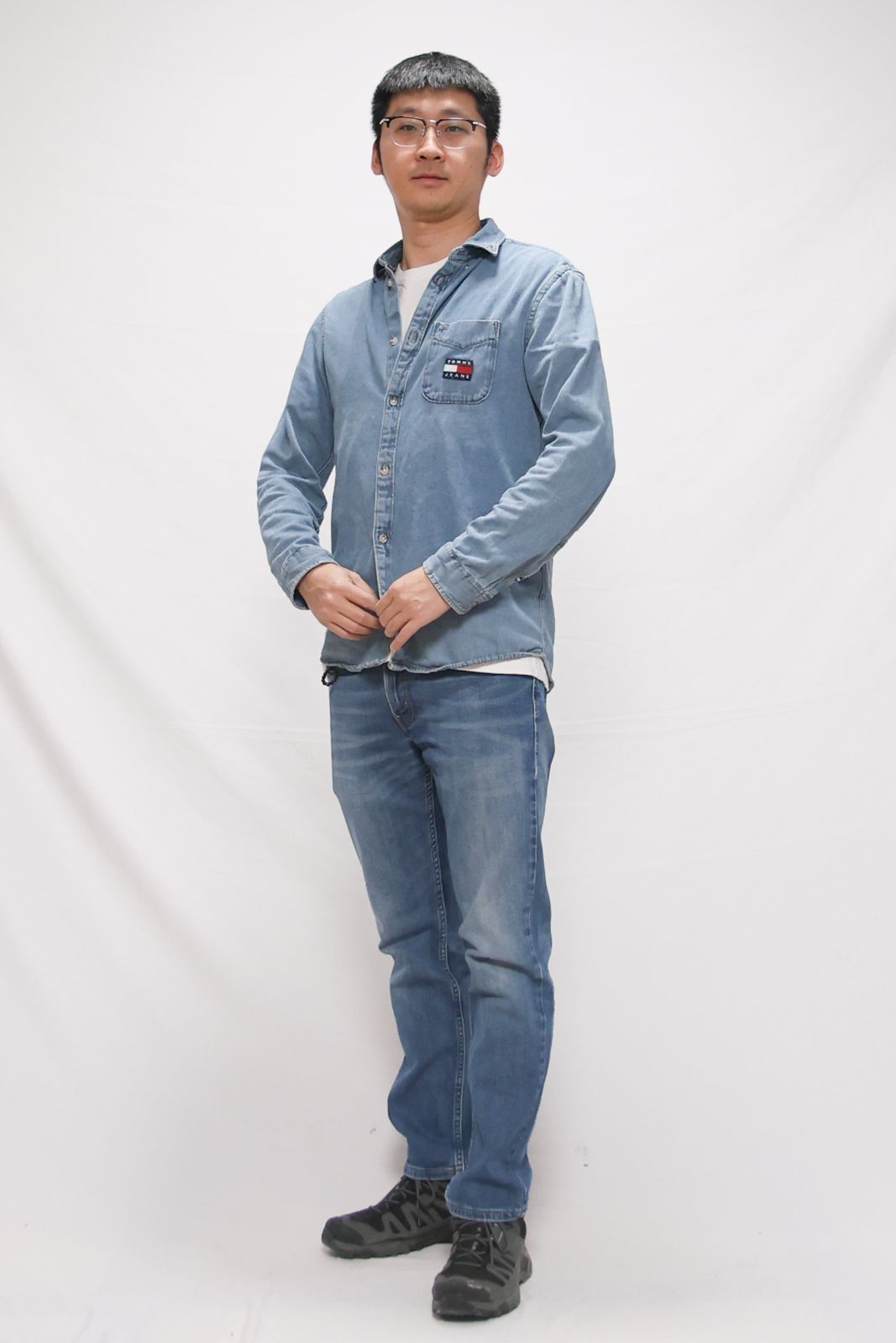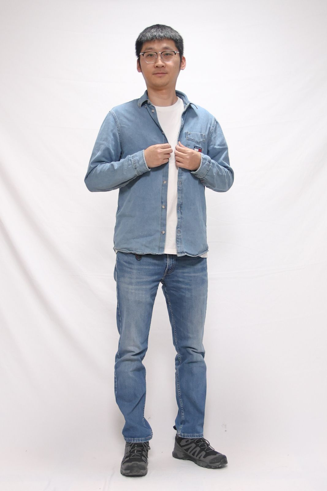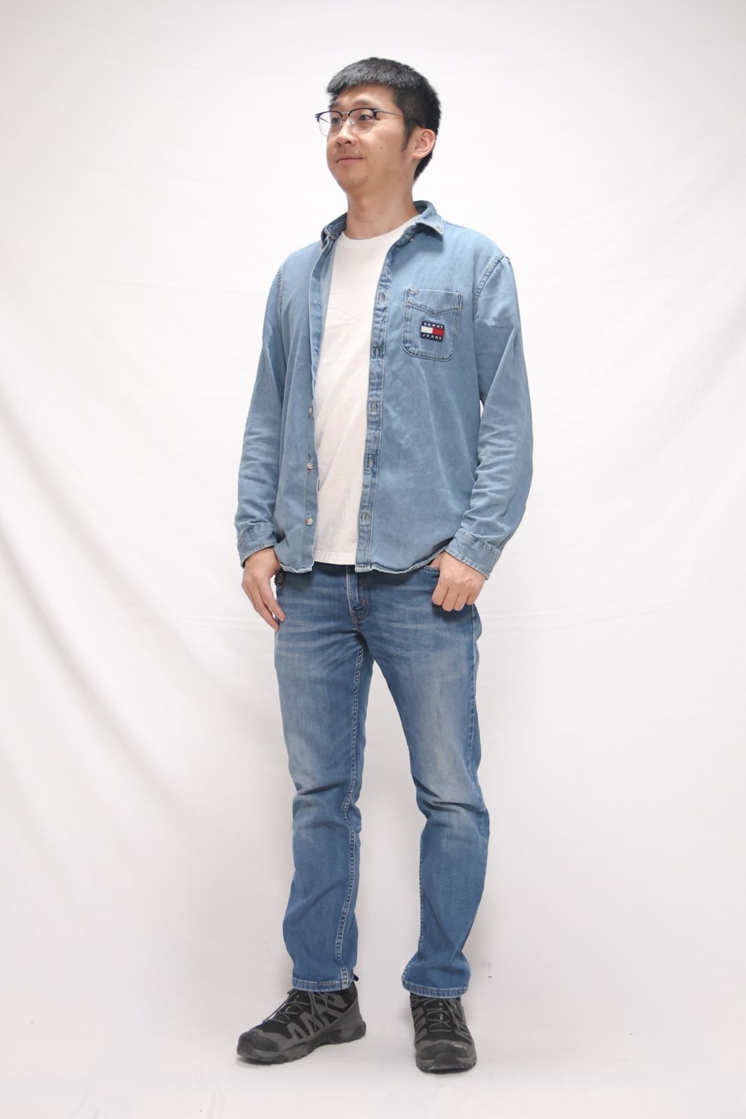 大家好,跃哥给大家分享一身 休闲的轻户外穿搭!🏀 一身牛仔色,还是很显年轻的, 牛仔服的定义之一,🚴♂️ 我觉得就是耐磨抗造! 所以用来当工装,去户外, 我觉得都没问题!⛷️ 上衣:#Tommy Hilfiger 牛仔衬衫 裤子:#Levis 501经典牛仔裤 鞋子:#SALOMON 高帮户外鞋
