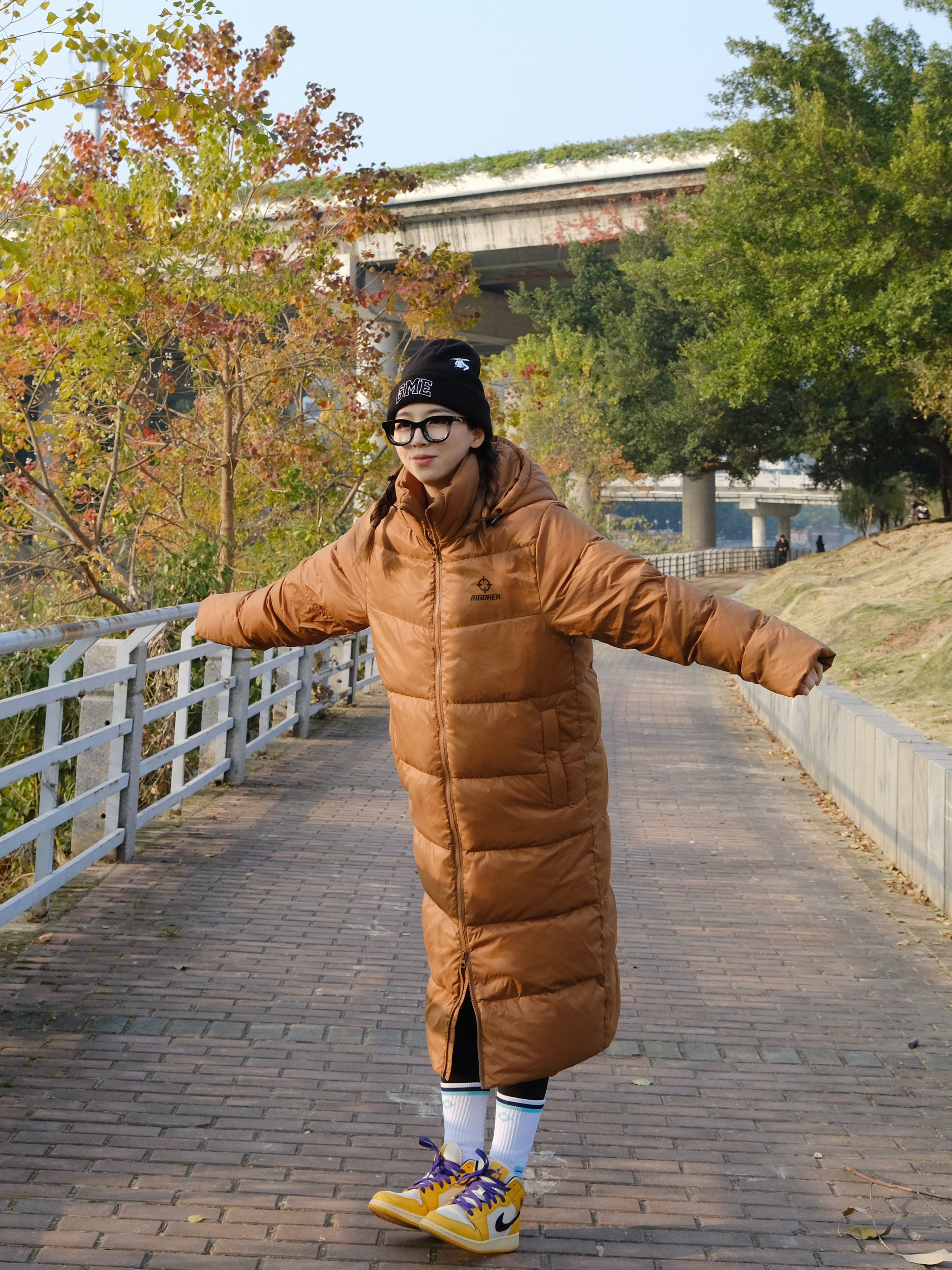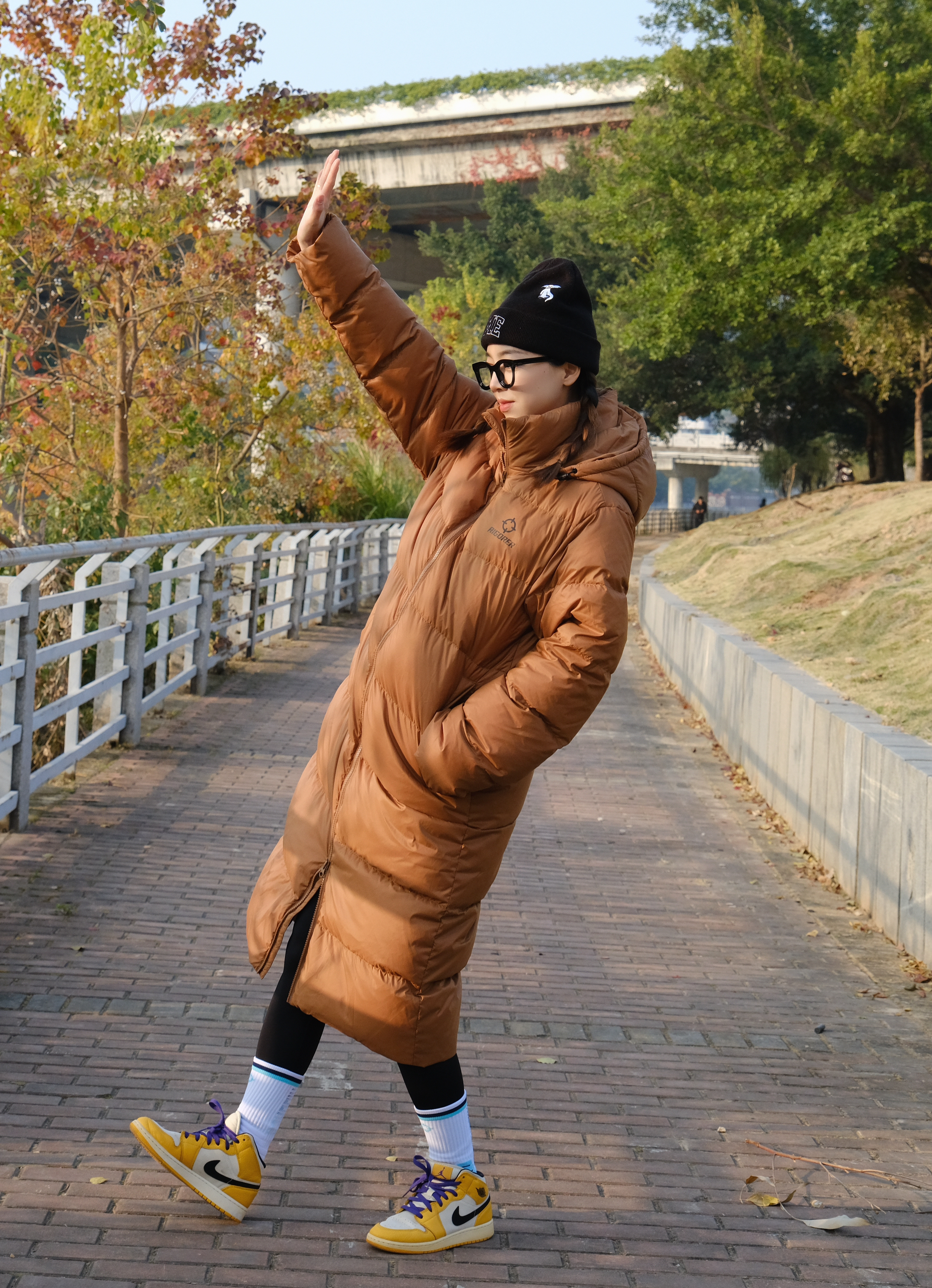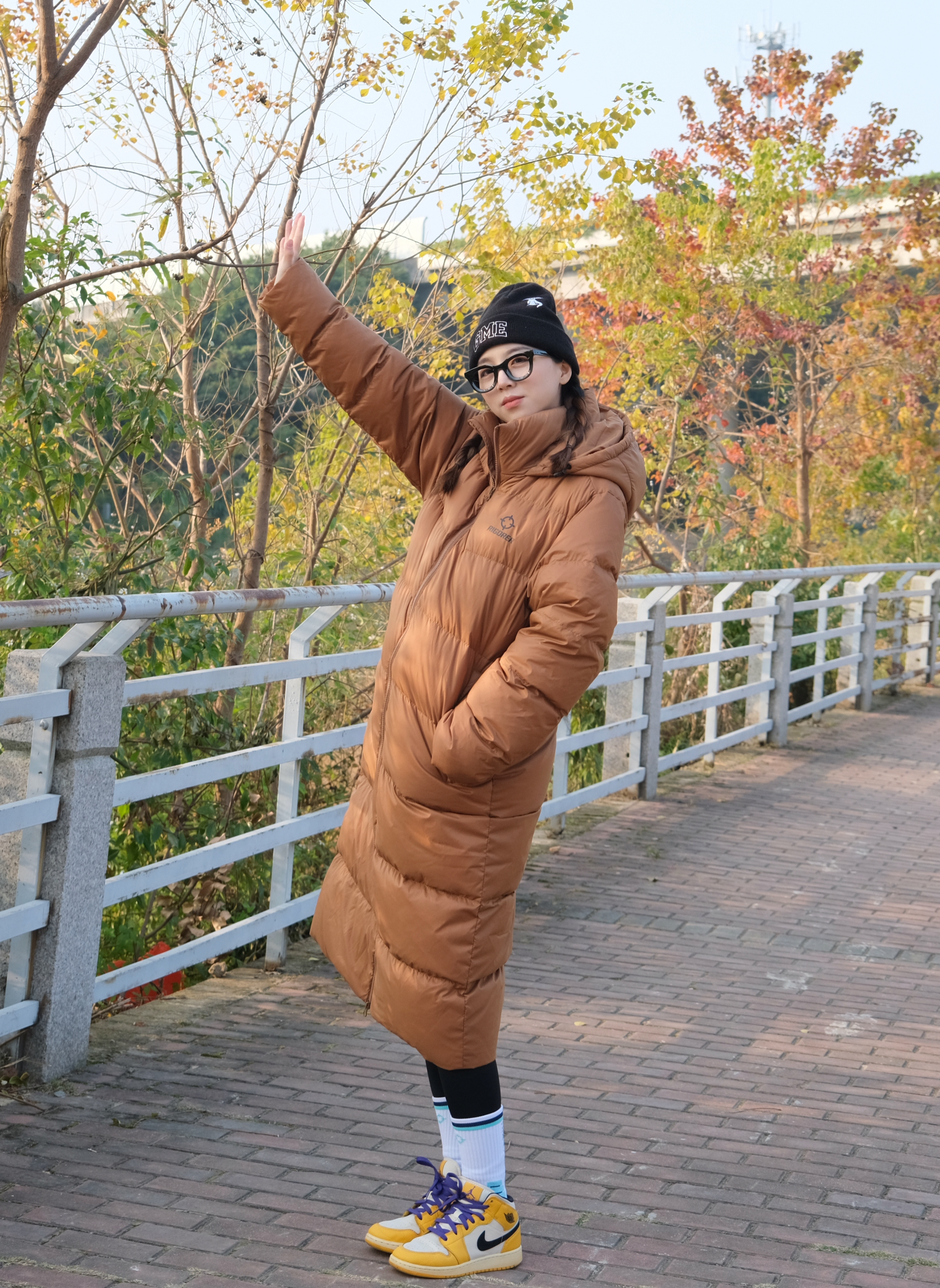 👧:168/48 衣服:L 今日零下穿搭指南: 长款羽绒服+瑜伽裤+aj1 - 咱就是说走南闯北怎么可以少了加厚羽绒服内 咖色的羽绒服深得俺心~像极了南方小土豆 被包裹着的快乐! - 瑜伽裤可以说是搭配长款羽绒服的最佳单品啦 保暖显瘦第一名! - 鞋子搭配了湖人配色的aj1 和这一套好搭耶! 再搭配上黑色冷帽,这一套好爱❤️