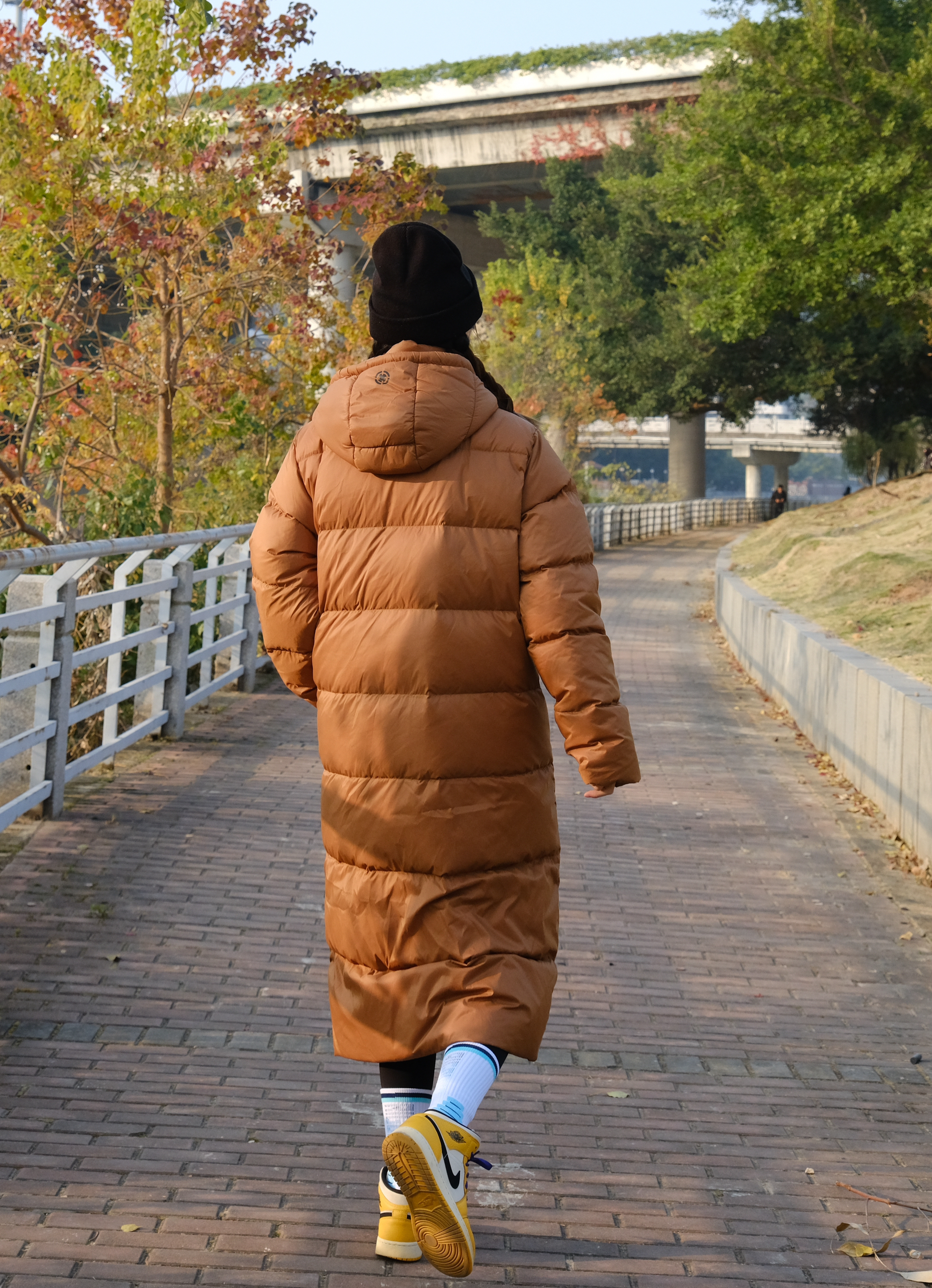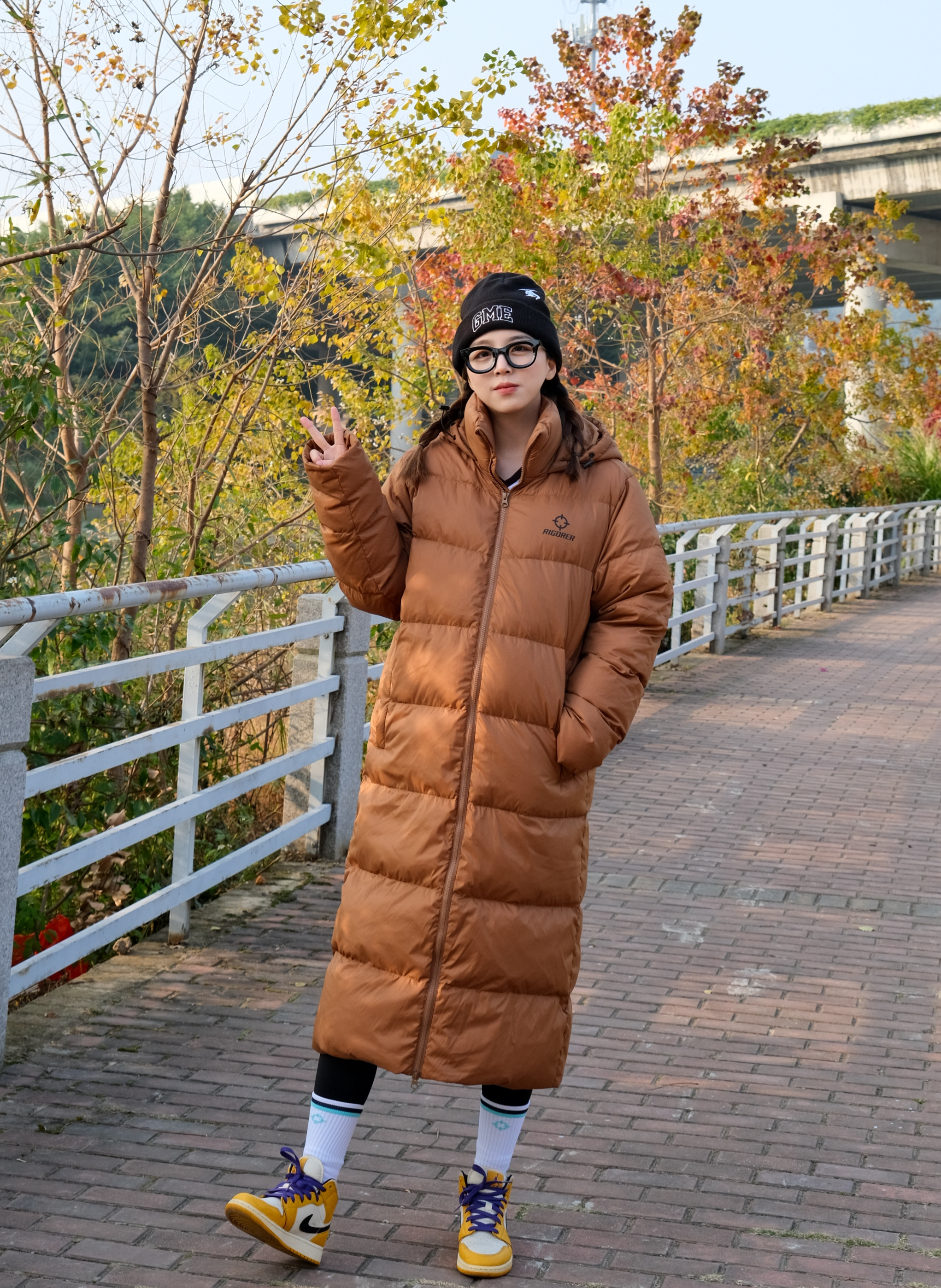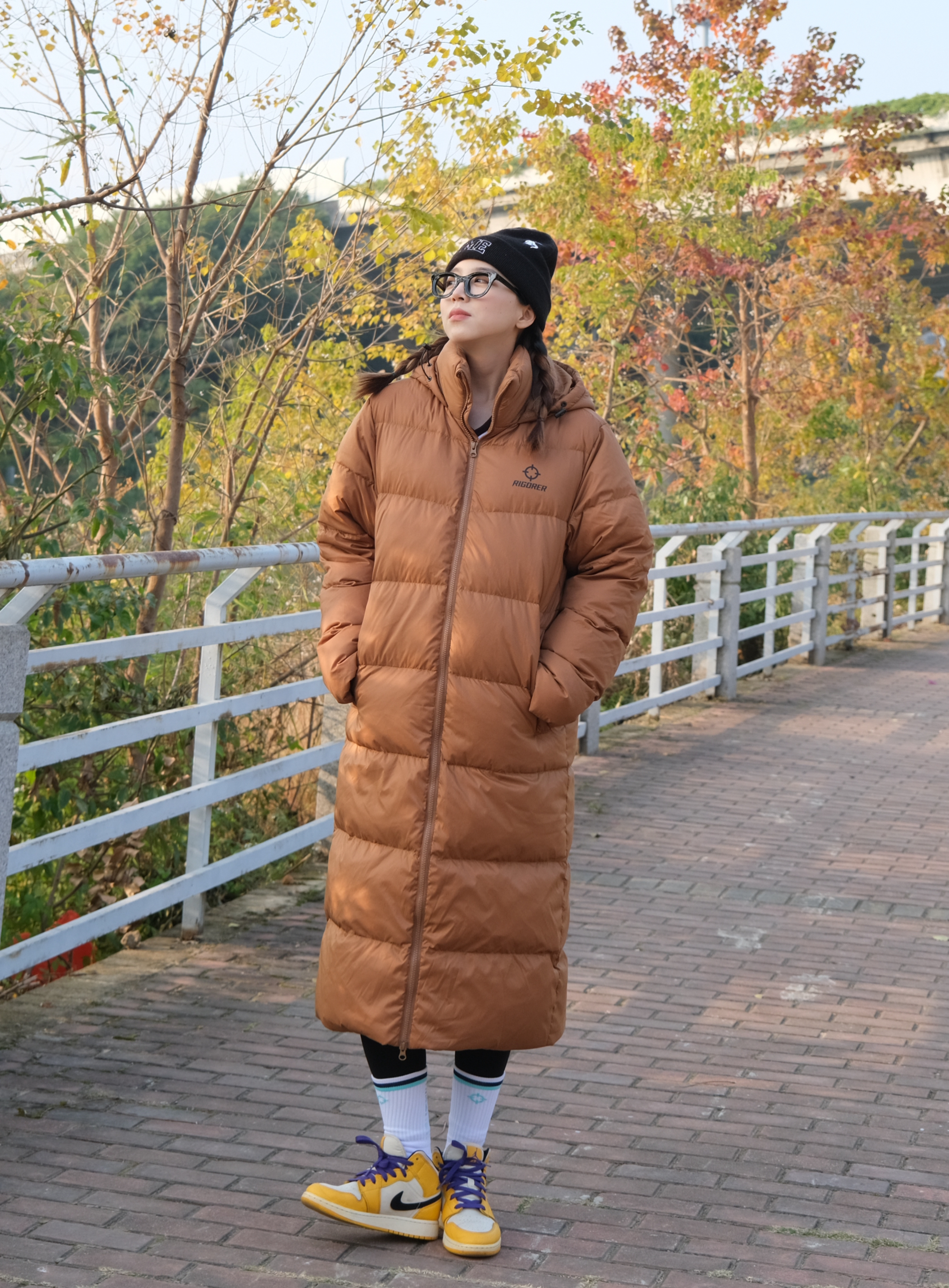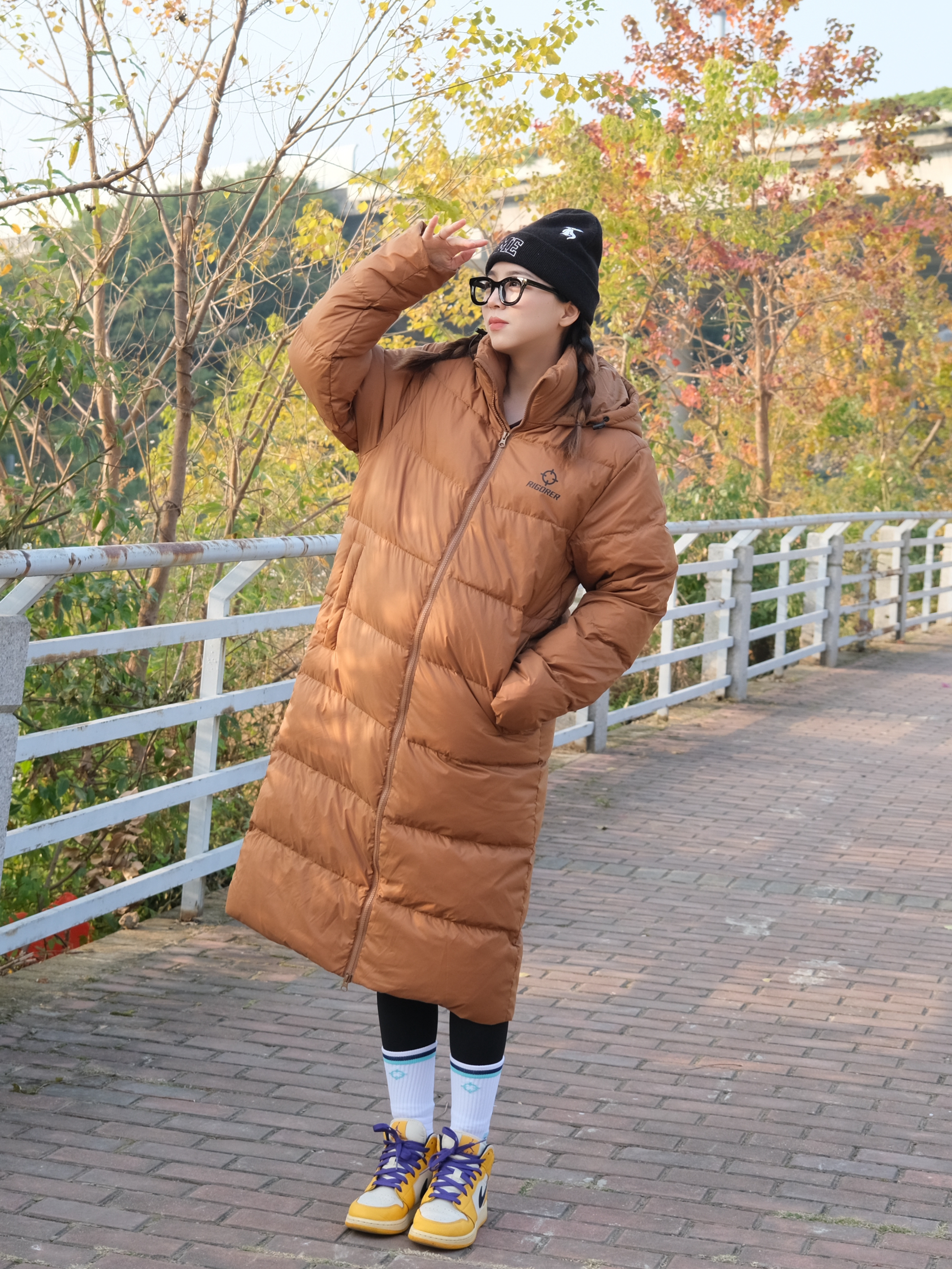 👧:168/48 衣服:L 今日零下穿搭指南: 长款羽绒服+瑜伽裤+aj1 - 咱就是说走南闯北怎么可以少了加厚羽绒服内 咖色的羽绒服深得俺心~像极了南方小土豆 被包裹着的快乐! - 瑜伽裤可以说是搭配长款羽绒服的最佳单品啦 保暖显瘦第一名! - 鞋子搭配了湖人配色的aj1 和这一套好搭耶! 再搭配上黑色冷帽,这一套好爱❤️