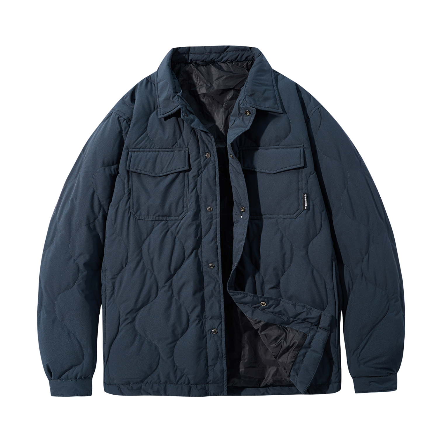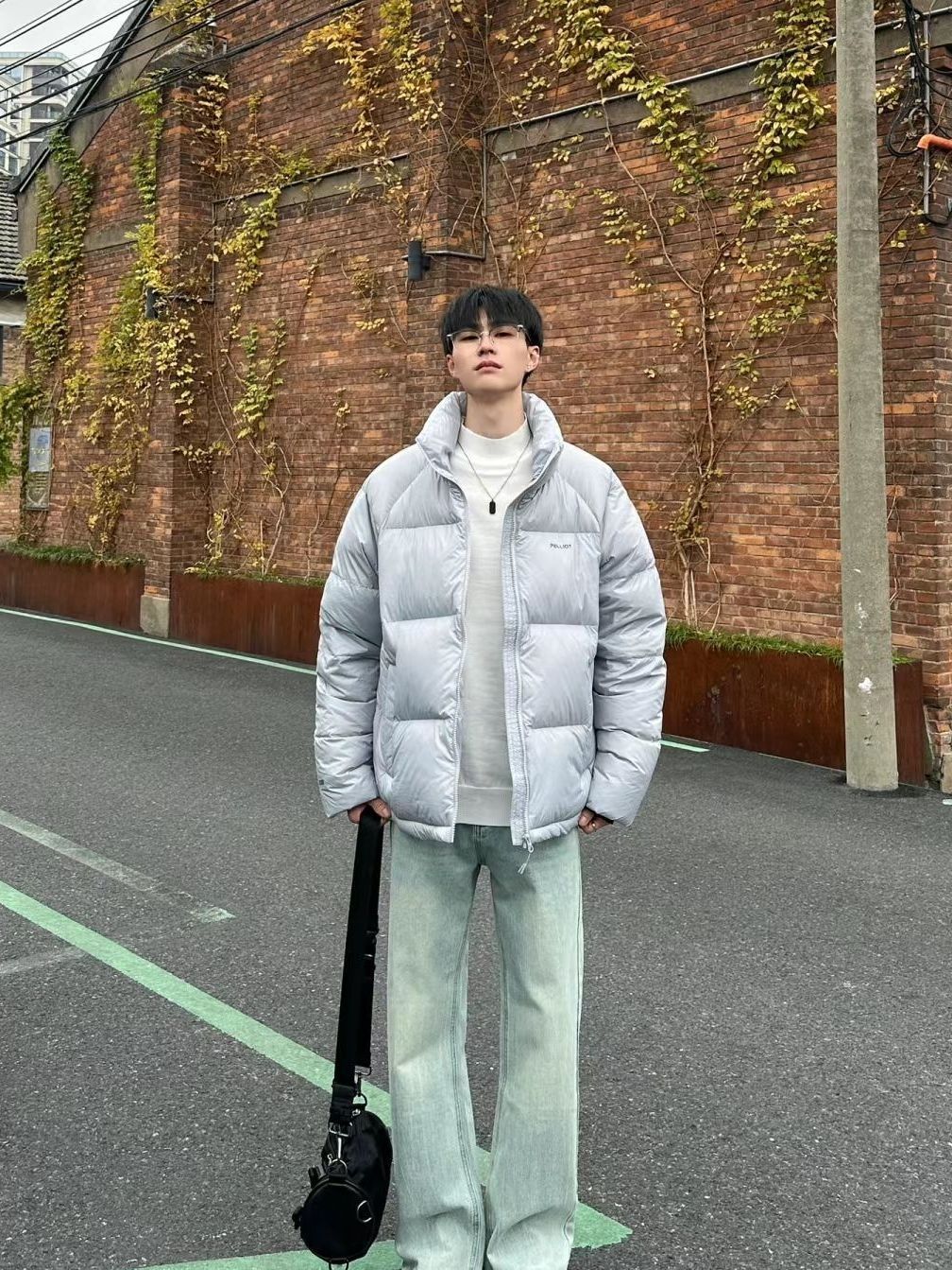 藏青色翻领面包羽绒服+复古蓝牛仔裤 保暖舒适又街头帅气的一套!