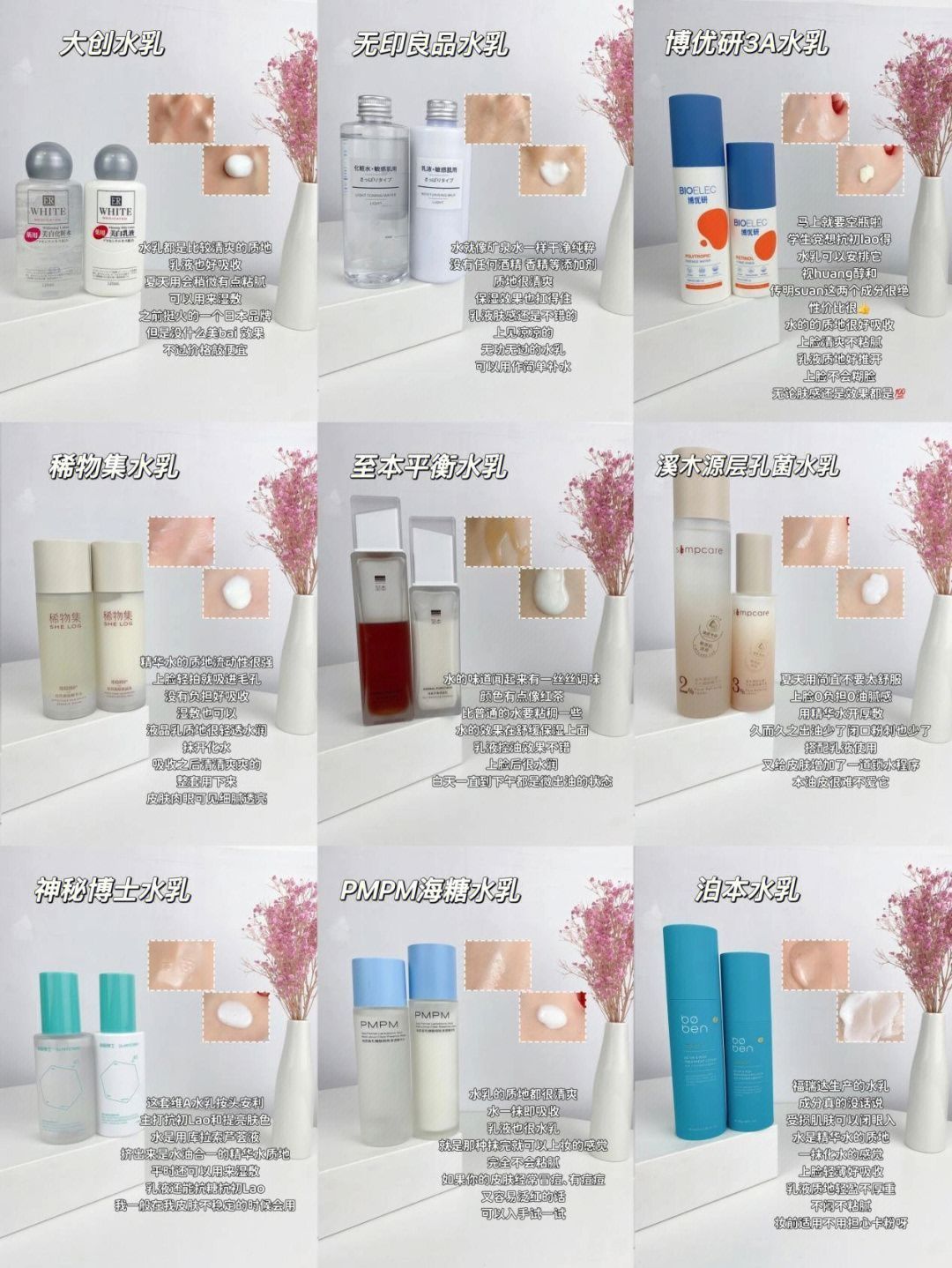 皮肤不好可不能摆烂! 坚持涂水乳真的会让皮肤变得细嫩啊!! 做了很多功课, 终于知道秋冬水乳、去黄水乳、祛痘控油水乳、烟酰胺水乳该怎么选了! 别再搜老爸测评程十安推荐水乳“无限回购水乳、水乳提亮推荐、水乳保湿”了 稀物集水乳 悦木之源菌菇水乳 溪木源山茶花水乳 黛珂紫苏水乳 妮雅丝茉莉花水乳 泊本水乳 HBN水乳 珂润水乳 时间星球控油水乳 Olay水乳 PMPM水乳 谷雨水乳 洋甘菊水乳