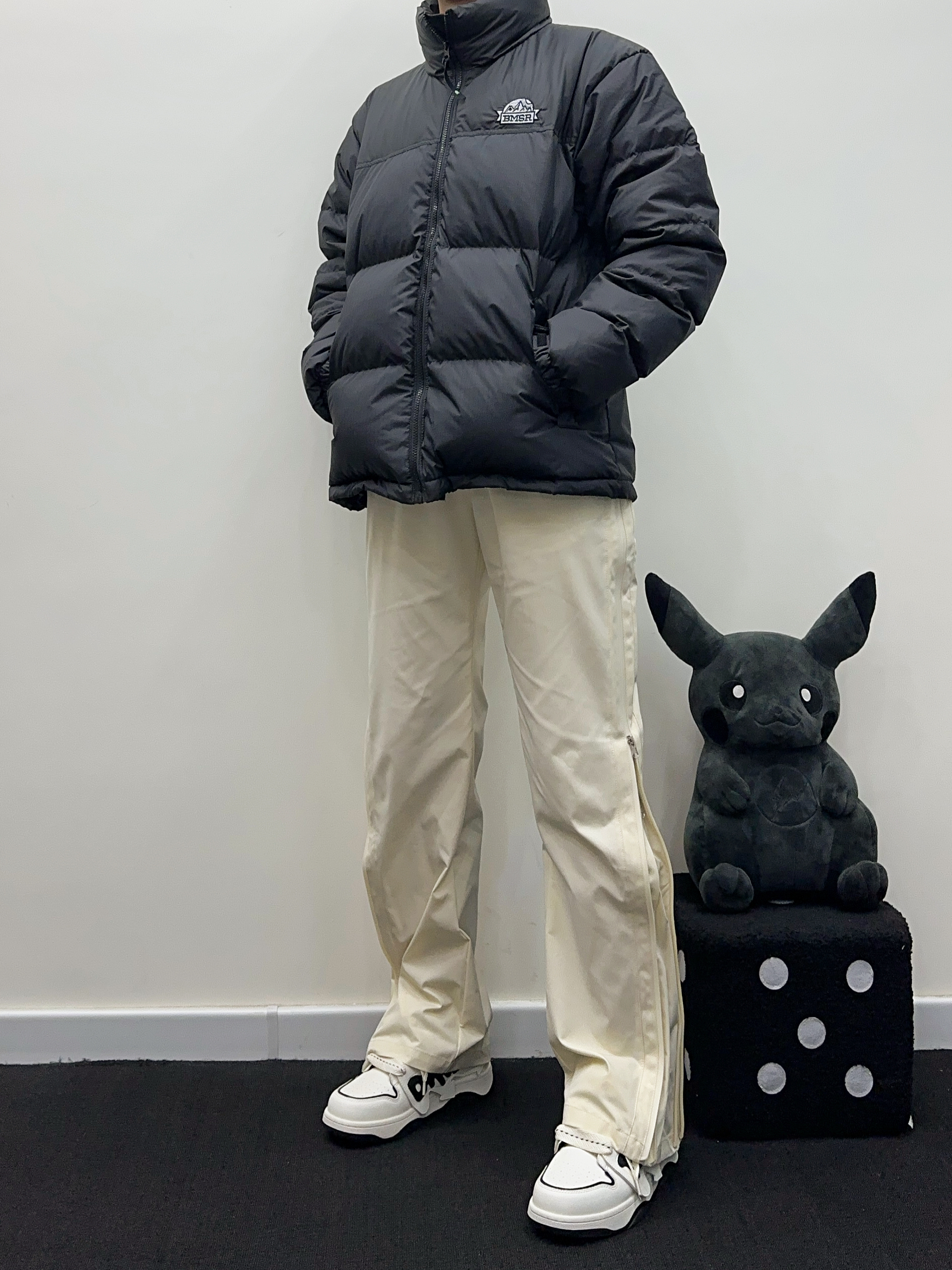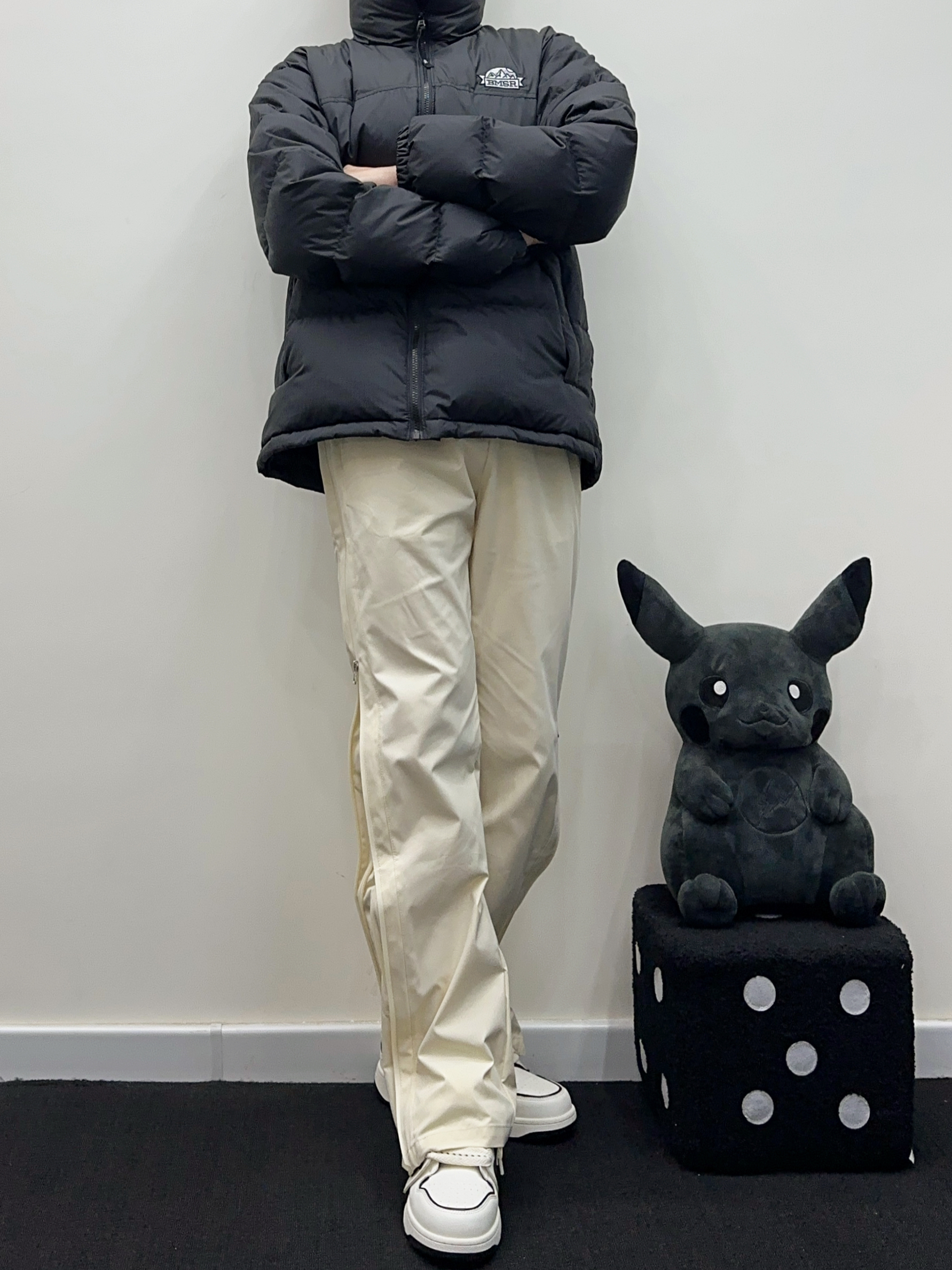 今天上身一件 BENMYSHOWER 黑色羽绒服,立领的版型更加保暖,撞色设计上身减龄好看。 搭配一条白色胶条长裤。 身高175 体重130 👔黑色羽绒服(l码) 👖白色休闲裤(不偏码) 👟白色板鞋(不偏码)