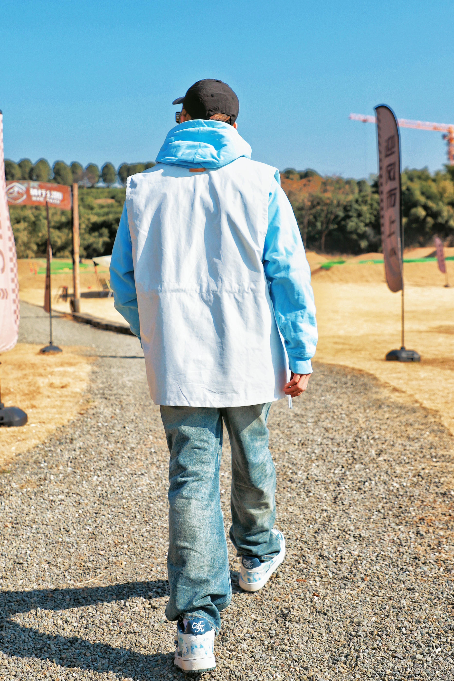 在洒满阳光的冬日怎么穿才能成为全场亮点 快点来看看今天分享的穿搭攻略吧 让你轻松就拍出好看又潮酷的时尚大片 - 天空蓝的连帽套头卫衣,上身尽显休闲 再搭配上白色的马甲外套,保暖又有潮流感 这马甲还是充满设计感,有多个大口袋叠加 - 下半身则可以搭配宽松牛仔裤 既能够修饰腿型,又可以营造整体氛围感 裤子的小巧思就是做了破洞的设计,好酷呀 - 再搭配上蓝白色的板鞋 与整体的穿搭起到一个呼应的作用 五角...
