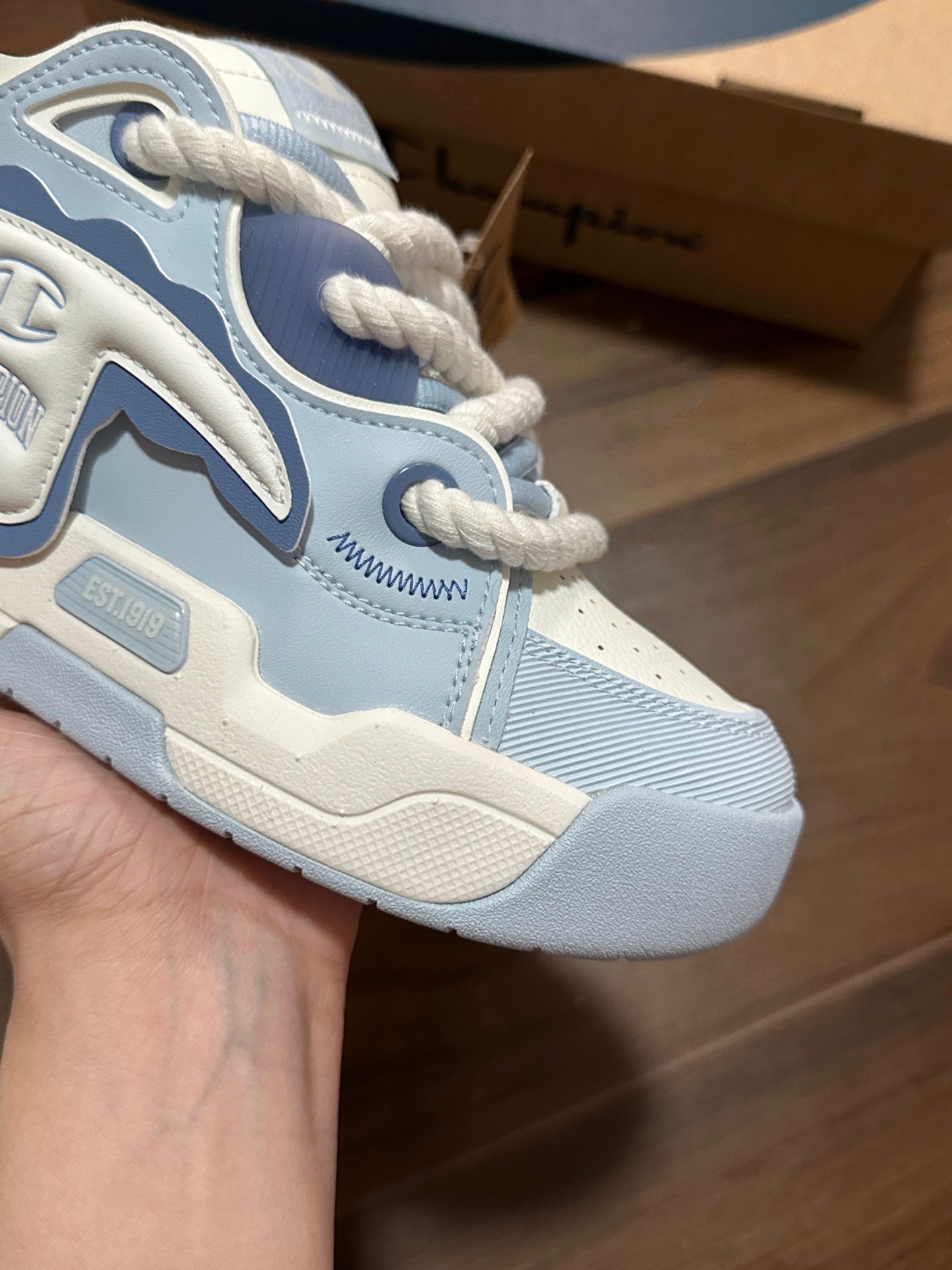 被闺蜜种草了 #Champion 的面包鞋🍞大牌子果然不一样!虽然是厚厚的面包鞋,但是拿在手里很轻😌穿起来也好舒服😌软软弹弹~还能增高呢😆非常适合小个子的姐妹😆🍞🍞 这款有好几个颜色,我自己选的是蓝色,很喜欢这种看起来舒服又清爽的蓝色☺️这双鞋最好玩的地方是侧面的魔术贴,可以撕下来贴一些别的东西,可以自己DIY哈~个人觉得码子还挺正的,平时我穿37的这双穿37码刚好☺️☺️☺️ #...