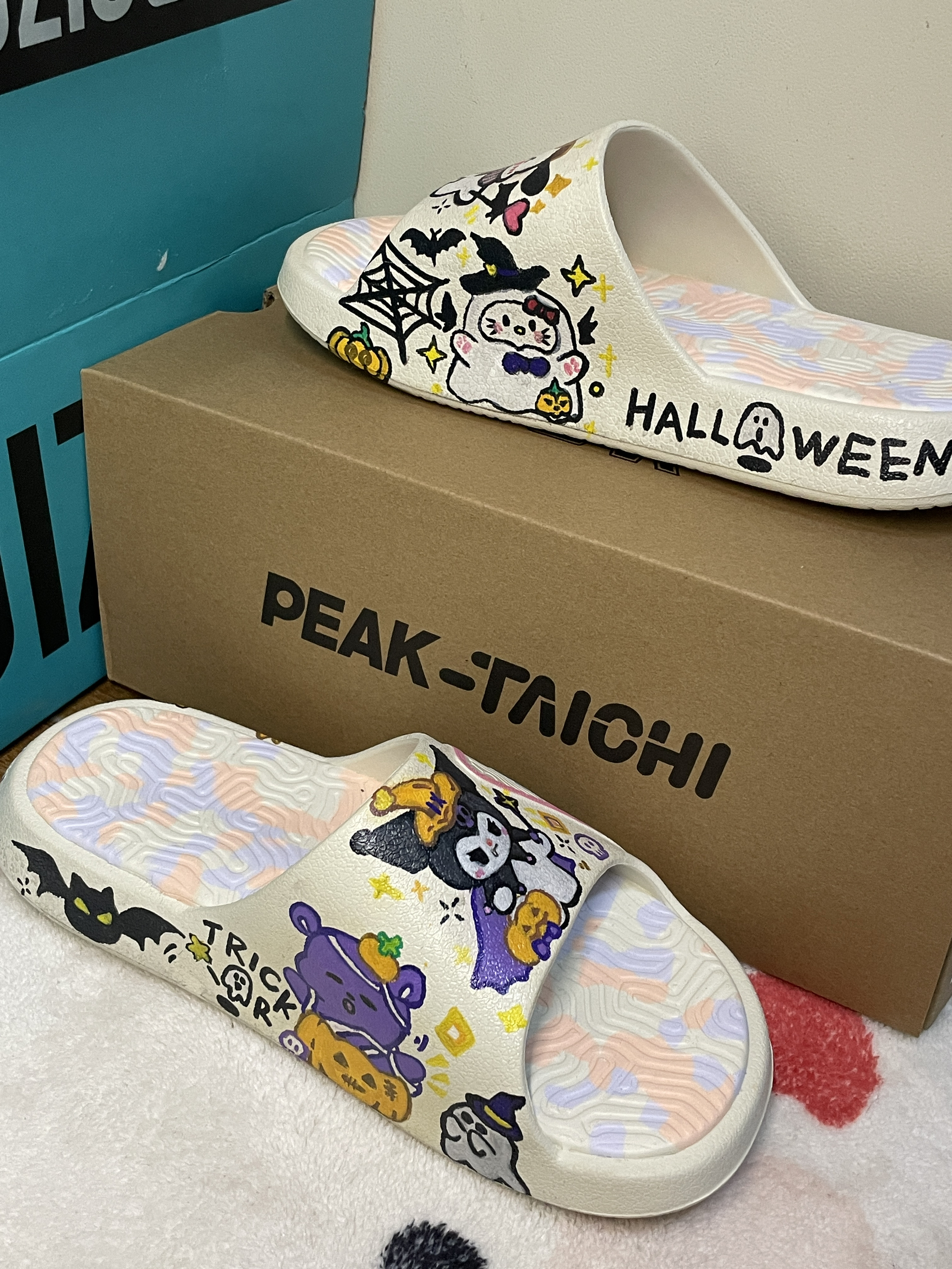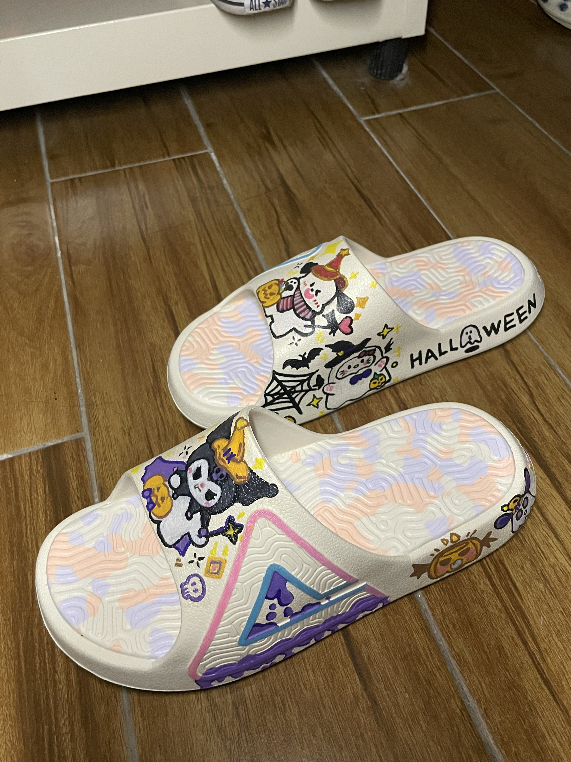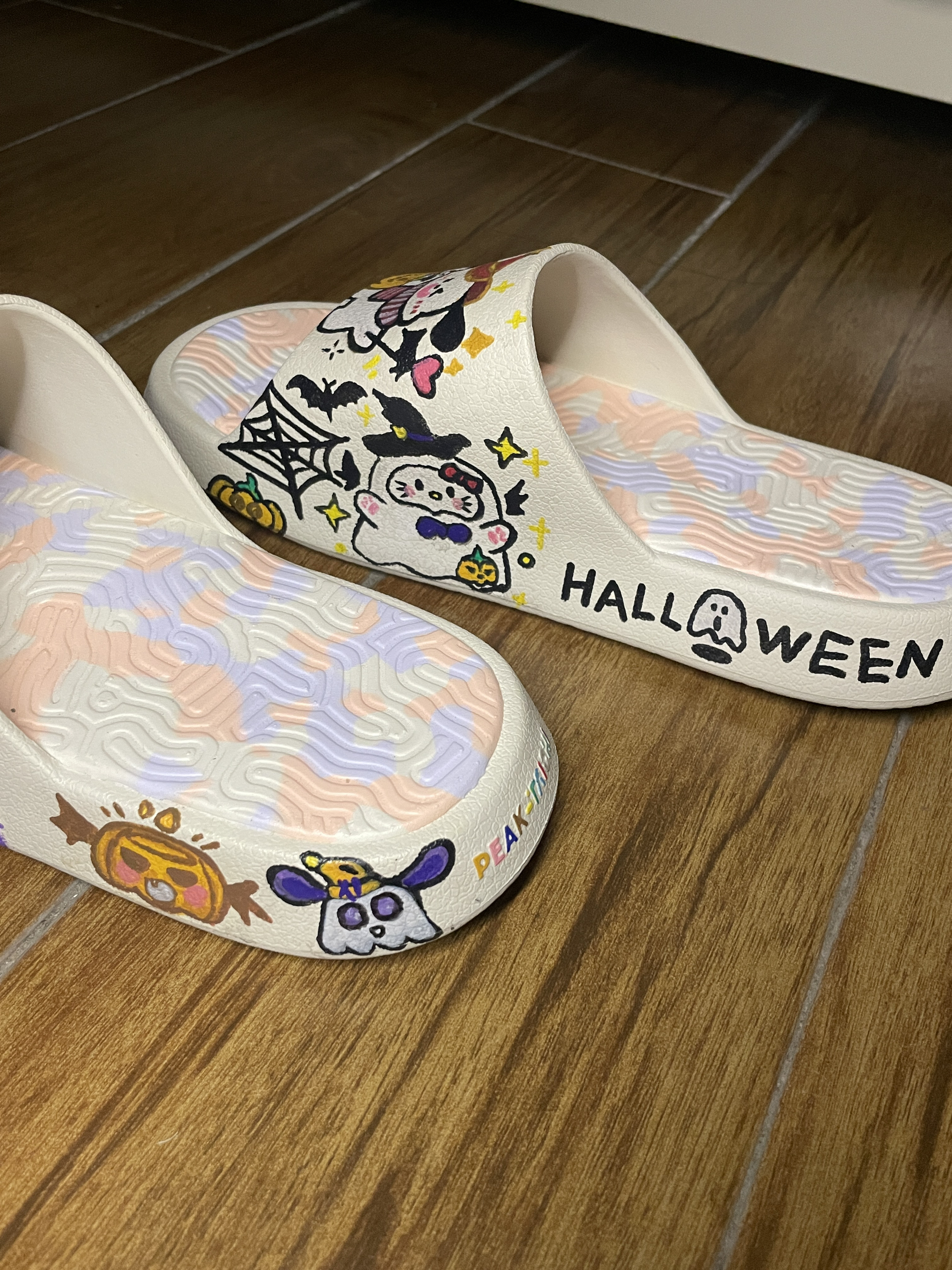 呆猪哼哼联名款万圣节🎃帕恰狗🔗库洛米 我的奇趣涂鸦哦👻 自己DIY手绘滴~ 鞋子:PEAK匹克拖鞋 鞋子颜色:帆布白 尺码选择:正常可以选偏大一码 家人们觉得这双鞋子画得好看吗? 好看就和呆猪是好朋友哦🧑🤝🧑