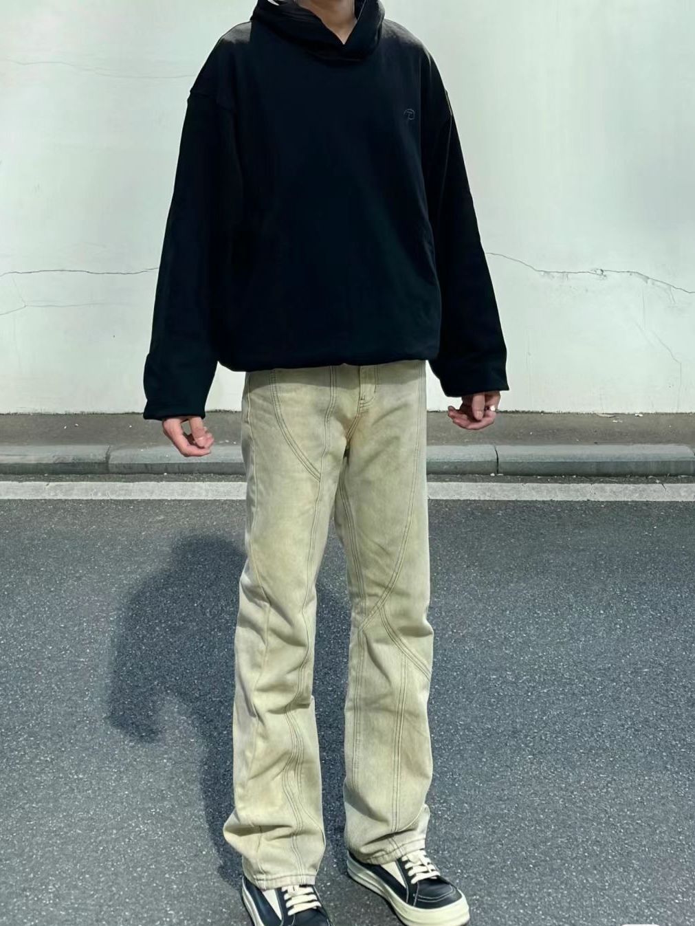 上身一条版型绝绝子的黄泥牛仔裤 好看又平价!!区别黑牛蓝牛 做旧颜色更特别 剪裁细节的加持让我忘不了多看两眼 搭配黑色基础简约的短款连帽卫衣 干净显比例秋冬通勤出门这么穿对了