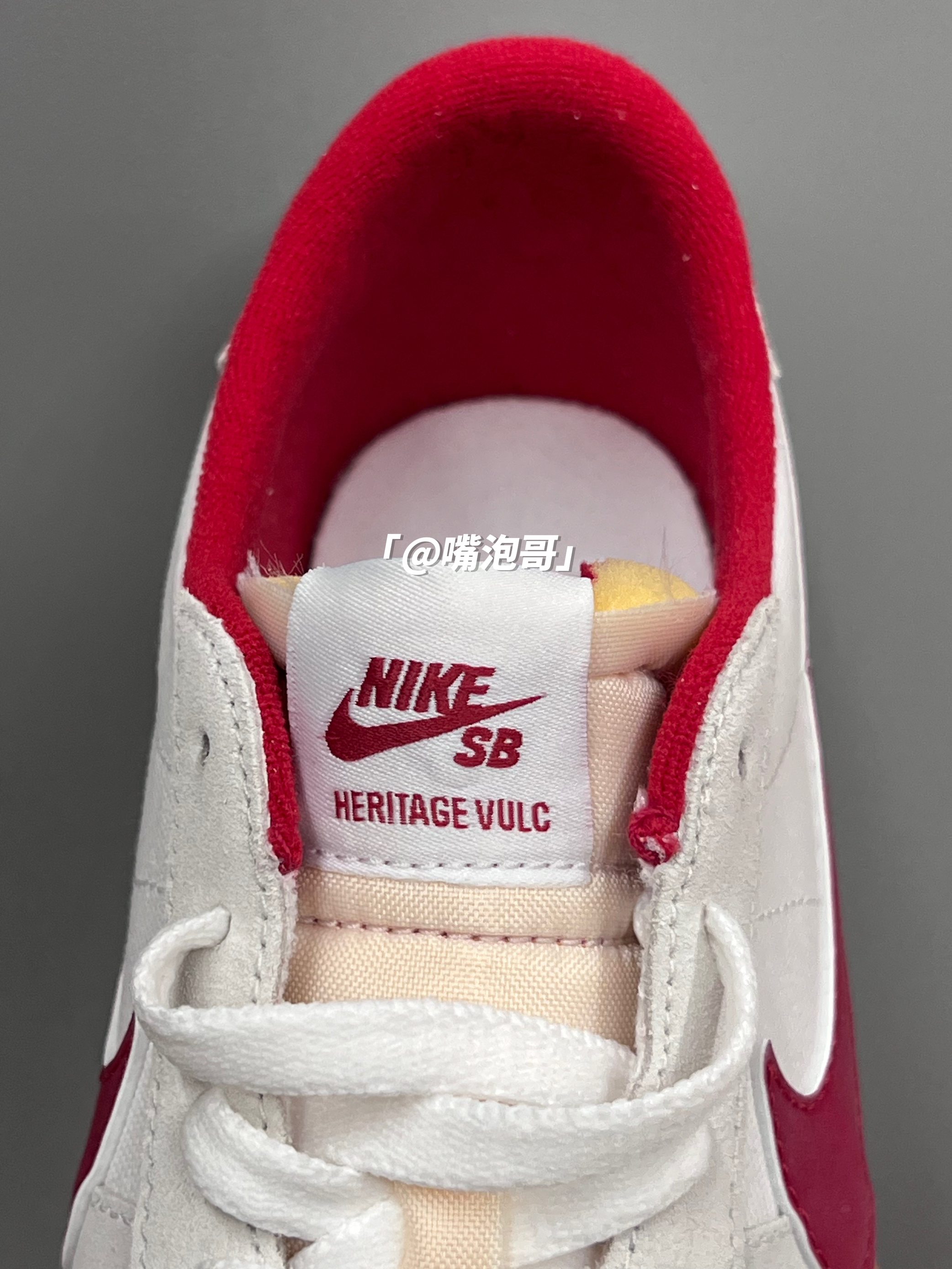 👟:SB Heritage Vulc 白红色 简介: 鞋款是一双SB 系列的板鞋,整双鞋子的外观设计比较简约,选用了白色与红色组合搭配,同时又加入了生胶色,使鞋子整体的更有复古感。 细节: 鞋面采用了采用了麂皮与复合帆布的组合,使鞋面不仅耐磨同时又很有质感,鞋身两侧的swoosh选用了红色皮革制成,提升了辨识度,鞋舌为解构设计,增添了街头时尚感,中底与大底是一体式设计,采用了生胶材料制...