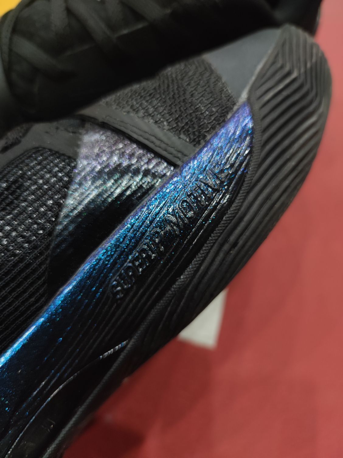 态极大三角3 星辰配色整体黑色带有浩瀚宇宙的星际感,还不错,实战和出街皆可选择~ 整体上脚感受,软弹适中,这次整体宽度相对于12代更加友好! 低帮造型,释放脚踝空间,更加舒适,后跟TPU环抱,支撑稳定。 鞋底抓地贼稳,室内木地板也没有打滑现象! 整体几场实战下来,强度适合中等强度及以下,打法风格更像射手,偏稳健型打法,靠节奏,投篮基本功类型。 #新年买新鞋 #匹克态极大三角3代 #这双实战鞋又帅...