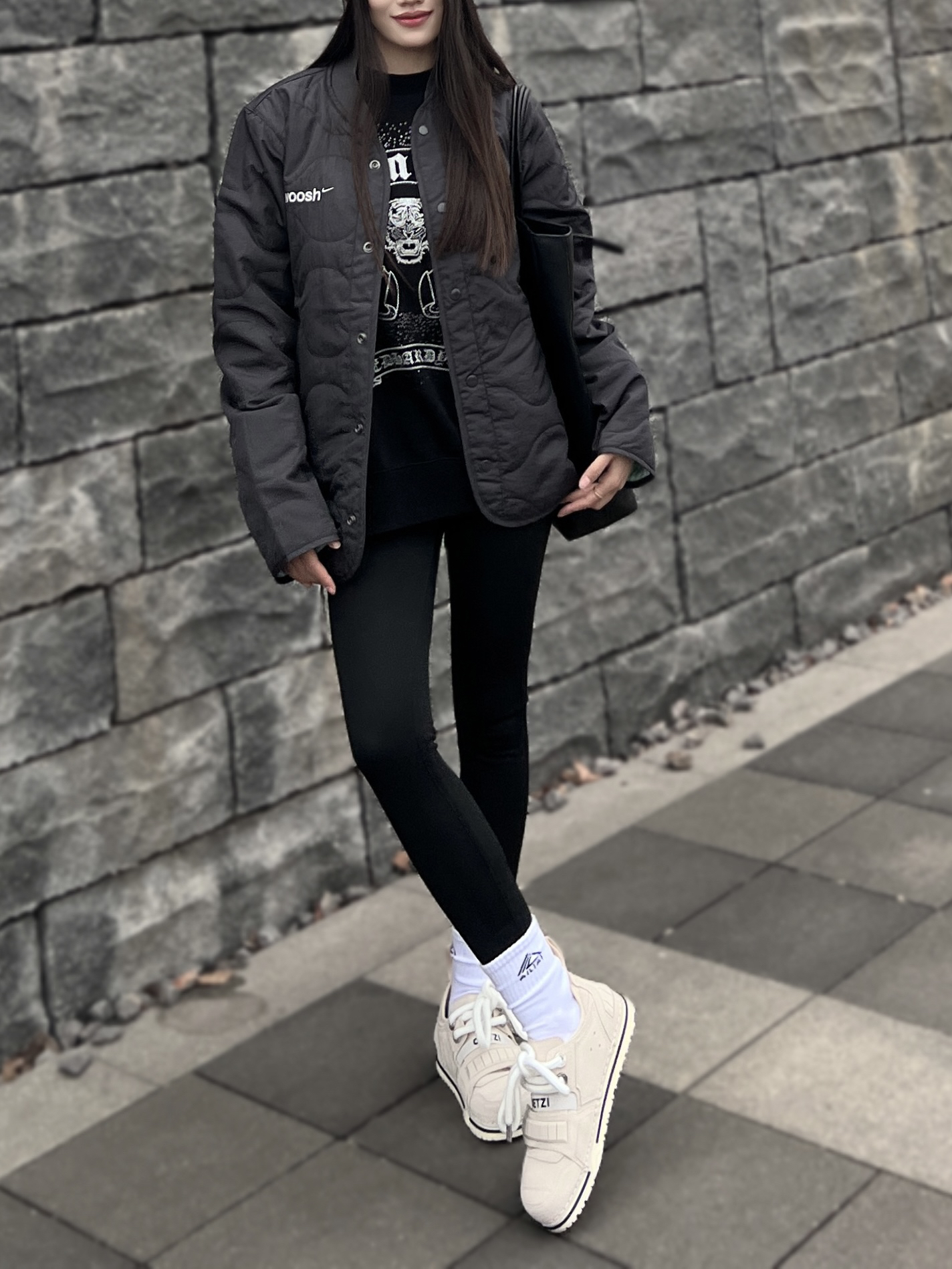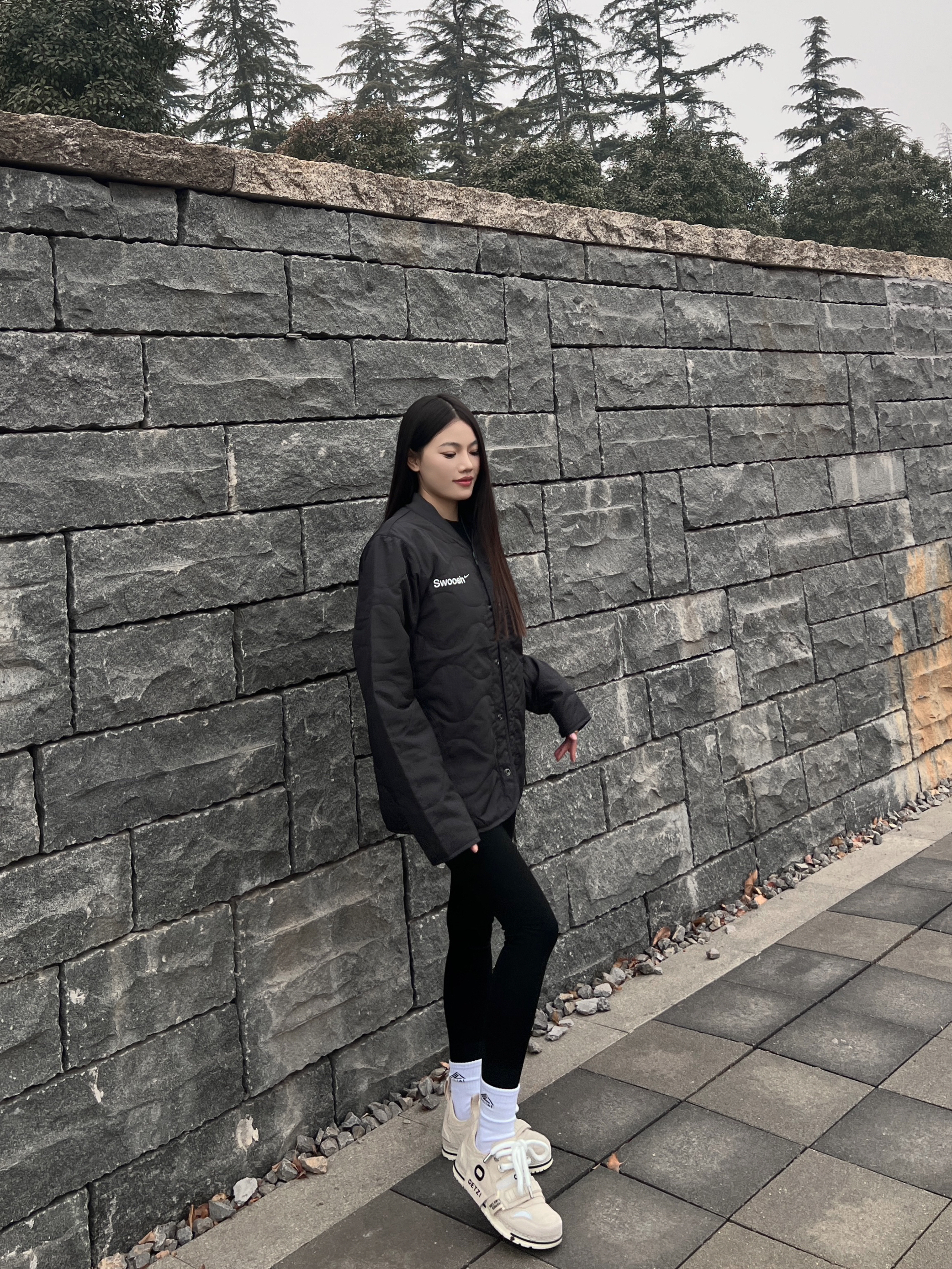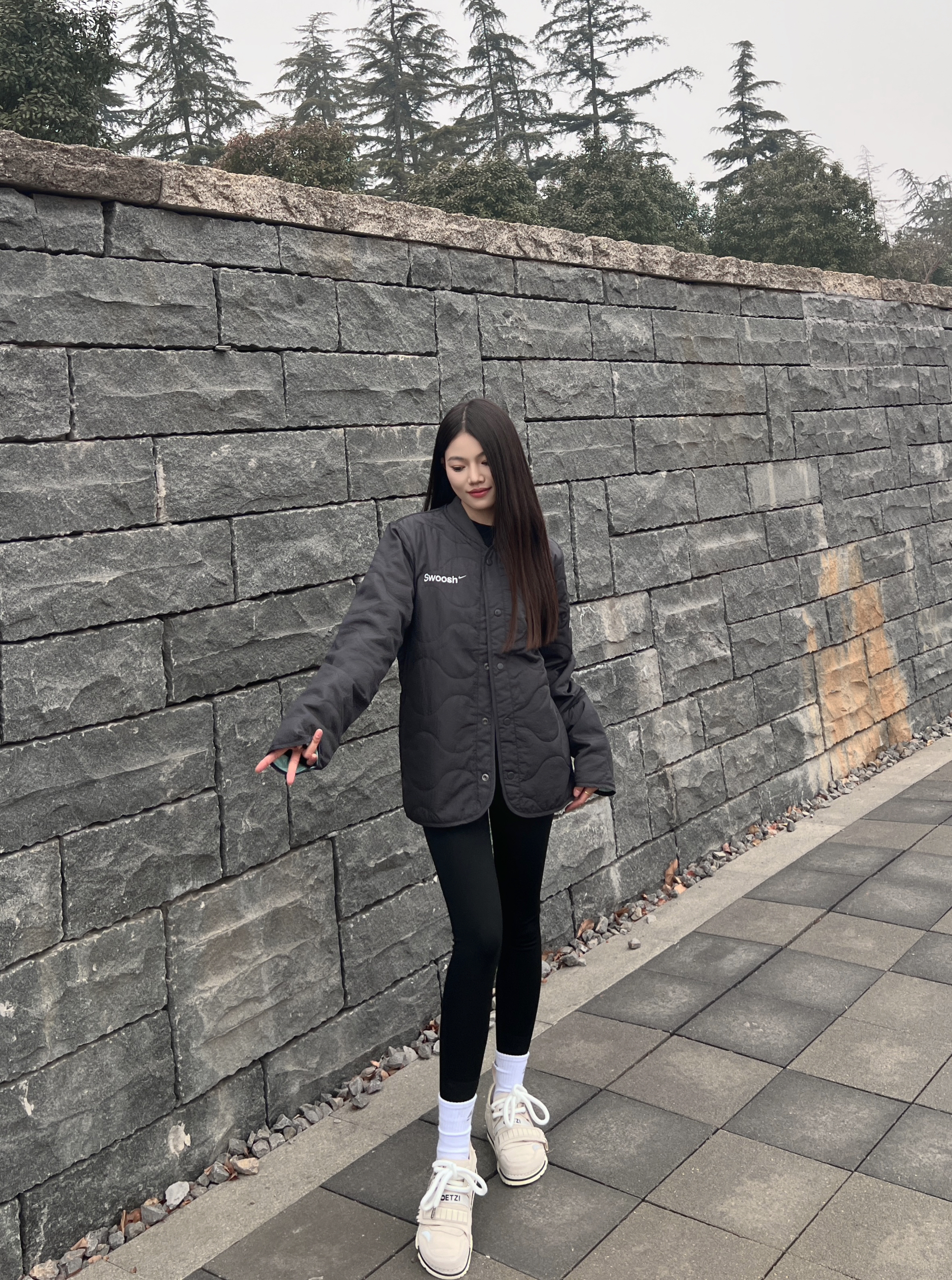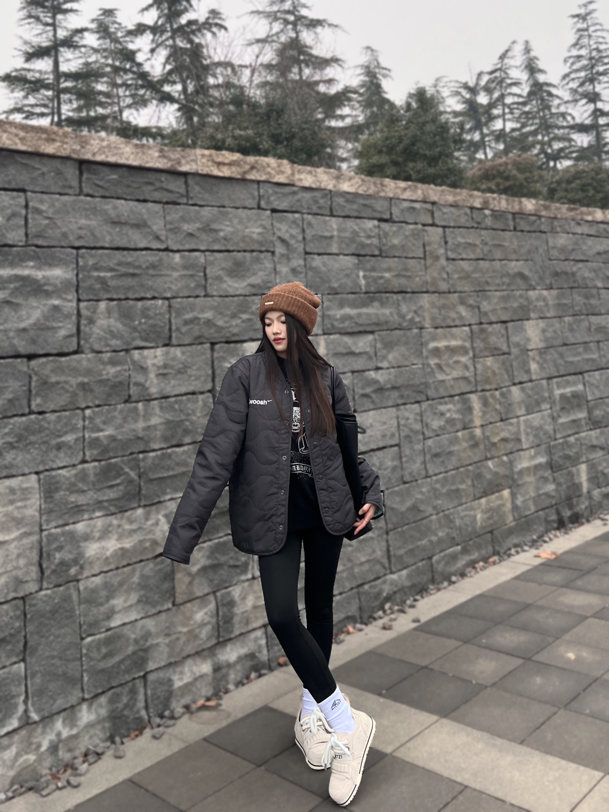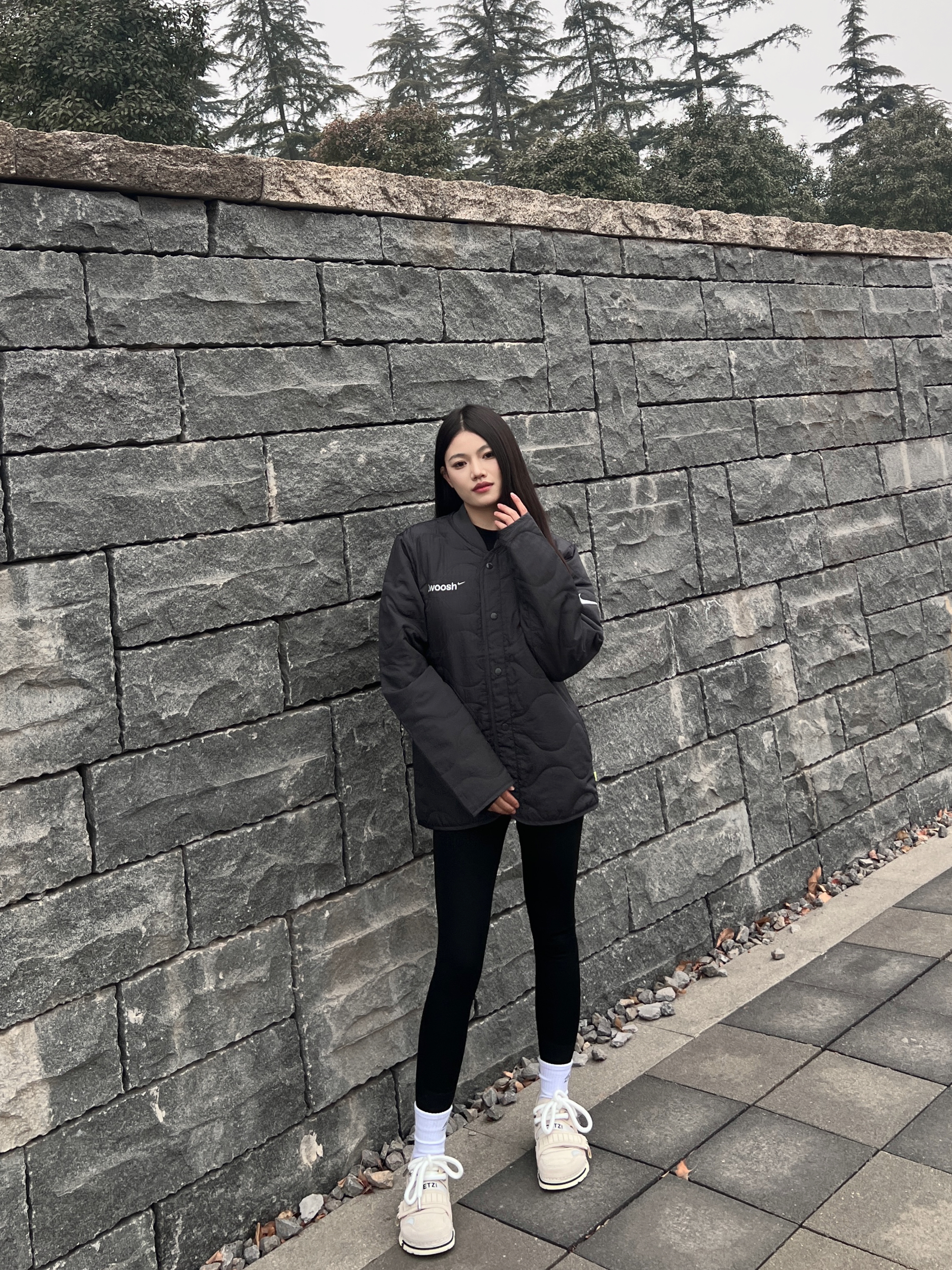 想要在秋冬季节穿出潮酷感 那一定少不了一双设计感十足的鞋❗️ 💁🏻♀️:165/45 👟:37 - 以今天的穿搭为例 外套我选择的是黑色nike棉服外套 精致刺绣🪡英文字母 整件外套简约时尚又有精致感❗️ - 下身搭配同色系瑜伽裤 保暖修身又显瘦~ 黑色系穿搭 视觉上有些单调 这时候就需要选择一双吸睛的鞋子 - 我选择的是杏色的 OETZI 丑萌鞋 鞋面由牛皮革拼接而成 手感摸起来潮有...