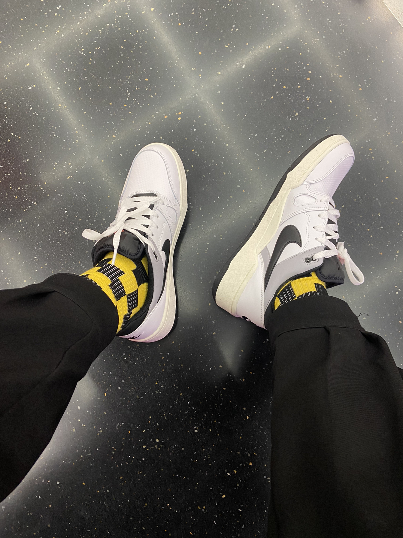 这款full force板鞋,今年突然几天火了🔥,款式确实有点意思,空军一号和dunk的结合体,鞋底没有气垫,但是鞋垫类似react那种软软的,所以脚感还是很不错,没有板硬感,尺码标准,不用买大,鞋面皮有点硬,和空觉差不多,整个鞋子很搭衣服,很帅气!