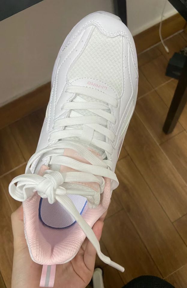👟球鞋名称:李宁减震耐磨跑鞋 ARHP113标准白/弱粉红 📌是否偏码【偏大/不偏码/偏小】:不偏码 码数标准 春夏必备运动小白鞋!!已经买了穿了好几次了 体育课穿来跑步非常的舒服透气