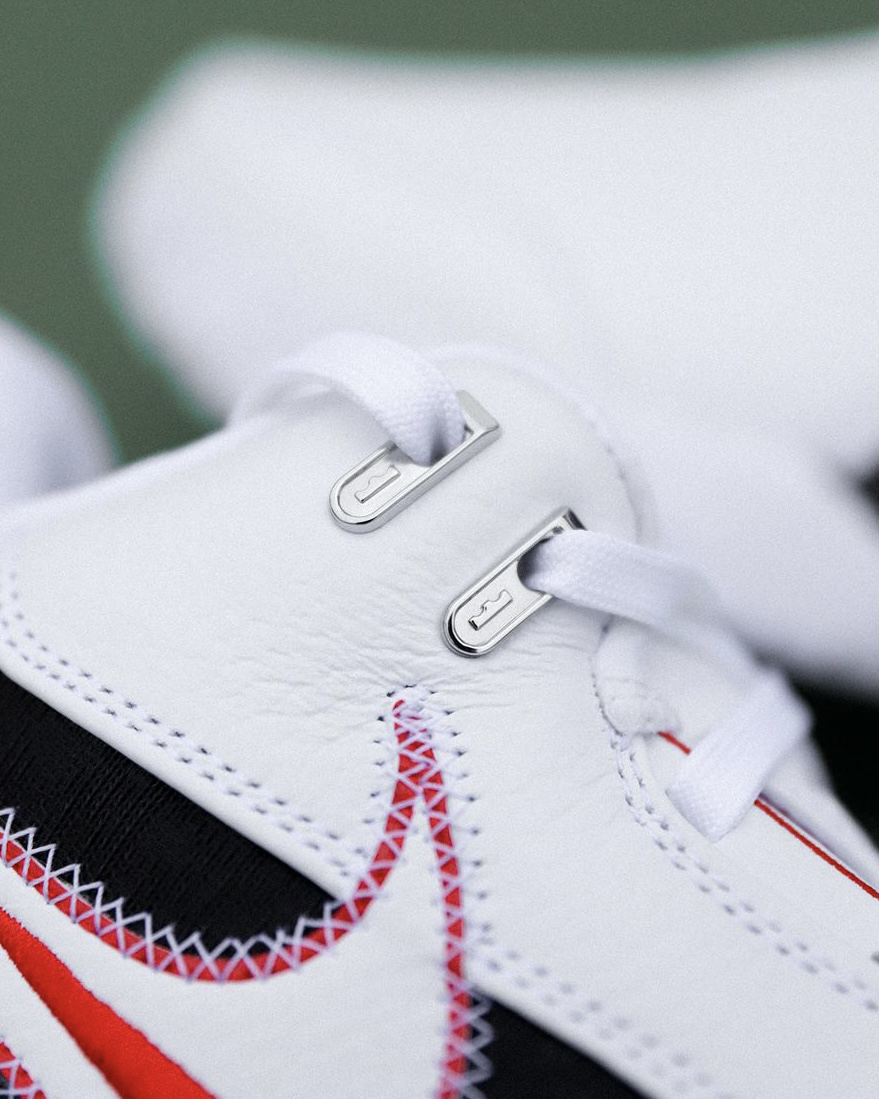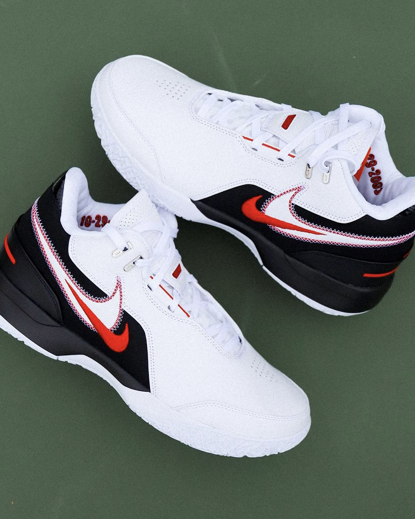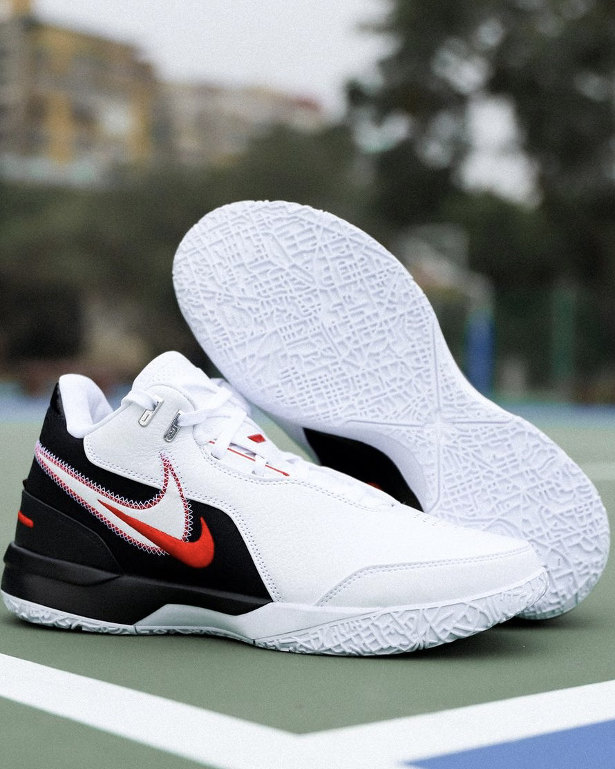 鞋名: LeBron NXXT GEN 白色 外观及细节: 这双是勒布朗系列的实战球鞋,鞋子外观配色以黑白色为主,加入了红色装饰,整体还算是简洁,皮革与织物组合的鞋面很有质感,加厚填充的后跟内里搭配织物鞋舌,有鞋不错的舒适性,同时中底泡棉与气垫,又带来了不错的脚感,上脚打球还是很舒服的。