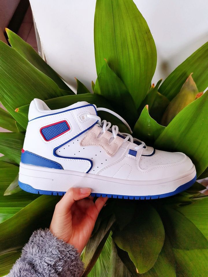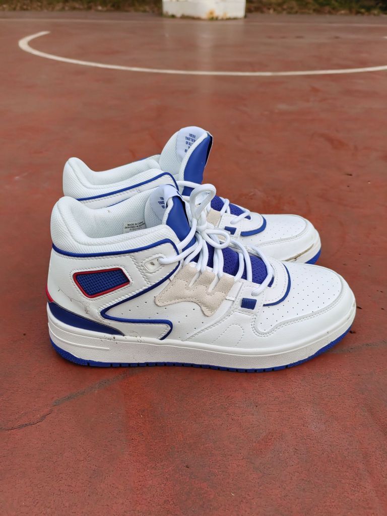 白蓝的配色简单非常好看,脚感的也是不错,虽然没有搭载气垫,但它的减震科技,还是能感觉有点软软的,下面给大家分享我的感受,还有实战测评。 配置方面:鞋面主要采用了皮革材质,加上了一点绒面皮革做点缀,鞋子大底采用的是橡胶大底,这双鞋的全掌中底都搭载了李宇云的鞋底减震科技。 我的鞋码是43码,穿43码的感觉合适不顶脚也不挤脚,两边略微有点宽松,应该是方便穿训练袜,穿进去脚感感觉比较舒服,走起路来有点...