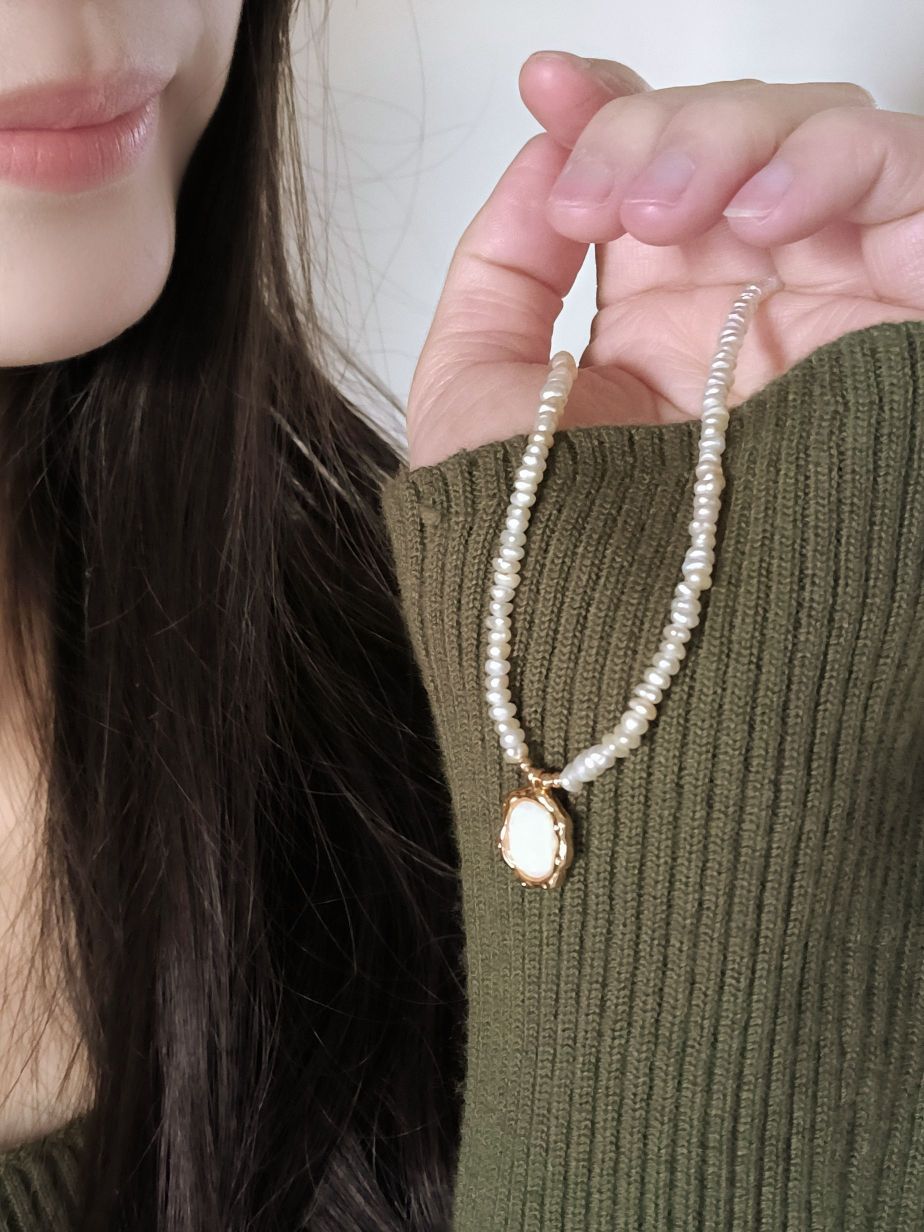 :安铂洛利 欧泊珍珠 优雅不仅可以来自自身的魅力 也可以来源于配饰的点缀 吊坠是调色盘的设计,独特又贵气 不规则的珍珠在阳光下很灵动✨ 这款珍珠项链日常搭配也不会显突兀 因为珍珠的大小在3-3.5mm左右 可以搭配大衣或者针织上衣 温柔优雅的气质提升了许多~ 项链是可以自由调节的长度 礼盒包装也超有仪式感呢💝