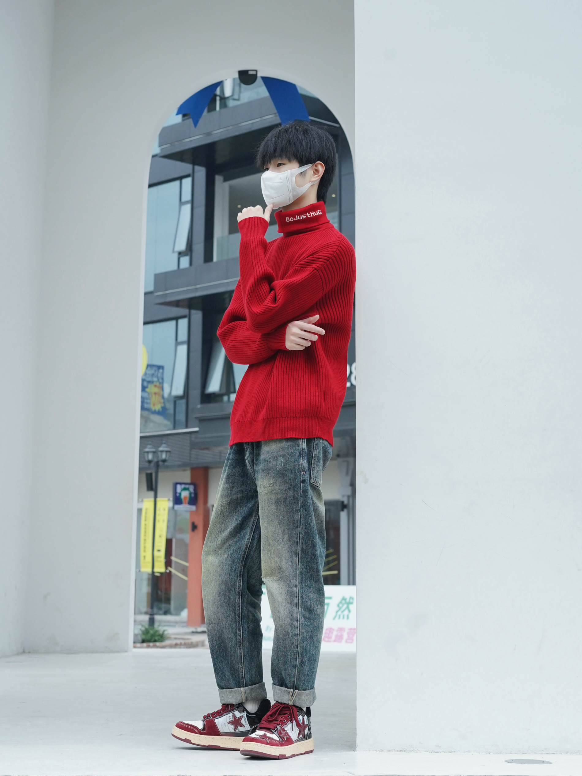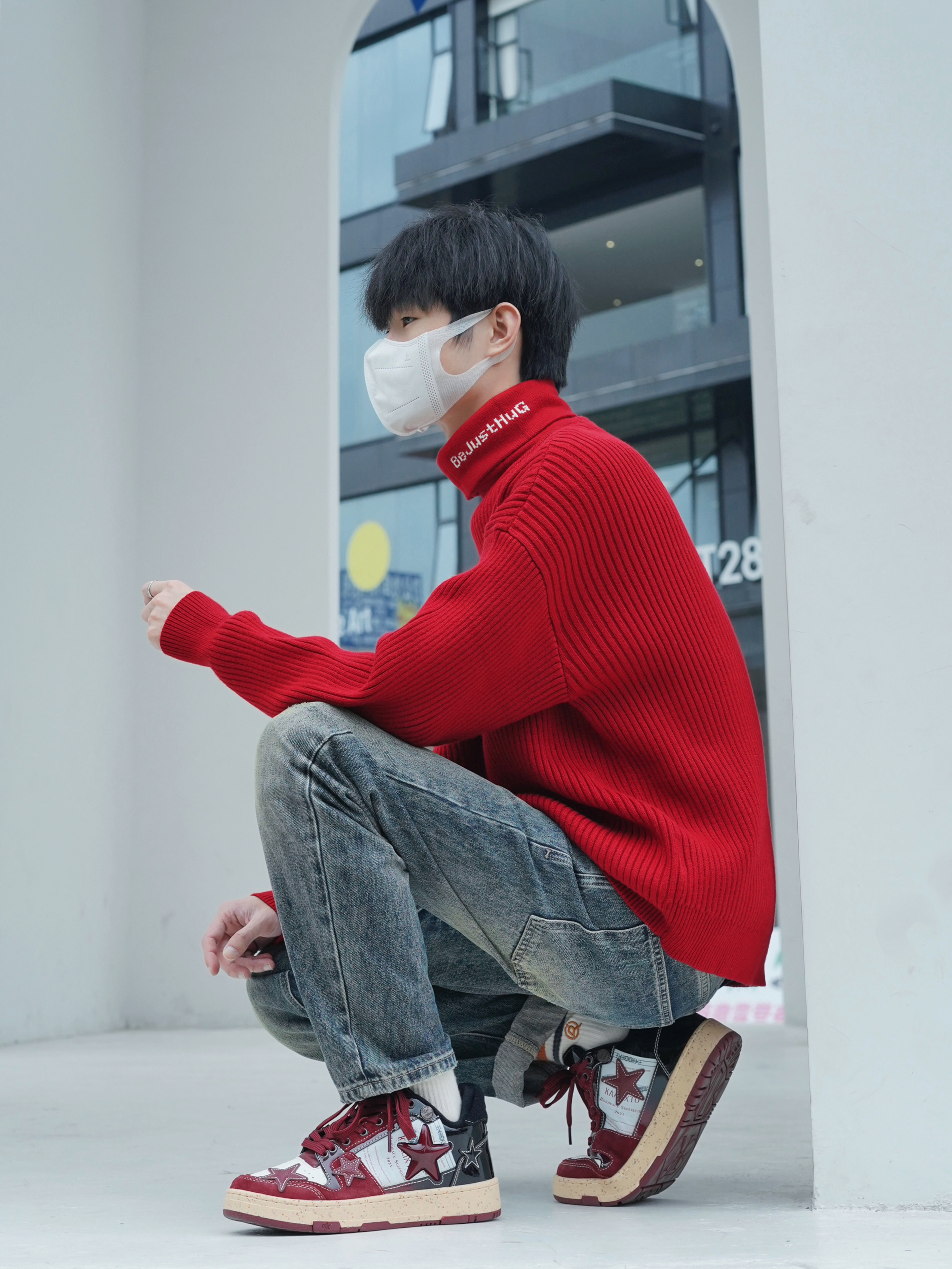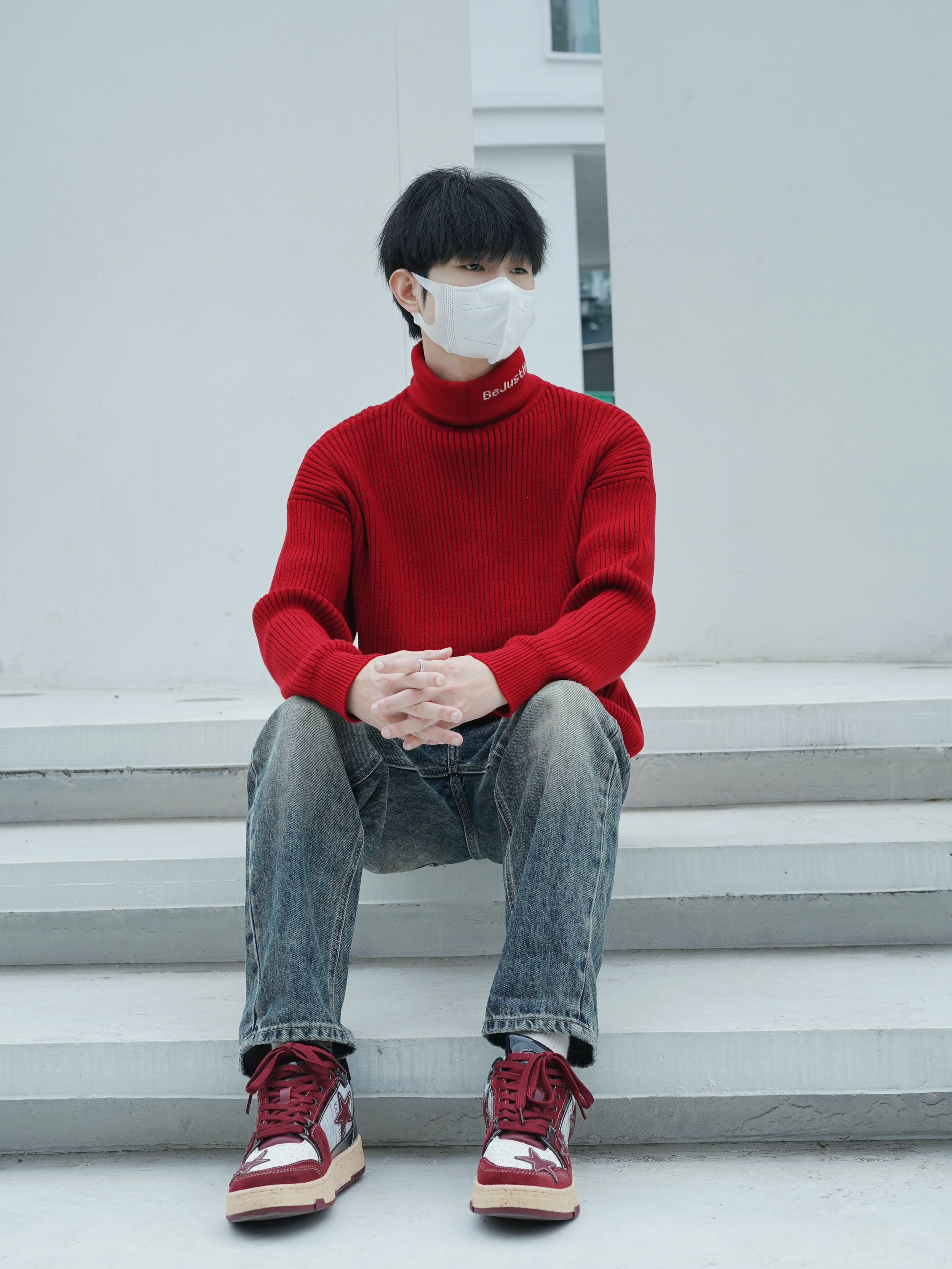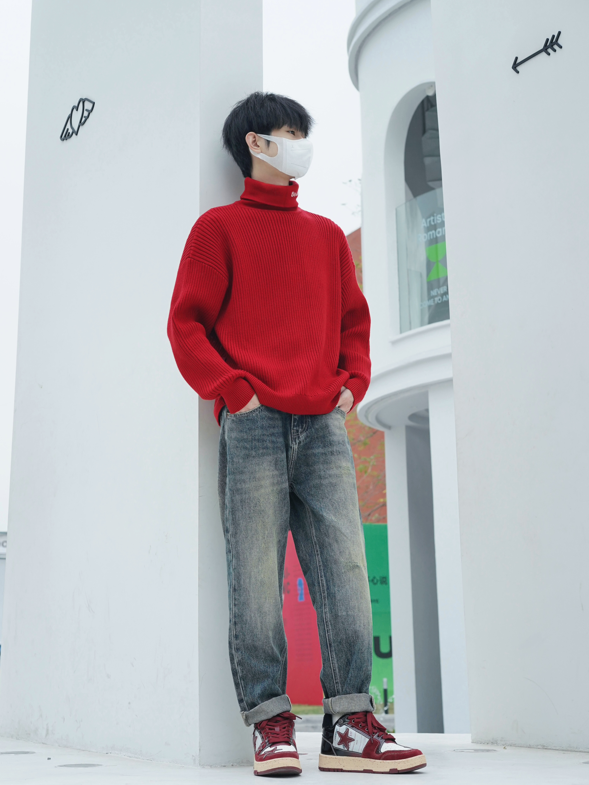 除夕 本命年战袍准备好了吗 红色毛衣也太显白了 毛衣的面料细腻柔软 触感非常舒适 款式简约大方 无论是单穿还是搭配外套都能轻松驾驭 下半身搭配做旧牛仔裤和板鞋 干净 阳光 运动 过年感就出来了 -