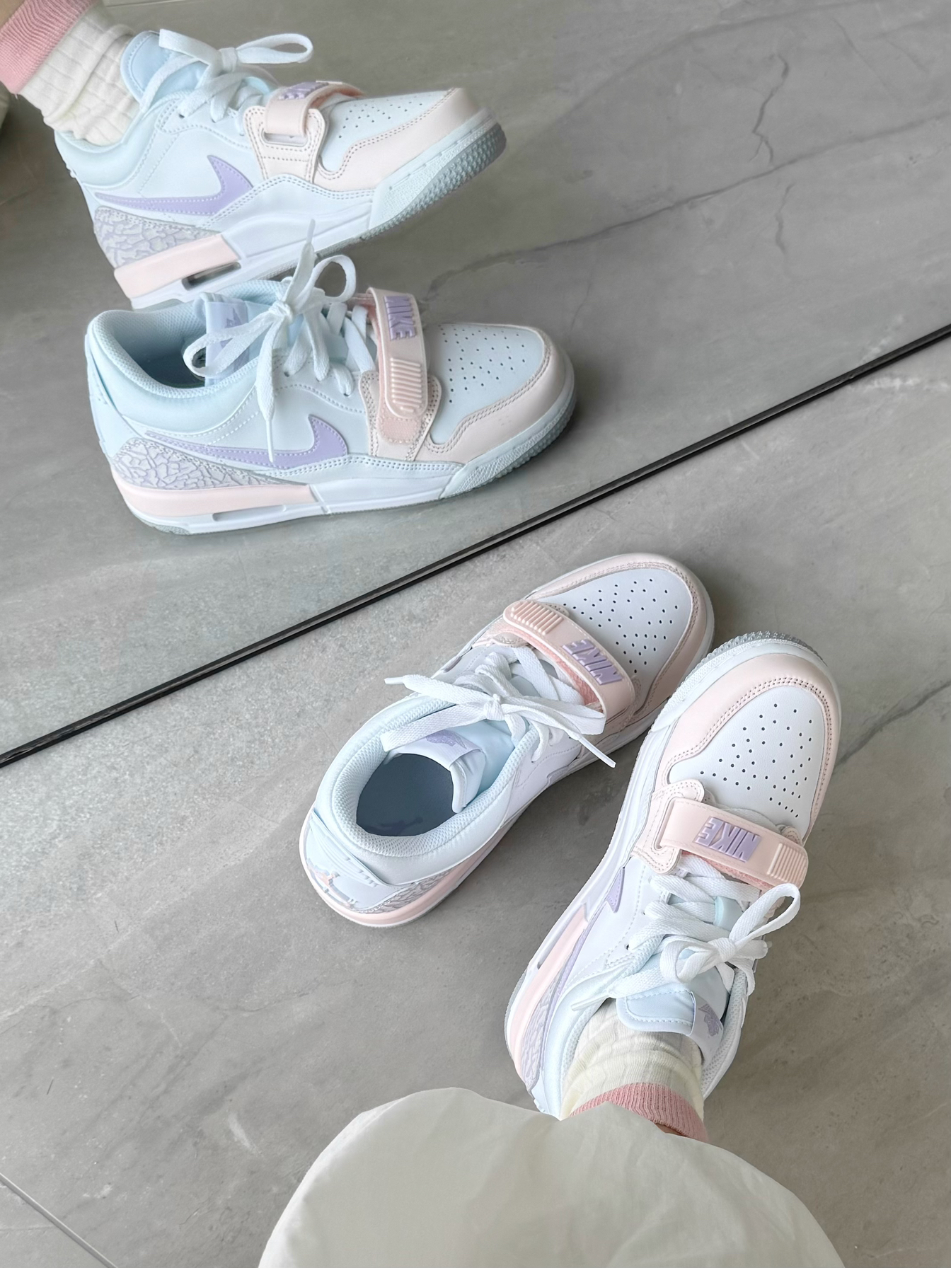 本篇笔记关联了Air Jordan Legacy 312 板鞋 运动休闲鞋 三合一魔术贴缓震复古回弹合成革 玲娜贝儿/GS/粉色/薄雾紫等商品,为用户提供真实的使用体验和购买参考。